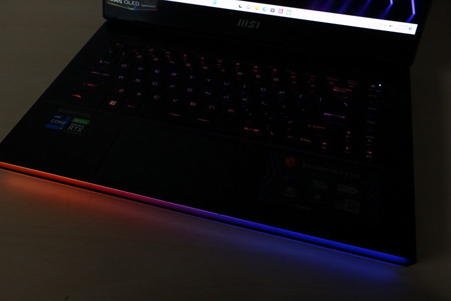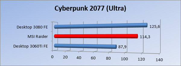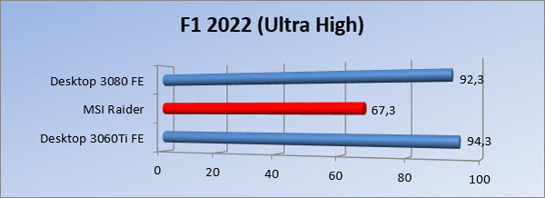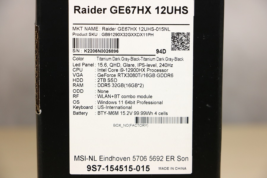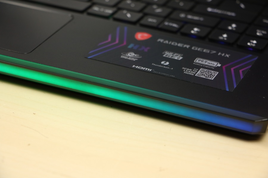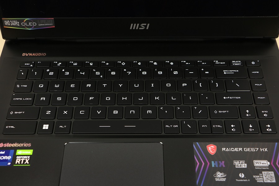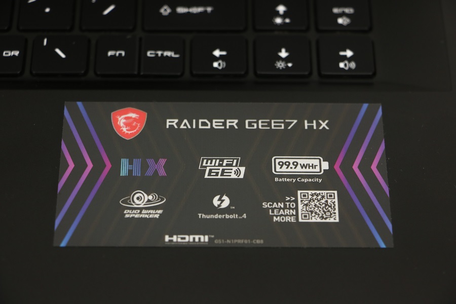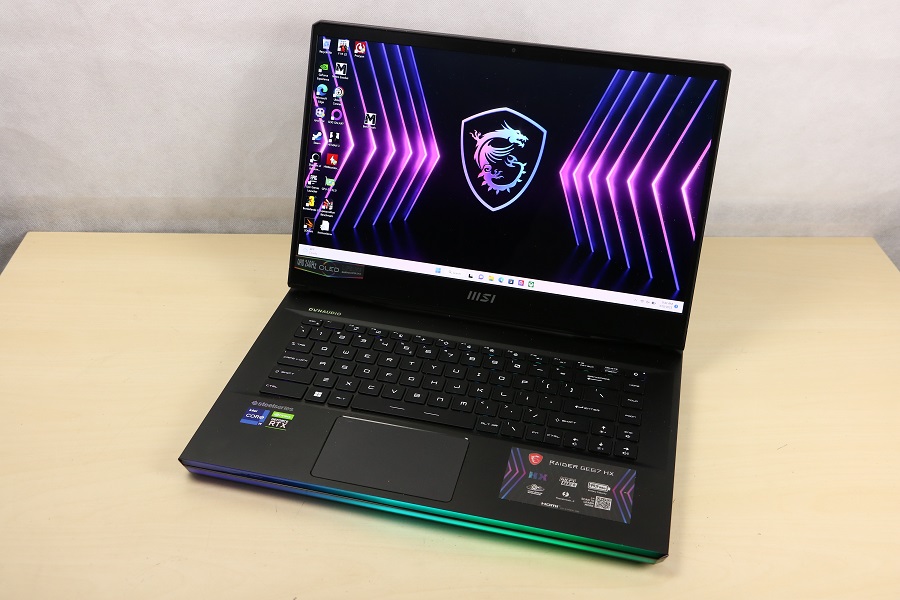 LaptopsMSI Raider GE67HX 12UHS 015NL Review 1 juni 20231575 views0Share By Rooieduvel ShareMSI Raider GE67HX9De MSI Raider GE67HX 12UHS is een beest van een laptop. Hij heeft de snelste 12e generatie Intel processor aan boord, gecombineerd met 32GB aan geheugen, 2TB aan opslag en een 3080Ti videokaart. Deze combinatie staat garant voor prima game prestaties die niet onder doen voor een desktop pc. Kers op de taart is daarbij het 240Hz OLED paneel die games en video's van het scherm laten spatten. Aansluitingen zijn er genoeg, evenals RGB. Helaas maken de ventilatoren veel geluid tijdens het presteren en gaat de accu bij volle belasting maar 2 uur mee. Toch is deze laptop een aanrader, al was het alleen al omdat hij goedkoper te krijgen is aangezien dit een "vorige generatie" model is.TopRGB in overvloedGameprestaties prima in ordeGenoeg aansluitmogelijkhedenSchitterend schermPrima toetsenbordRam en opslag uit te breidenFlopErg luid tijdens gamenGeen RGB in het logoBehoorlijk stroomverbruik wat invloed heeft op de accuduurVoordat ik deze review begin wil ik MSI bedanken voor het uitlenen van deze laptop. Het gebeurt niet elke dag dat er een laptop van dit caliber op mijn bureau staat.De gemiddelde Tweaker zal het merk MSI wel kennen. Het bedrijf is al sinds 1986 actief in computerland. Begonnen ze ooit met alleen moederborden en videokaarten, tegenwoordig heeft het bedrijf bijna alles om een complete pc te bouwen. De enige zaken die nog echt ontbreken zijn processoren en geheugenmodules, al verwacht ik dat het laatste ook nog wel eens in het assortiment terecht komt. Maar ook alles wat op een pc aangesloten kan worden is aanwezig in de collectie. Denk hierbij aan toetsenborden, headsets, muizen, headset stands, controllers, muismatten en zelfs een eigen bureaustoel! Nog even en het merk komt nog met een gaming bureau.Maar het merk is niet alleen actief op de desktop markt. Ook op het gebied van laptops heeft het bedrijf menig apparaat uitgebracht. Dit is zeker niet gericht op één specifieke doelgroep. MSI heeft voor verschillende mensen laptops op de markt. Een zakelijk iemand hoeft immers niet een laptop te hebben die vol zit met RGB en de beste geluidskwaliteit tijdens het spelen van een spel terwijl een gamer bijvoorbeeld niet zit te wachten op een touchscreen of ondersteuning voor een pen. En dan hebben we het nog niet eens gehad over het omklappen van een scherm waardoor een laptop een tablet wordt. Er is voor ieder dus wat wilt in de line-up van laptops.De laptop die we vandaag gaan behandelen is toch wel één van de krachtpatsers van MSI. Dit is namelijk de MSI Raider GE67HX 12UHS, het beste wat MSI op het gebied van Gaming laptops te bieden heeft op het moment van schrijven (Februari 2023). Een 12e generatie i9 processor, DDR5 geheugen, een 3080Ti en een 240Hz OLED scherm, allemaal verpakt in een laptop die uiteraard voorzien is van RGB. Het prijskaartje van deze laptop is echter niet mals: deze ligt op maar liefst €3989,- op het moment dat we de laptop in handen hadden. Een behoorlijk bedrag maar wat krijg je hiervoor terug? Dat gaan we lezen in deze review. PS: Hij zal nu een stuk goedkoper zijn aangezien er opvolgers zijn aangekondigd.SpecificatiesUnboxingBinnenkantSoftwarePrestatiesSynthetische tests1080p1440pErvaringConclusie Voordat we de notebook daadwerkelijk gaan bekijken en opstarten pakken we eerst de specificaties erbij en een aantal features. Aanklikken om te vergrotenEr zijn drie versies van deze gaming laptop. Standaard hebben ze dezelfde configuratie Alle drie de varianten bevatten een processor van de 12e generatie, kunnen maximaal 64GB aan DDR5 geheugen herbergen en hebben ruimte voor twee M.2 SSD’s. De aansluitingen zijn hetzelfde, allemaal hebben ze dezelfde accu en lader en zijn ook allemaal even zwaar. Wat is dan het verschil zou je zeggen? De UHS bevat een GeForce RTX 3080 Ti kaart, de 12UH een RTX 3080 en de UGS een 3070 Ti. De eerste twee varianten hebben een maximum CPU-GPU verbruik van 220 Watt terwijl de 3070 Ti maximaal 205 Watt verstookt. Overigens heeft de variant die wij binnen hebben gekregen 32GB geheugen aan boord maar wel een SSD van maar liefst 2TB zodat zelfs de grootste spellen op de laptop geïnstalleerd kunnen worden. Een goede gaming laptop is meestal afhankelijk van een goede videokaart maar een snelle processor is zeker geen overbodige luxe. Daarom hebben alle laptops in deze reeks de snelste notebook processor aan boord die op dat moment beschikbaar was: de Intel Core i9-12900HX. Deze processor heeft maar liefst 8 Performance cores en 8 Efficiency cores. Dit zijn er net zoveel als de desktop variant heeft wat best knap is op zo’n oppervlak. Wel is het zo dat de snelheden iets lager liggen. Waar de 12900K een max turbo heeft van 5.2 Ghz is die van de 12900HX 5.0 GHz. Wel is deze turbo afhankelijk van de temperatuur dus wanneer de processor te warm wordt zal de hogere snelheid korter aangehouden kunnen worden. Verder valt het stroomverbruik ook wat lager uit dan de desktop variant, wat alleen maar positief is voor de accuduur. Over koeling gesproken: MSI levert deze Raider af met Cooler Boost 5. Dit is een alles-in-één oplossing om zowel de processor als de GPU te koeler. Hiervoor zijn er twee koelblokken die in contact staan met 7 heatpipes. Deze heatpipes voeren de warmte af richting de ventilatoren. Omdat de ventilatoren groter zijn dan bij de vorige versie en de heatpipes breder zijn zouden de onderdelen nog beter gekoeld moeten worden wat geen overbodige luxe is bij de gebruikte onderdelen. Een ander gebruikt onderdeel is de thermal pad. De laptop is voorzien van een phase change thermal pad die ervoor moet zorgen dat er geen ijskristallen ontstaan op het koeloppervlak en dat zodoende het systeem koel en betrouwbaar blijft. Of dit ook het geval is zien we later in deze review terug.Uiteraard is een gaming laptop niet compleet zonder enige vorm van verlichting. Deze Raider heeft dit daarom ook aan boord. Voor het toetsenbor