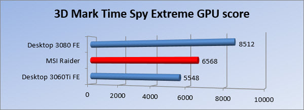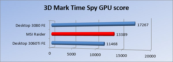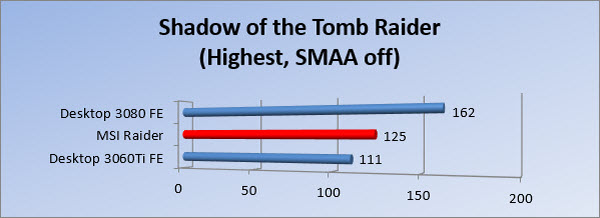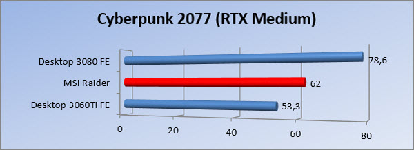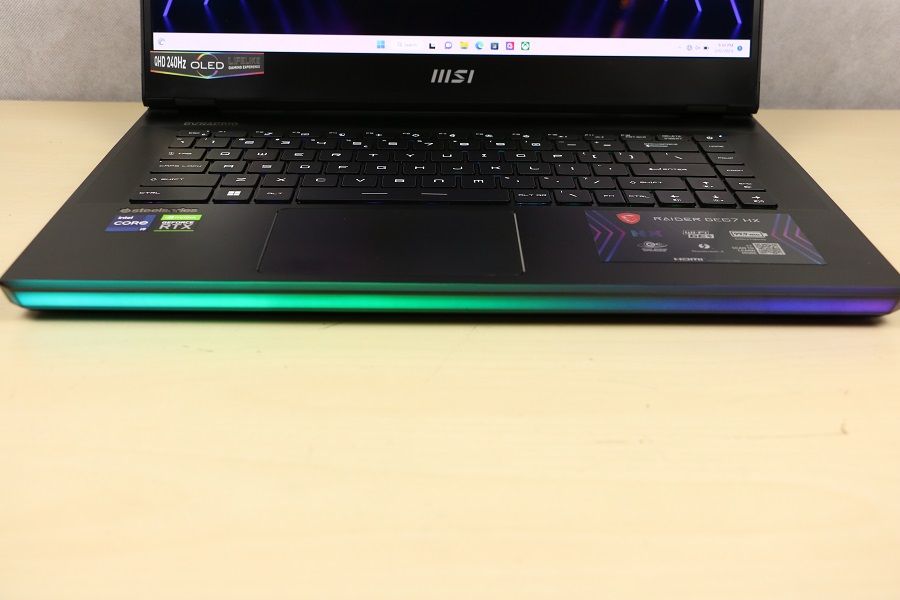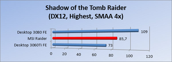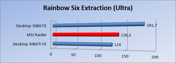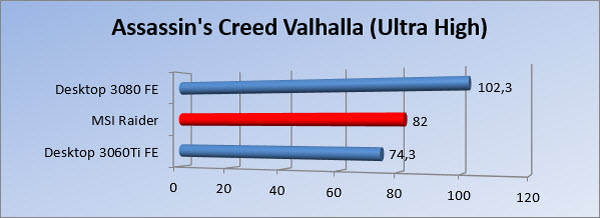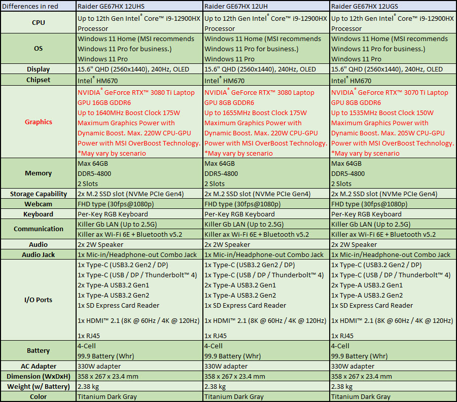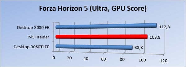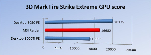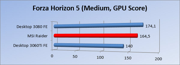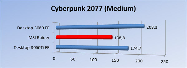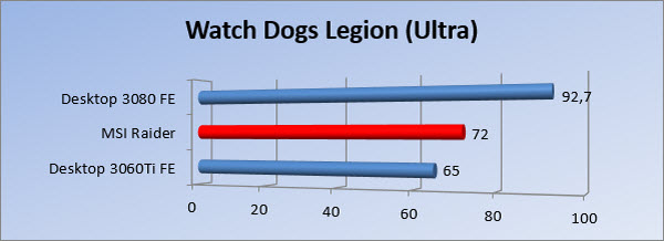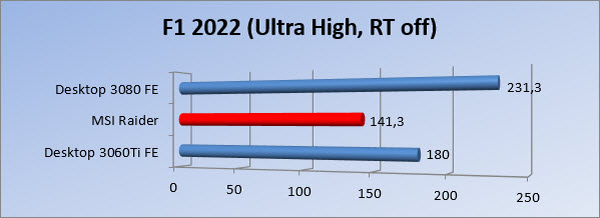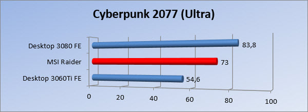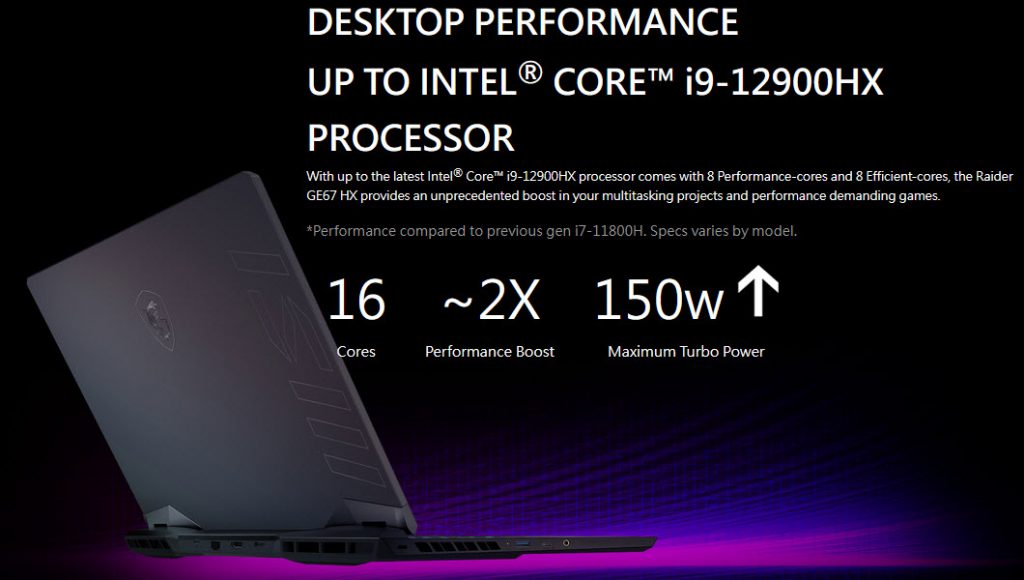 LaptopsMSI Raider GE67HX 12UHS 015NL Review 1 juni 20231575 views0Share By Rooieduvel ShareMSI Raider GE67HX9De MSI Raider GE67HX 12UHS is een beest van een laptop. Hij heeft de snelste 12e generatie Intel processor aan boord, gecombineerd met 32GB aan geheugen, 2TB aan opslag en een 3080Ti videokaart. Deze combinatie staat garant voor prima game prestaties die niet onder doen voor een desktop pc. Kers op de taart is daarbij het 240Hz OLED paneel die games en video's van het scherm laten spatten. Aansluitingen zijn er genoeg, evenals RGB. Helaas maken de ventilatoren veel geluid tijdens het presteren en gaat de accu bij volle belasting maar 2 uur mee. Toch is deze laptop een aanrader, al was het alleen al omdat hij goedkoper te krijgen is aangezien dit een "vorige generatie" model is.TopRGB in overvloedGameprestaties prima in ordeGenoeg aansluitmogelijkhedenSchitterend schermPrima toetsenbordRam en opslag uit te breidenFlopErg luid tijdens gamenGeen RGB in het logoBehoorlijk stroomverbruik wat invloed heeft op de accuduurVoordat ik deze review begin wil ik MSI bedanken voor het uitlenen van deze laptop. Het gebeurt niet elke dag dat er een laptop van dit caliber op mijn bureau staat.De gemiddelde Tweaker zal het merk MSI wel kennen. Het bedrijf is al sinds 1986 actief in computerland. Begonnen ze ooit met alleen moederborden en videokaarten, tegenwoordig heeft het bedrijf bijna alles om een complete pc te bouwen. De enige zaken die nog echt ontbreken zijn processoren en geheugenmodules, al verwacht ik dat het laatste ook nog wel eens in het assortiment terecht komt. Maar ook alles wat op een pc aangesloten kan worden is aanwezig in de collectie. Denk hierbij aan toetsenborden, headsets, muizen, headset stands, controllers, muismatten en zelfs een eigen bureaustoel! Nog even en het merk komt nog met een gaming bureau.Maar het merk is niet alleen actief op de desktop markt. Ook op het gebied van laptops heeft het bedrijf menig apparaat uitgebracht. Dit is zeker niet gericht op één specifieke doelgroep. MSI heeft voor verschillende mensen laptops op de markt. Een zakelijk iemand hoeft immers niet een laptop te hebben die vol zit met RGB en de beste geluidskwaliteit tijdens het spelen van een spel terwijl een gamer bijvoorbeeld niet zit te wachten op een touchscreen of ondersteuning voor een pen. En dan hebben we het nog niet eens gehad over het omklappen van een scherm waardoor een laptop een tablet wordt. Er is voor ieder dus wat wilt in de line-up van laptops.De laptop die we vandaag gaan behandelen is toch wel één van de krachtpatsers van MSI. Dit is namelijk de MSI Raider GE67HX 12UHS, het beste wat MSI op het gebied van Gaming laptops te bieden heeft op het moment van schrijven (Februari 2023). Een 12e generatie i9 processor, DDR5 geheugen, een 3080Ti en een 240Hz OLED scherm, allemaal verpakt in een laptop die uiteraard voorzien is van RGB. Het prijskaartje van deze laptop is echter niet mals: deze ligt op maar liefst €3989,- op het moment dat we de laptop in handen hadden. Een behoorlijk bedrag maar wat krijg je hiervoor terug? Dat gaan we lezen in deze review. PS: Hij zal nu een stuk goedkoper zijn aangezien er opvolgers zijn aangekondigd.SpecificatiesUnboxingBinnenkantSoftwarePrestatiesSynthetische tests1080p1440pErvaringConclusie Voordat we de notebook daadwerkelijk gaan bekijken en opstarten pakken we eerst de specificaties erbij en een aantal features. Aanklikken om te vergrotenEr zijn drie versies van deze gaming laptop. Standaard hebben ze dezelfde configuratie Alle drie de varianten bevatten een processor van de 12e generatie, kunnen maximaal 64GB aan DDR5 geheugen herbergen en hebben ruimte voor twee M.2 SSD’s. De aansluitingen zijn hetzelfde, allemaal hebben ze dezelfde accu en lader en zijn ook allemaal even zwaar. Wat is dan het verschil zou je zeggen? De UHS bevat een GeForce RTX 3080 Ti kaart, de 12UH een RTX 3080 en de UGS een 3070 Ti. De eerste twee varianten hebben een maximum CPU-GPU verbruik van 220 Watt terwijl de 3070 Ti maximaal 205 Watt verstookt. Overigens heeft de variant die wij binnen hebben gekregen 32GB geheugen aan boord maar wel een SSD van maar liefst 2TB zodat zelfs de grootste spellen op de laptop geïnstalleerd kunnen worden. Een goede gaming laptop is meestal afhankelijk van een goede videokaart maar een snelle processor is zeker geen overbodige luxe. Daarom hebben alle laptops in deze reeks de snelste notebook processor aan boord die op dat moment beschikbaar was: de Intel Core i9-12900HX. Deze processor heeft maar liefst 8 Performance cores en 8 Efficiency cores. Dit zijn er net zoveel als de desktop variant heeft wat best knap is op zo’n oppervlak. Wel is het zo dat de snelheden iets lager liggen. Waar de 12900K een max turbo heeft van 5.2 Ghz is die van de 12900HX 5.0 GHz. Wel is deze turbo afhankelijk van de temperatuur dus wanneer de processor te warm wordt zal de hogere snelheid korter aangehouden kunnen worden. Verder valt het stroomverbruik ook wat lager uit dan de desktop variant, wat alleen maar positief is voor de accuduur. Over koeling gesproken: MSI levert deze Raider af met Cooler Boost 5. Dit is een alles-in-één oplossing om zowel de processor als de GPU te koeler. Hiervoor zijn er twee koelblokken die in contact staan met 7 heatpipes. Deze heatpipes voeren de warmte af richting de ventilatoren. Omdat de ventilatoren groter zijn dan bij de vorige versie en de heatpipes breder zijn zouden de onderdelen nog beter gekoeld moeten worden wat geen overbodige luxe is bij de gebruikte onderdelen. Een ander gebruikt onderdeel is de thermal pad. De laptop is voorzien van een phase change thermal pad die ervoor moet zorgen dat er geen ijskristallen ontstaan op het koeloppervlak en dat zodoende het systeem koel en betrouwbaar blijft. Of dit ook het geval is zien we later in deze review terug.Uiteraard is een gaming laptop niet compleet zonder enige vorm van verlichting. Deze Raider heeft dit daarom ook aan boord. Voor het toetsenbor