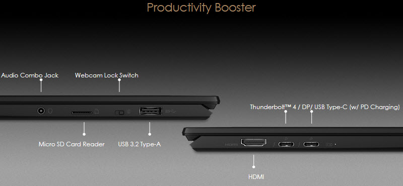Als laatste zien we ook aardig wat aansluitingen die voor menig creator of zakelijk gebruiker echt wenselijk zijn op een laptop als de Summit. Zo is er een combo jack voor een headset, een kaartlezer voor het uitlezen van je bestanden, een schakelaar om de webcam uit te zetten, HDMI en twee USB Type-C poorten die zowel de USB standaard als de Thunderbolt standaard aan kunnen. Een docking is zo aangesloten maar opladen is ook gewoon mogelijk. Tevens kan zo een extra scherm aangesloten worden voor nog meer pixels en werkruimte!