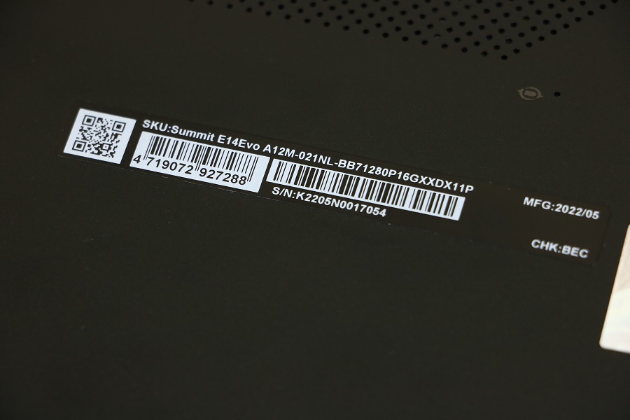 Hierboven vinden we de algemene specificaties van de Summit E14 A12M generatie. Dit is wat er standaard aanwezig is. Het verschil tussen de diverse varianten zit hem in de gebruikte processor, het geheugen en de opslag die meegegeven is. Uiteraard is ook het toetsenbord anders in verschillende landen. De versie die wij mee hebben gekregen is de 021NL, wat sowieso betekent dat er een standaard QWERTY toetsenbord op de laptop zit. Qua processor is er gebruik gemaakt van de Intel Core i7-1280P, een processor met 14 cores. Deze loopt standaard op 1,3 GHz als er niets gebeurt en hij kan maximaal boosten naar 4,8 GHz als het nodig is. Er is 16GB aan DDR5 geheugen aanwezig wat loopt op 4800 MHz. DDR4 behoort hierbij tot het verleden. Qua opslag is er een 1TB SSD aanwezig wat genoeg moet zijn om heel wat documenten, foto’s en videomateriaal op te bewaren. Uitbreiden met een externe schijf is altijd mogelijk natuurlijk