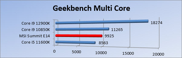 De laptop weet in Single Core tests de desktop processoren nog goed bij te houden. Ga je kijken naar de Multi Core tests dan staat de i7 1280p tussen een 11600K en een 10850K van een generatie eerder. Dit zijn iets oudere processoren maar wel desktop versies. Kijkende naar de form factor is dit een goede prestatie.