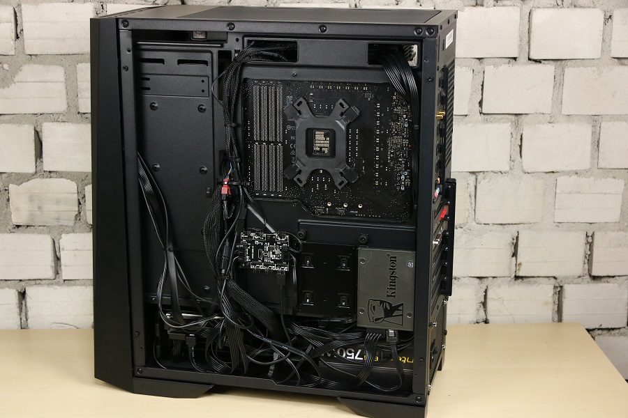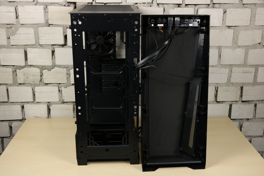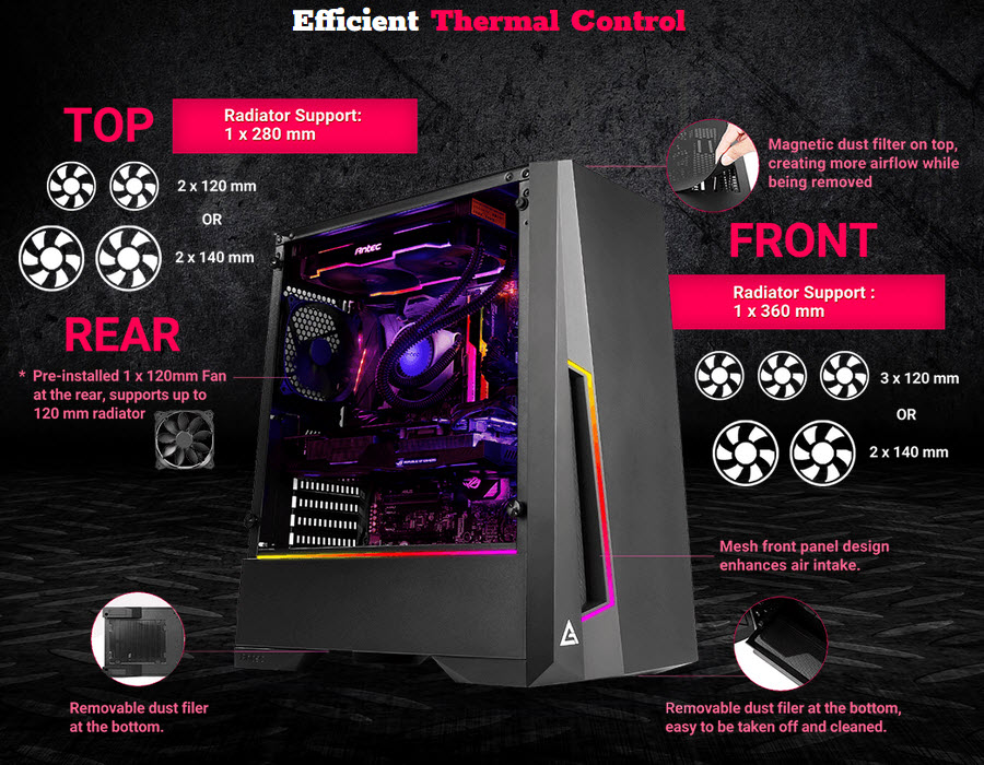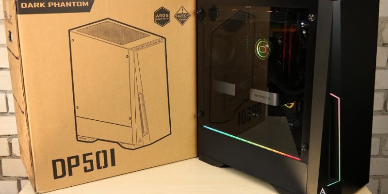 Behuizingen Antec Dark Phantom 501 Zwart Review 12 september 20221046 views0 Share By Rooieduvel Share Antec Dark Phantom 501 7.6De Antec DP501 is een nette budgetkast die voorzien is van een aantal features zoals subtiele RGB elementen, tempered glass, genoeg opslagruimte en een A-RGB controller. De kast is makkelijk op te bouwen. Helaas is er bezuinigd op rubberen afdichtingen en extra ventilatoren worden aangeraden bij een luchtgekoeld systeem.TopMakkelijk in te bouwenMooie RGB verlichtingTempered glass op dit prijspuntGenoeg mogelijkheden voor opslagPrima prijs/kwaliteitLED controller ingebouwdFlopGeen rubbers voor SSD montageKabeldoorvoer is helaas niet netjes afgewerkt met rubberPCIe covers moeten afgebroken wordenExtra ventilatoren wel verstandig bij een luchtkoeler Als eerste wil ik Antec bedanken voor het beschikbaar stellen van deze computerkast.Antec is een naam in de computerwereld die al langere tijd aanwezig is. Het bedrijf maakt voornamelijk computerkasten en voedingen. Ook hebben ze koelers in het assortiment zitten (zie mijn eerdere review), notebook accessoires en ze hebben in het verleden zelfs mobiele producten gehad zoals bluetooth speakers, hoofdtelefoons en powerbanks. Ik heb in het verleden een paar keer computers gebouwd met behuizingen van het merk. Vooral de Sonata behuizing heb ik menig maal in mijn handen gehad. Dat waren altijd prachtige kasten om in te bouwen en zagen er strak uit.Het bedrijf heeft echter verschillende series van behuizingen op de markt gezet. Niet alleen de Sonata kasten (die niet meer te krijgen zijn helaas) maar ook de Performance kasten waren populair en deze worden nog steeds gemaakt. Maar ze hebben ook Gaming kasten en mini kasten in de vorm van de ISK serie. De Antec Torque is weer een mini-ITX kast die vrij populair is onder computerbouwers die graag een watergekoelde ITX pc maken. Zo heeft het bedrijf voor elke pc bouwer wel een kast te op de markt.Het onderwerp van vandaag is de DP501 kast waarbij DP staat voor Dark Phantom. Het is een ATX kast voorzien van een aantal RGB elementen en tempered glass, iets wat de laatste jaren steeds vaker toegepast wordt. De prijs moet hem echter onderscheiden van zijn tegenstanders. Deze kast moet maar ongeveer €60,- kosten wat niet veel is voor een kast met deze opties. Maar wat krijg je nu echt terug voor het geld? Dat gaan we lezen in deze review. SpecificatiesUnboxingBuitenkantBinnenkantInbouwenPrestatiesConclusie Als eerste gaan we kijken naar de specificaties: Het materiaal waar de kast van gemaakt is, is SGCC (wat een type staal is) en plastic. Het rechter zijpaneel is gemaakt van tempered glass terwijl de andere zijkant ook van staal is. De afmetingen zijn 44,3 bij 21 bij 48,4 centimeter en er kan maximaal een ATX moederbord geplaatst worden. Kleiner is ook mogelijk natuurlijk. Het gewicht is 5,6 kilo wat niet heel zwaar is. Er is ruimte voor twee 3.5 inch harde schijven en maximaal 6 2.5 inch schijven (ook al zeggen de specificaties vier, twee stuks kunnen op de plek van de HDD’s). De videokaart mag maximaal 36 centimeter langs zijn en de koeler 16,5 centimeter. Qua koeling zijn er behoorlijk wat opties aanwezig. Het is jammer dat de kast maar met één ventilator komt wat er kunnen maximaal zes 120mm ventilatoren geplaatst worden. Heb je liever 140mm ventilatoren dan kunnen daar vier stuks van gemonteerd worden naast de 120mm ventilator aan de achterkant. De kast heeft tevens plek voor twee radiatoren: maximaal 360mm aan de voorkant en maximaal 240mm aan de bovenkant. Eventueel zou je nog aan de achterkant een 120mm radiator kunnen plaatsen maar zelf raad ik dit niet aan. De kast heeft twee stoffilters: één aan de onderkant bij de voeding en één aan de bovenkant. De voorkant heeft als laatste een klein stuk mesh wat moet zorgen dat er koele lucht de kast ingeblazen wordt. Dit gedeelte is overigens ook voorzien van ARGB verlichting. Over verlichting gesproken: de kast heeft een ARGB hub ingebouwd zitten. Hier zit de “blade” al op gekoppeld maar daar kun je nog meer apparaten op aan sluiten zodat de verlichting netjes op elkaar afgestemd is. De module heeft zes aansluitingen waarvan er al één in gebruik is. Natuurlijk kan er met een splitter meer apparaten aangesloten worden. Met de mode knop is het dan mogelijk om de verlichting aan te passen. Overigens is het ook mogelijk om de ARGB hub op het moederbord aan te sluiten zodat de verlichting bediend kan worden met de software die met het moederbord mee geleverd wordt.Meer informatie is terug te vinden op de pagina van AntecTerug naar boven We pakken de grote doos er bij en gaan zien wat er allemaal in zit. De verpakking heeft geen bijzondere kleurstelling maar is gewoon in het bruin uitgevoerd. Op de voorkant zien we een tekening van de DP501 kast. Bovenin vinden we de naam van de serie terwijl onderaan het typenummer van de kast staat. Aan de rechterkant staat nog het merk genoemd. Kijken we naar de achterkant dan zien we hetzelfde terug echter is hier de hele kast uit elkaar gehaald. Zo krijg je al een beetje een idee van de kast zelf. Op de zijkant van de doos staan de specificaties zoals die eerder ook al genoemd zijn. Maken we de doos open dan zien we een deel van de kast al terug in plastic. De kast zelf zit geklemd tussen piepschuim zodat de kast ook heel aankomt bij de klant. Als we de kast uit de doos halen dan zien we dat alles mooi verpakt is om zoveel mogelijk te voorkomen dat de behuizing schade oploopt tijdens het transport. Als we deze dan ontdoen van al het verpakkingsmateruaal kunnen we bij de opening van de voeding een zakje zien zitten. Dit zijn de accessoires die Antec bij de kast levert. Dit zijn drie slot covers, een handleiding en een zakje schroefjes. Deze schroeven zijn in het zwart uitgevoerd, iets wat steeds vaker voor komt. Het zakje met schroeven is helaas niet meer opnieuw af te sluiten. We schuiven de spullen aan de kant en pakken de kast er bij. Daar valt op dat de zijkant voor een deel uit gl