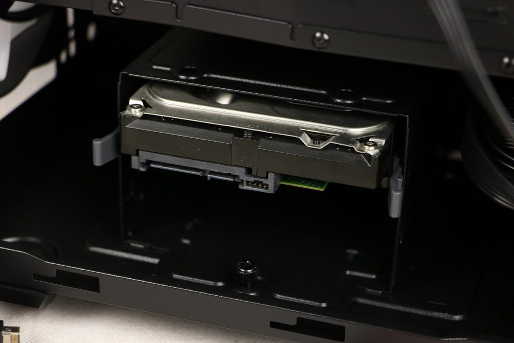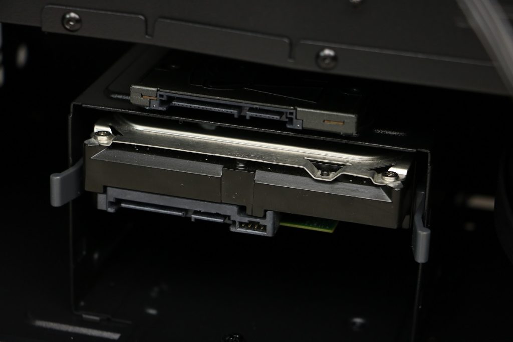 Één van de voordelen van deze kast is dat sommige onderdelen zonder gereedschap ingebouwd kunnen worden. Het zijpaneel wordt namelijk zonder gereedschap losgehaald maar ook voor de schijven en SSD’s is geen gereedschap nodig. Al is het soms wel fijn dat schroeven wat vaster zitten, het is niet perse nodig voor deze hardware. Als die eenmaal op zijn plek zitten worden ze niet meer losgehaald. Wel zo prettig om zoiets te hebben in een kast.