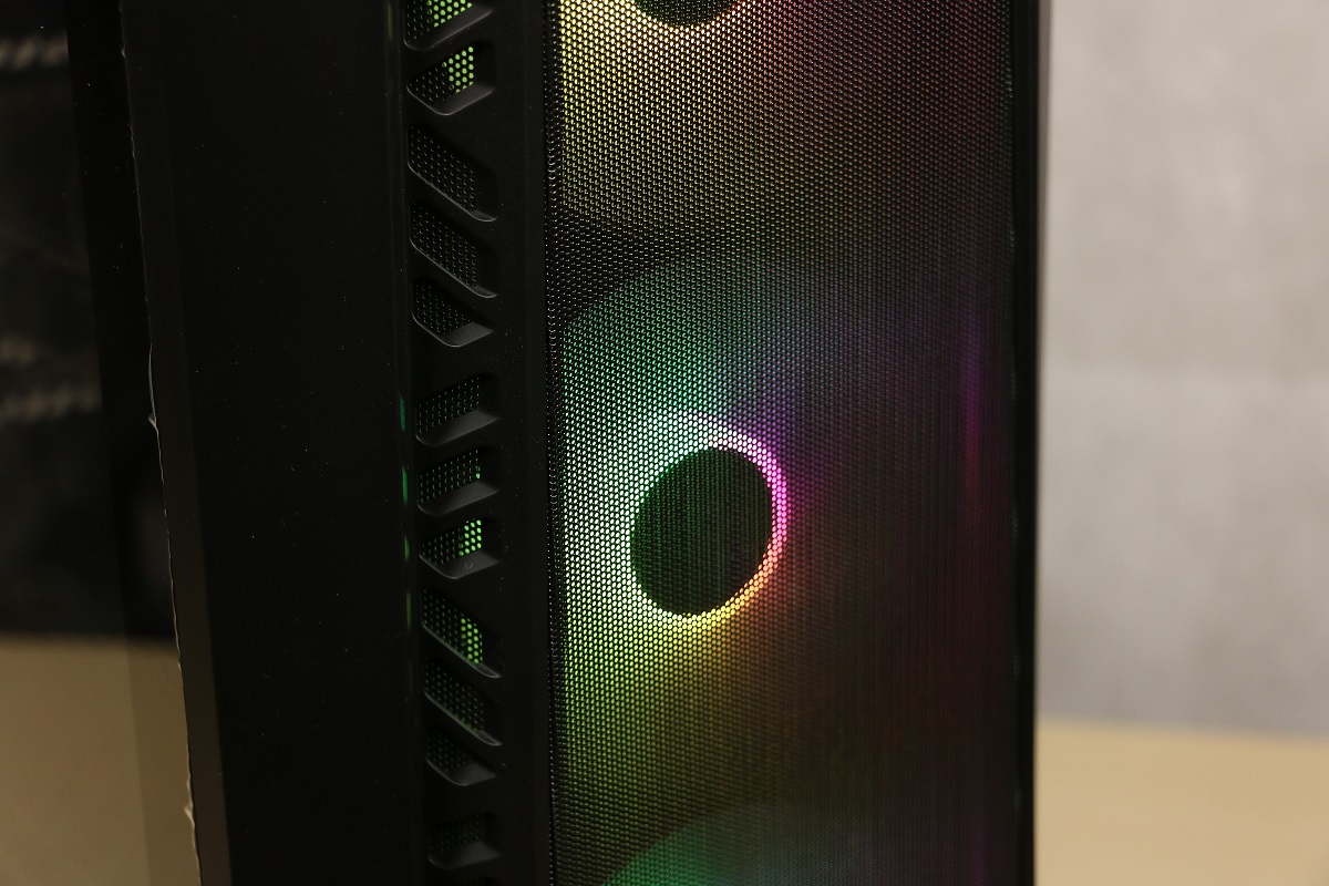 De kast is qua formaat een standaard ATX kast. Standaard is deze 50 bij 21 bij 50 centimeter groot en heeft een inhoud van 43 liter. Daarmee is er genoeg ruimte om een pc te kunnen bouwen. De kast zelf is niet zwaar maar dat zegt niets over de kwaliteit. De kast voelt solide aan voor het geld wat neergelegd moet worden. De kast is opgetrokken uit een stalen frame en bijbehorend zijpaneel, een tempered glass zijpaneel en een plastic kap met fijn mesh erop. Dit mesh moet zorgen voor een betere airflow. Door het mesh heen is de verlichting van de aanwezige ventilatoren te zien. Dit is tevens te zien door het glas wat aan de zijkant zit. Deze is ietsjes donkerder maar niet zo donker dat er niets te zien is. Bovendien kan de verlichting gesynchroniseerd worden met elkaar dankzij de aanwezige RGB controller.