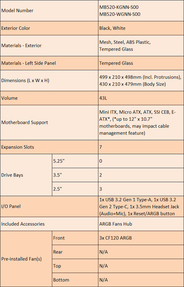 De MasterBox 520 is op dezelfde manier opgebouwd als andere MasterBox kasten wat op zich prima is. Elke variant heeft zijn eigen mogelijkheden en features. De 520 Mesh is, zoals de naam al verklapt, voorzien van een Mesh voorpaneel. In combinatie met de RGB ventilatoren aan de voorkant zorgt dit voor voldoende airflow en de nodige verlichting. Helaas is er geen ventilator achterin te vinden. Koelprestaties zijn netjes te noemen. Één van de beste features is dat de bovenkant van de kast losgehaald kan worden zodat het systeem makkelijk ingebouwd kan worden. Rubbers bij de openingen van de kabels ontbreken helaas. Prima prijs/kwaliteit verhouding maar er is enorm veel concurrentie in deze prijsklasse.