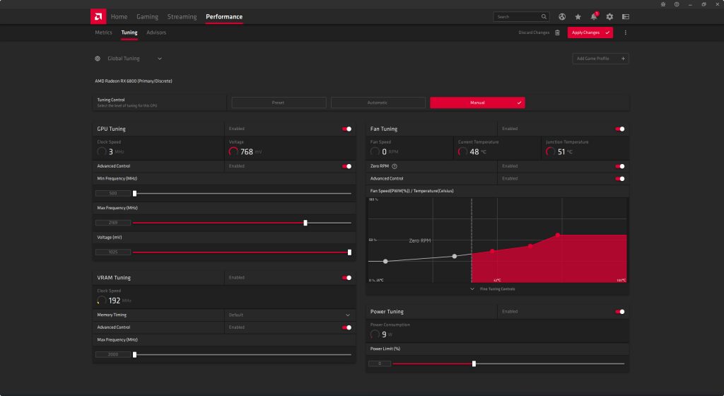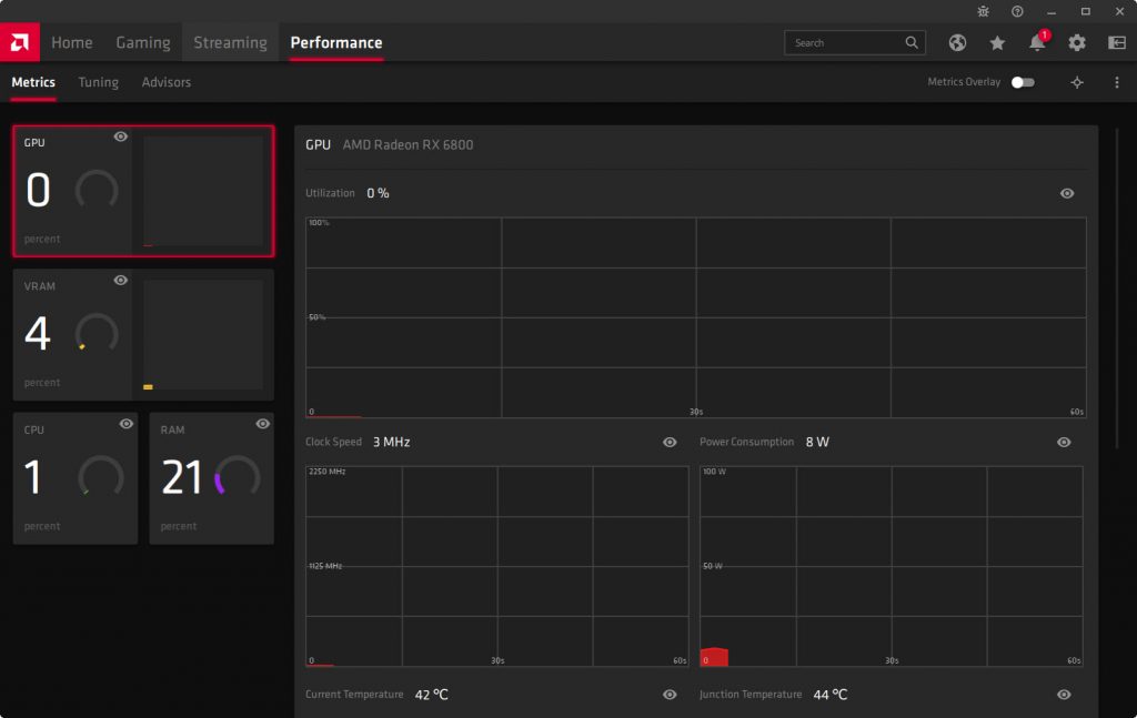 Ook al is dit een kaart van de GPU fabrikant zelf, dat betekent niet dat er geen software aanwezig is. Sterker nog: bij de drivers wordt een hele bundel met software geleverd. De software is genaamd Adrenalin en bevat vele mogelijkheden. Het is mogelijk games te optimaliseren en het is zelfs mogelijk om vanuit deze software de videokaart over te klokken, iets wat bij het groene kamp alleen maar kan met pakketten van andere fabrikanten. Ook streamen of video’s opnemen vanuit de software is mogelijk. Kortom: een vrij compleet pakket.