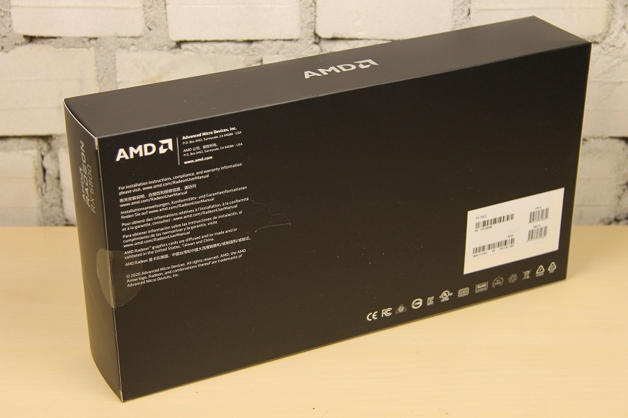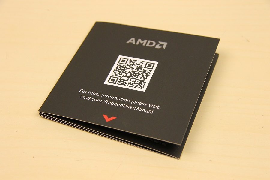 Op de voorkant van de doos zien we het bovenste deel van de videokaart afgebeeld met daarop het verlichte RADEON logo. Deze verlichting is in het rood uitgevoerd. Verder zien we rechtsboven de naam van het product staan. Op de achterkant van de doos staat de internet link met de instructies hoe de kaart geïnstalleerd moet worden. Rechts onderin zit een sticker met de gegevens van de kaart inclusief het serienummer. De doos gaat aan de zijkant open waarna er een binnendoos uitgehaald kan worden. Op het losse gedeelte in de binnenkant staat de kaart weer afgebeeld met een paar van de features due aanwezig zijn. Draaien we deze kaart om dan zien we een kaartje met een QR code erop. Als je deze scant kom je op dezelfde pagina uit als het adres op de achterkant. Nu de binnenkant weg is zien we de kaart keurig in de doos liggen.