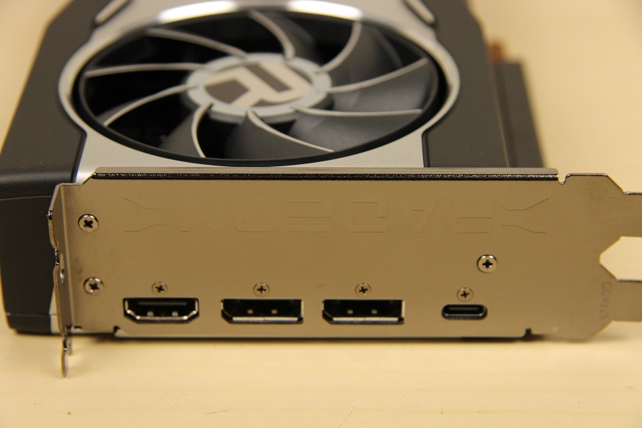 Kijken we naar de aansluitingen dan zien we er vier zitten. Op de kaart zit één HDMI 2.1 connector, twee Displaypoort 1.4a aansluiting en een USB Type-C connector. Van de ene kant een aparte keuze, van de andere kant komen er meer monitoren op de markt die aangestuurd kunnen worden via een USB Type-C connector. Dit maakt het geheel net wat makkelijker met het aansluiten.