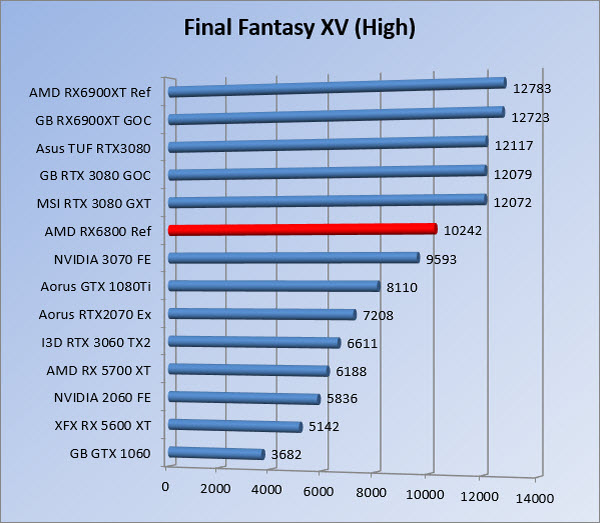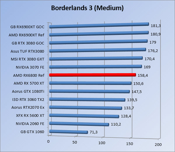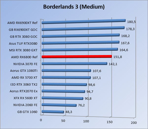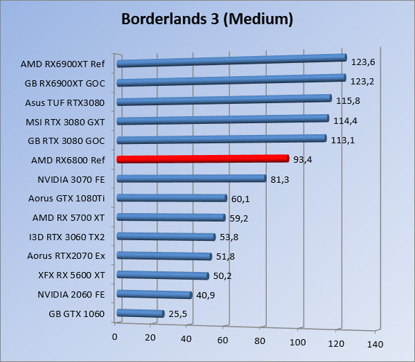 We gaan het de kaart wat moeilijker maken en schroeven de resolutie omhoog naar 1440p. Daar zien we de echte strijd tussen de 6800 en de 3070 die too close to call is. In Final Fantasy is het verschil wat groter en dit zien we ook terug in Hitman en Borderlands. Tevens maakt de kaart indruk bij Metro Exodus maar met Raytracing wordt de 6800 weer op zijn plek gezet. In Far Cry wilt de kaart echt niet presteren en lijkt het erop dat AMD hier gewoon niet goed overweg kan met het spel. De precieze reden kan ik helaas niet achterhalen. In Ghost Recon weer het wisselende beeld: DirectX 11 loopt pas goed als de instellingen op ultimate staan. Met de Vulcan API is de AMD kaart sneller dan een 3080 kaart.