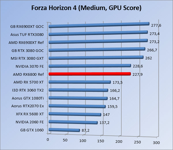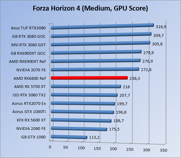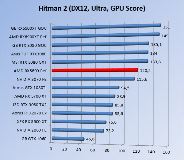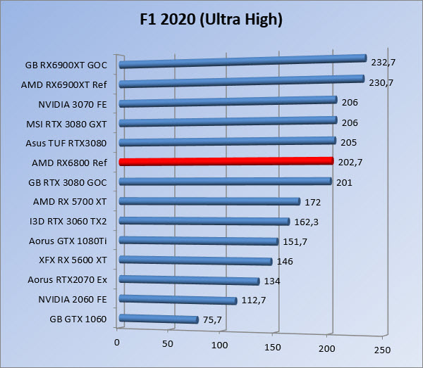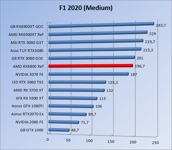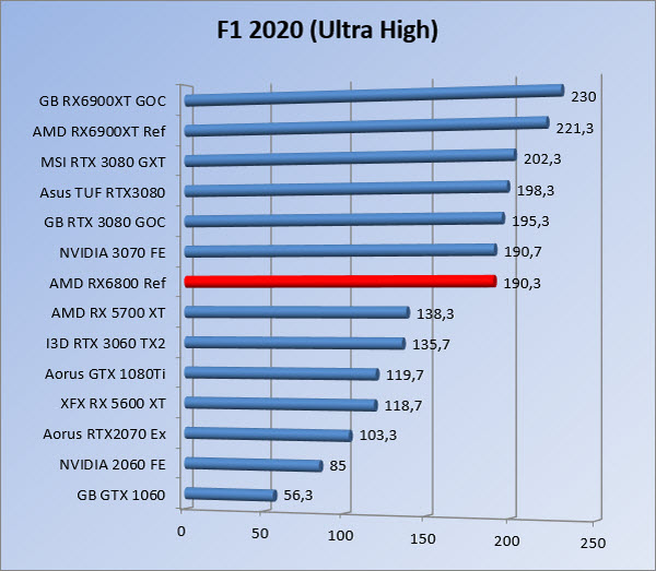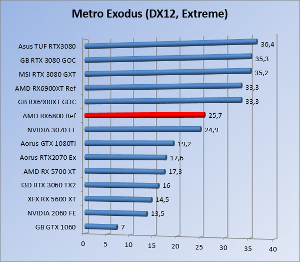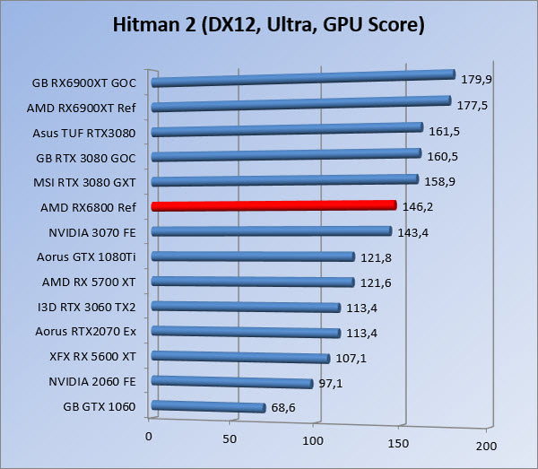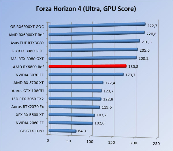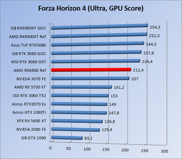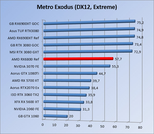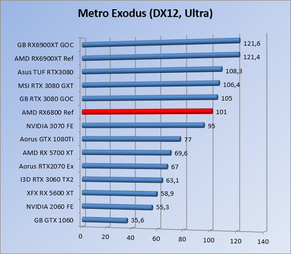 Schroeven we het geheel op naar 4K dan zien we dat de 3070 toch echt wel verslagen wordt, soms met een redelijk grote marge. Wel moet in het achterhoofd gehouden worden dat de 6800 wat duurder is dan de 3070 kaart: €519 vs €580. Dan mag je ook wel wat meer prestaties verwachten op de hoogste settings. Wat dat betreft doet de 16GB geheugen ook prima zijn werk. Ook hier geldt weer dat de Vulcan API echt het terrein van AMD is. Op ultimate wordt de 3080 bijna verslagen, niet slecht voor een kaart die toch wat goedkoper is. Raytracing is echter het pijnpunt weer van AMD: De kaart komt niet eens in de buurt van een 2070, een kaart uit de vorige generatie.