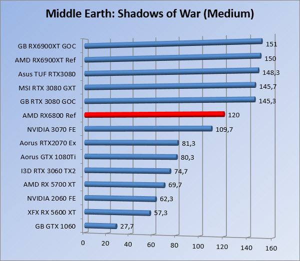 Dan wordt het tijd om eens wat spellen op te starten en te zien hoe deze kaart daarin presteert. De kaart wordt op drie verschillende resoluties getest waarbij we beginnen bij Full HD. 1080p is nog steeds de meeste populaire resolutie om op te gamen al is 1440p wel in opkomst. Die schermen worden ook steeds beter en betaalbaarder. Hier zien we een beetje een wisselend beeld tevoorschijn komen in de resultaten. De ene keer weet de kaart heel goed te presteren maar de andere keer zakt de kaart volledig door het ijs. Dat is ook te wijten aan de CPU bottleneck waar je op Full HD steeds meer mee te maken krijgt. De kaart moet wachten op input en kan zodoende niets doen. Het geeft helaas een vertekend beeld. De kaart weet in Far Cry 5 niet te presteren en is zelfs trager dan een RTX 3060 videokaart. Deze resultaten kloppen aangezien ik dit spel meerdere malen heb getest, ook met nieuwere drivers. Ga je kijken naar de spellen waar we de GPU score bekijken dan staat de kaart wel boven de 3070 net zoals bij Metro Exodus. Aparte vermelding voor Ghost Recon: Onder DirectX 11 presteert de kaart niet goed maar met de Vulcan API komt de kaart in de buurt van de 3080 kaarten.