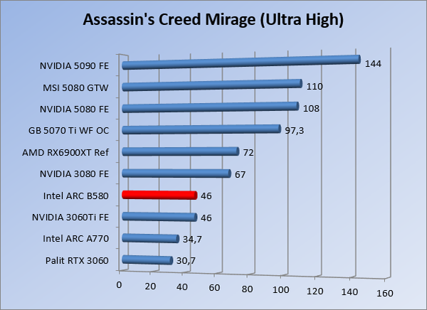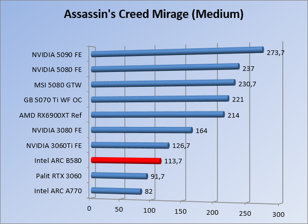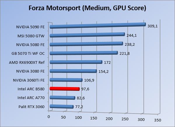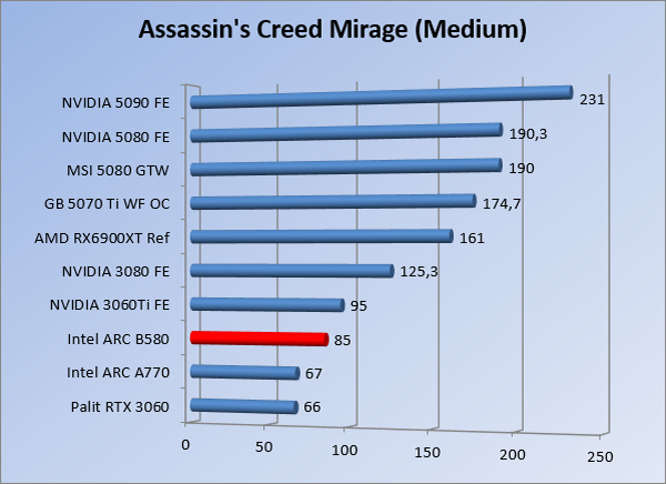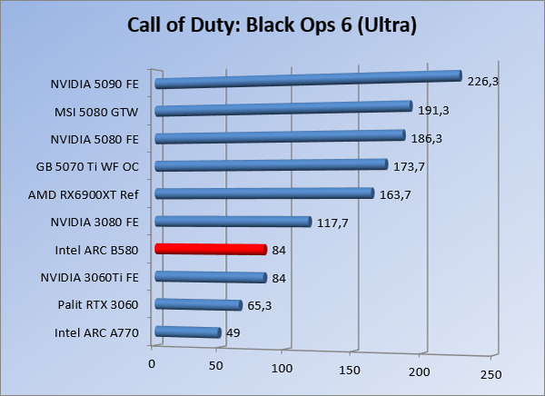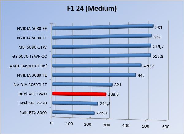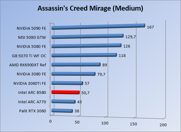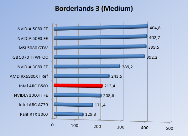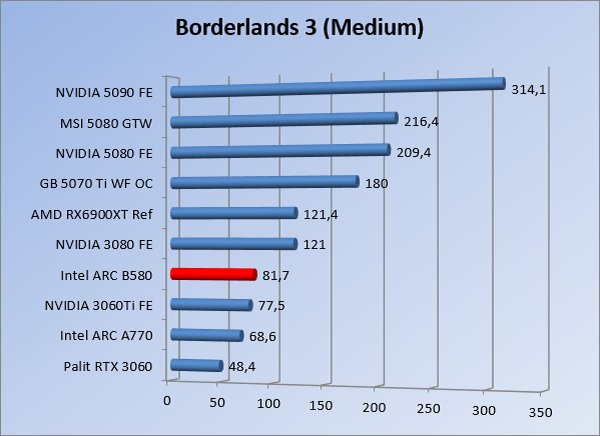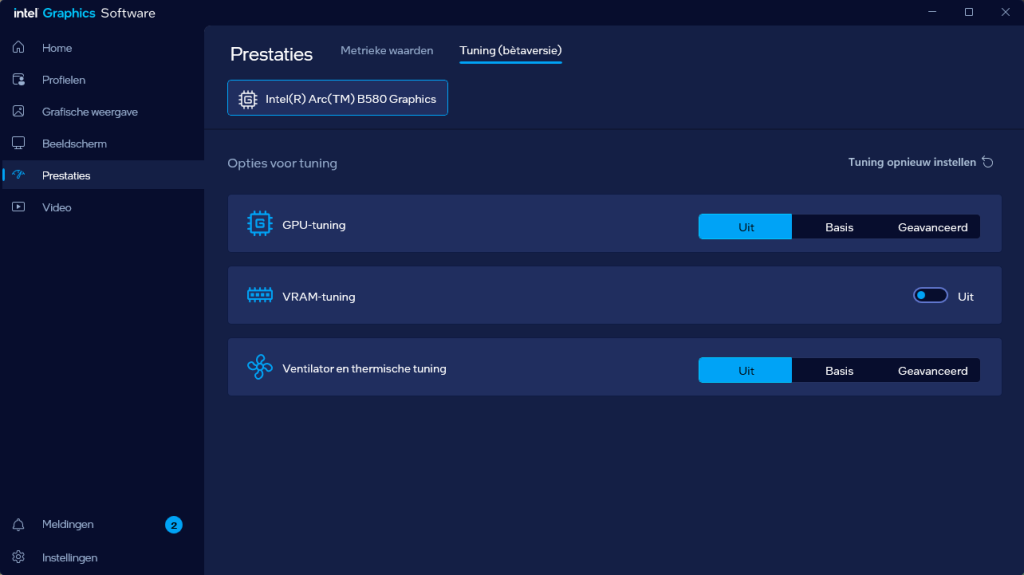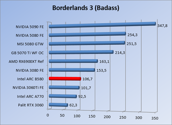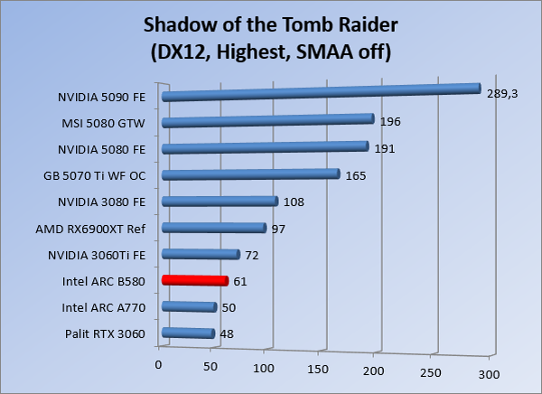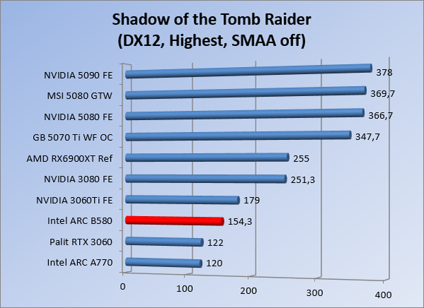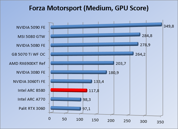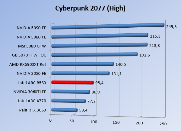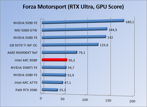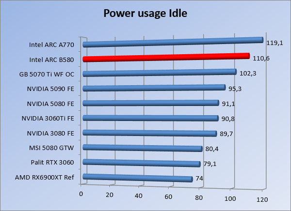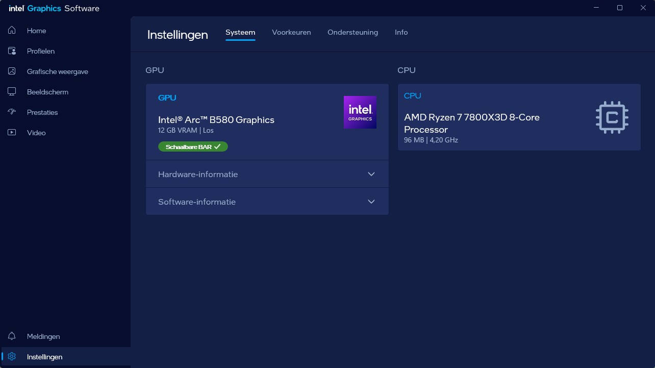VideokaartenIntel Arc B580 Limited Edition review 17 november 20253 views0Share By Rooieduvel ShareIntel Arc B580 Limited Edition7.5De Intel Arc B580 is een waardige opvolger van de A770 kaart. De kaart is compact en oogt vrij simpel maar daarmee ook lekker strak, zonder enige vorm van verlichting. Omdat hij zo compact is kan hij makkelijk ingebouwd worden. Gamen op 1440p lukt over het algemeen prima maar 4K kun je niet verwachten van deze kaart. De kaart heeft maar één 8-pins PCIe connector nodig dus geen exotische aansluitingen. Dit werkt door op het verbruik van de kaart want hij is vrij zuinig, ten minste: tijdens het gebruiken van je machine. Het idle verbruik is namelijk vrij hoog. Overklokken heeft niet zoveel zin want veel winst valt er niet te behalen. Een leuke betaalbare kaart die wel concurrentie heeft van de tweedehands markt.TopStrak uiterlijkPrima prijs/kwaliteit1440p gamen is goed te doen op een uitzondering naLaag standaard verbruikSlechts 1 8-pins PCIe connector nodigVrij stilFlopFans draaien in IdleSoftware kan wel wat beterIdle verbruik ligt nog steeds hoog4K gamen is te hoog gegrepen voor deze kaartConcurrentie van een twee generaties oudere 3070 voor dezelfde prijsOverklokken lijkt nauwelijks effect te hebbenVoor ik deze review begin wil ik aangeven dat deze kaart door mijzelf is gekocht bij Caseking en dus compleet niet gesponsord is door Intel of welk bedrijf dan ook.De strijd in de wereld van de videokaarten gaat onverminderd door. Meestal als je aan videokaarten denkt dan heb je het over de strijd tussen NVIDIA en AMD. Natuurlijk zijn er wel bedrijven die soms proberen er tussen te komen maar dat gaat niet echt. En natuurlijk heb je ook GPU chips zitten op de processoren van AMD, Intel en ARM maar die zijn meestal niet goed genoeg om de nieuwste games op hogere resoluties te kunnen verwerken. Daar is gewoon de ruimte en de kracht niet voor aanwezig. Dit is wel handig om te hebben als je een machine moet troubleshooten of gewoon niet zoveel rekenkracht nodig hebt en niets meer wilt dan een beeld tonen.In 2022 heeft Intel echter besloten zelf losse videokaarten te gaan maken voor desktops en laptops. Voor laptops was er de Arc-A serie die gelanceerd werd op 30 maart 2022. De desktop kaarten moesten wat langer op zich laten wachten en deze kwamen uiteindelijk uit in het tweede en derde kwartaal van 2022. Deze lancering was wellicht niet de beste uit de geschiedenis maar de kaarten wisten zeker goede prestaties neer te zetten voor een eerste poging. Na deze release is het eind 2024 de beurt aan de opvolger van de Alchemist kaarten: de Battlemage reeks. Dit zit uiteraard ook in de naam aangezien de namen van de kaarten beginnen met een B. Deze kaarten maken gebruik van de 2e generatie Xe architectuur en zouden volgens Intel een 70% betere performance hebben en 50% meer performance per Watt dan de vorige generatie.In December 2024 kwam Intel met de Arc B570 en de B580 kaarten op de markt die ook gemaakt worden door een paar partners. In deze review gaan we het echter hebben over de B580 “Limited Edition” van Intel zelf. De kaart moet rond de €300,= kosten bij verschillende winkels en is daarmee een redelijke prijs voor een videokaart. Soms is hij echter ook te krijgen voor €250,-. Nu is uiteraard de vraag: wat krijgen we voor dit geld, zijn de prestaties in orde en is de kaart zuinig of niet? Daar gaan we achter komen in deze review.SpecificatiesUnboxingPrestatiesSynthetische benchmarksFull HD1440p4K resolutieSoftwareTemperaturen en verbruikOverclockingConclusieTerug naar bovenVoordat we de kaart gaan bekijken pakken we eerst de theorie er eens bij.We zien een hele lijst met allerlei informatie, afkomstig van de pagina van Intel. Laten we een paar dingen eruit pakken. De codenaam van de Arc B580 is Battlemage waar de vorige generatie nog Alchemist heette. De architectuur die Intel gebruikt heeft zal niemand verbazen: dit is de Xe2 versie wat een doorontwikkeling is van de Xe architectuur, gebruikt op de A kaarten. Hierbij is de chip efficiënter en worden de taken beter verdeeld. Het procedé is ook verkleind namelijk naar 5nm. De GPU bestaat voor de B580 kaart uit 20 Xe cores die in totaal 160 XMX engines bevatten, hetzelfde aantal Vector Engines en 20 Ray Tracing units. De kaart is geklokt op 2670 MHz en de snelheid van het geheugen zit op 19 Gbit/s wat sneller is dan het geheugen op een A770. Snelheid zegt echter niet alles. Uiteraard ondersteunt ook deze kaart de laatste technieken inclusief het Encoding/Decoing van H.264, H.265, AV1 en VP9. Qua aansluitingen hebben we één HDMI 2.1 poort en drie Displaypoort 2.1 poorten dus ook dit is bij de tijd. Het aparte is wel dat de kaart gebruikt maakt van een PCIe 4.0 x8 poort dus niet de nieuwste specificatie en niet de volledige bandbreedte. Ook apart om te zien is dat de kaart slechts één 8-pins PCIe connector nodig heeft om te kunnen werken. Het stroomverbruik zal dus niet al te hoog liggen, vooral omdat er een voeding van 600 Watt wordt aangeraden.Wil je meer informatie, kijk dan op de internetpagina van Intel.Terug naar bovenGenoeg theorie, tijd om de doos er eens bij te pakken en alles goed te gaan bekijken.In plaats van een blauwe doos zien we bij deze levering een bruine doos. Dit is anders dan we gewend zijn bij de producten van Intel. We zien wel een kleine opening met daar doorheen wat informatie over de kaart, de productcodes, barcodes en het serienummer. Deze laatste is om redenen uitgegumd. Gaan we de bruine doos openmaken dan zien we wel de bekende blauwe doos tevoorschijn komen. Net als bij de Alchemist kaarten staat hier duidelijk vermeld dat het om een Intel ARC kaart gaat. Ook staat het type vermeld. Aan de achterkant zien we een paar features terwijl op de onderkant van de doos de specificaties gedrukt staan. Bovenop zit een strip die je moet lostrekken om de doos open te maken.Is deze strip losgetrokken dan kan de binnenkant netjes uit de blauwe doos geschoven worden. Daar treffen we een