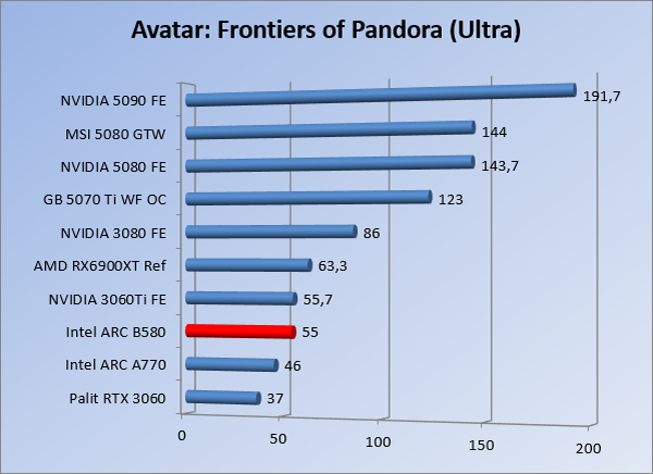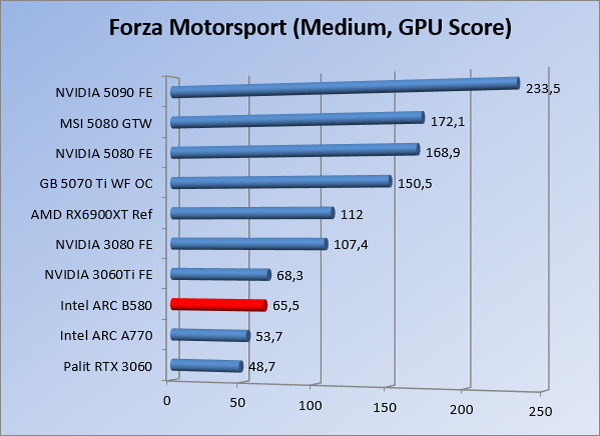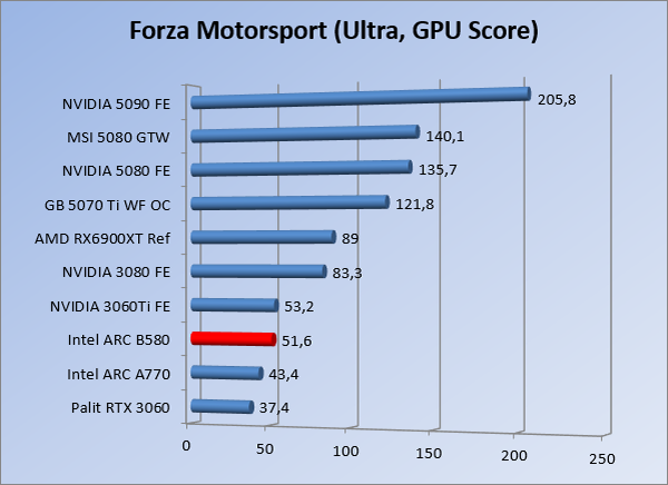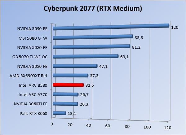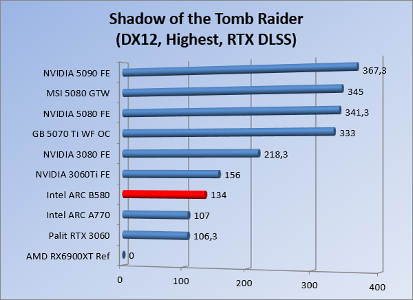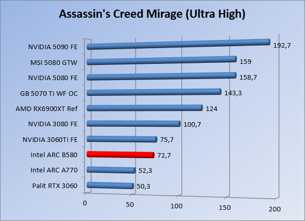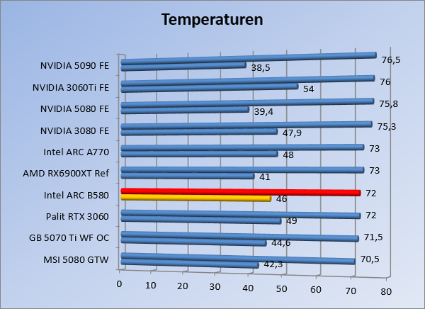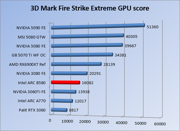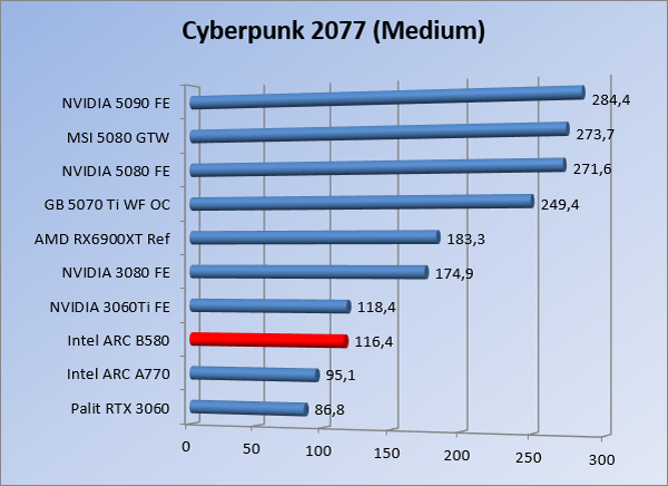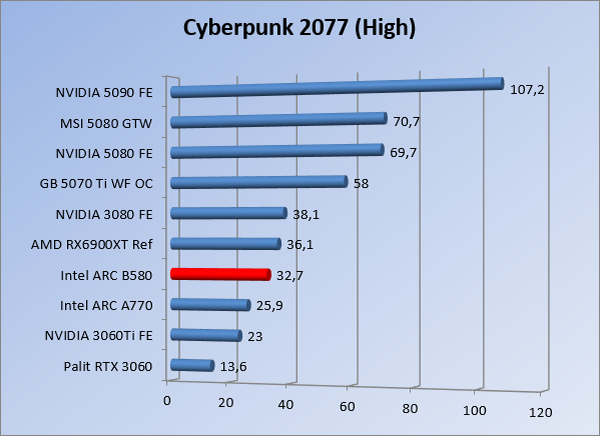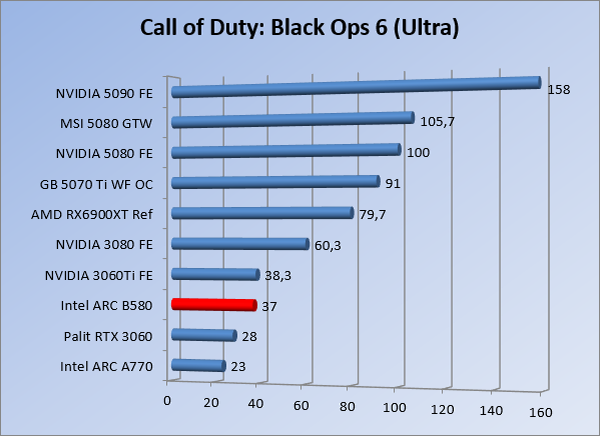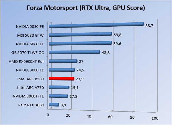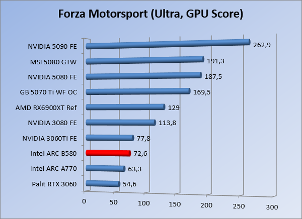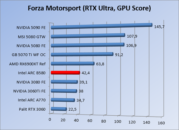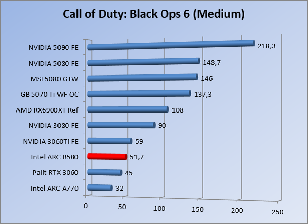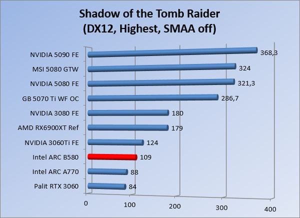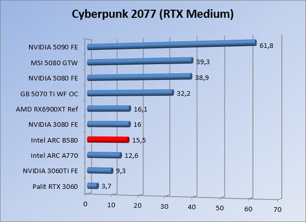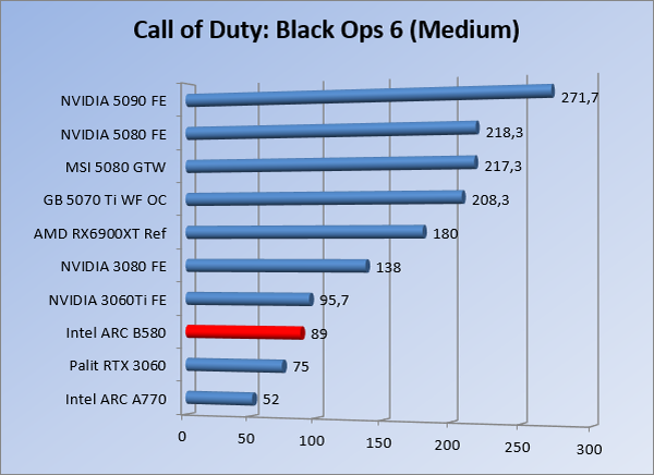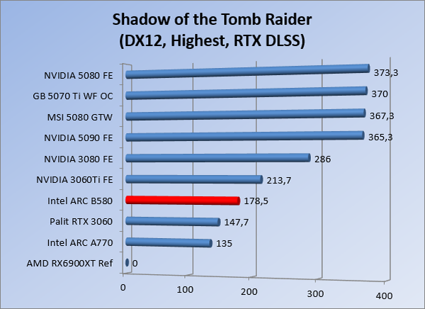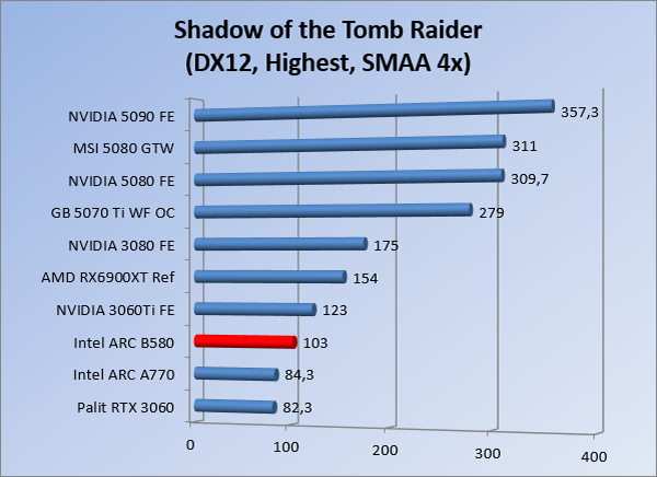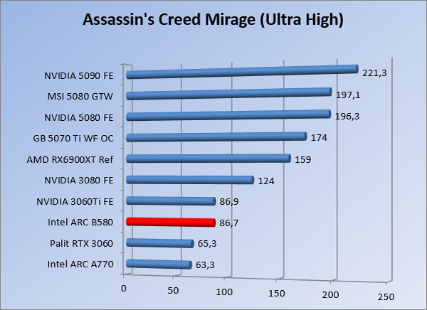 VideokaartenIntel Arc B580 Limited Edition review 17 november 20253 views0Share By Rooieduvel ShareIntel Arc B580 Limited Edition7.5De Intel Arc B580 is een waardige opvolger van de A770 kaart. De kaart is compact en oogt vrij simpel maar daarmee ook lekker strak, zonder enige vorm van verlichting. Omdat hij zo compact is kan hij makkelijk ingebouwd worden. Gamen op 1440p lukt over het algemeen prima maar 4K kun je niet verwachten van deze kaart. De kaart heeft maar één 8-pins PCIe connector nodig dus geen exotische aansluitingen. Dit werkt door op het verbruik van de kaart want hij is vrij zuinig, ten minste: tijdens het gebruiken van je machine. Het idle verbruik is namelijk vrij hoog. Overklokken heeft niet zoveel zin want veel winst valt er niet te behalen. Een leuke betaalbare kaart die wel concurrentie heeft van de tweedehands markt.TopStrak uiterlijkPrima prijs/kwaliteit1440p gamen is goed te doen op een uitzondering naLaag standaard verbruikSlechts 1 8-pins PCIe connector nodigVrij stilFlopFans draaien in IdleSoftware kan wel wat beterIdle verbruik ligt nog steeds hoog4K gamen is te hoog gegrepen voor deze kaartConcurrentie van een twee generaties oudere 3070 voor dezelfde prijsOverklokken lijkt nauwelijks effect te hebbenVoor ik deze review begin wil ik aangeven dat deze kaart door mijzelf is gekocht bij Caseking en dus compleet niet gesponsord is door Intel of welk bedrijf dan ook.De strijd in de wereld van de videokaarten gaat onverminderd door. Meestal als je aan videokaarten denkt dan heb je het over de strijd tussen NVIDIA en AMD. Natuurlijk zijn er wel bedrijven die soms proberen er tussen te komen maar dat gaat niet echt. En natuurlijk heb je ook GPU chips zitten op de processoren van AMD, Intel en ARM maar die zijn meestal niet goed genoeg om de nieuwste games op hogere resoluties te kunnen verwerken. Daar is gewoon de ruimte en de kracht niet voor aanwezig. Dit is wel handig om te hebben als je een machine moet troubleshooten of gewoon niet zoveel rekenkracht nodig hebt en niets meer wilt dan een beeld tonen.In 2022 heeft Intel echter besloten zelf losse videokaarten te gaan maken voor desktops en laptops. Voor laptops was er de Arc-A serie die gelanceerd werd op 30 maart 2022. De desktop kaarten moesten wat langer op zich laten wachten en deze kwamen uiteindelijk uit in het tweede en derde kwartaal van 2022. Deze lancering was wellicht niet de beste uit de geschiedenis maar de kaarten wisten zeker goede prestaties neer te zetten voor een eerste poging. Na deze release is het eind 2024 de beurt aan de opvolger van de Alchemist kaarten: de Battlemage reeks. Dit zit uiteraard ook in de naam aangezien de namen van de kaarten beginnen met een B. Deze kaarten maken gebruik van de 2e generatie Xe architectuur en zouden volgens Intel een 70% betere performance hebben en 50% meer performance per Watt dan de vorige generatie.In December 2024 kwam Intel met de Arc B570 en de B580 kaarten op de markt die ook gemaakt worden door een paar partners. In deze review gaan we het echter hebben over de B580 “Limited Edition” van Intel zelf. De kaart moet rond de €300,= kosten bij verschillende winkels en is daarmee een redelijke prijs voor een videokaart. Soms is hij echter ook te krijgen voor €250,-. Nu is uiteraard de vraag: wat krijgen we voor dit geld, zijn de prestaties in orde en is de kaart zuinig of niet? Daar gaan we achter komen in deze review.SpecificatiesUnboxingPrestatiesSynthetische benchmarksFull HD1440p4K resolutieSoftwareTemperaturen en verbruikOverclockingConclusieTerug naar bovenVoordat we de kaart gaan bekijken pakken we eerst de theorie er eens bij.We zien een hele lijst met allerlei informatie, afkomstig van de pagina van Intel. Laten we een paar dingen eruit pakken. De codenaam van de Arc B580 is Battlemage waar de vorige generatie nog Alchemist heette. De architectuur die Intel gebruikt heeft zal niemand verbazen: dit is de Xe2 versie wat een doorontwikkeling is van de Xe architectuur, gebruikt op de A kaarten. Hierbij is de chip efficiënter en worden de taken beter verdeeld. Het procedé is ook verkleind namelijk naar 5nm. De GPU bestaat voor de B580 kaart uit 20 Xe cores die in totaal 160 XMX engines bevatten, hetzelfde aantal Vector Engines en 20 Ray Tracing units. De kaart is geklokt op 2670 MHz en de snelheid van het geheugen zit op 19 Gbit/s wat sneller is dan het geheugen op een A770. Snelheid zegt echter niet alles. Uiteraard ondersteunt ook deze kaart de laatste technieken inclusief het Encoding/Decoing van H.264, H.265, AV1 en VP9. Qua aansluitingen hebben we één HDMI 2.1 poort en drie Displaypoort 2.1 poorten dus ook dit is bij de tijd. Het aparte is wel dat de kaart gebruikt maakt van een PCIe 4.0 x8 poort dus niet de nieuwste specificatie en niet de volledige bandbreedte. Ook apart om te zien is dat de kaart slechts één 8-pins PCIe connector nodig heeft om te kunnen werken. Het stroomverbruik zal dus niet al te hoog liggen, vooral omdat er een voeding van 600 Watt wordt aangeraden.Wil je meer informatie, kijk dan op de internetpagina van Intel.Terug naar bovenGenoeg theorie, tijd om de doos er eens bij te pakken en alles goed te gaan bekijken.In plaats van een blauwe doos zien we bij deze levering een bruine doos. Dit is anders dan we gewend zijn bij de producten van Intel. We zien wel een kleine opening met daar doorheen wat informatie over de kaart, de productcodes, barcodes en het serienummer. Deze laatste is om redenen uitgegumd. Gaan we de bruine doos openmaken dan zien we wel de bekende blauwe doos tevoorschijn komen. Net als bij de Alchemist kaarten staat hier duidelijk vermeld dat het om een Intel ARC kaart gaat. Ook staat het type vermeld. Aan de achterkant zien we een paar features terwijl op de onderkant van de doos de specificaties gedrukt staan. Bovenop zit een strip die je moet lostrekken om de doos open te maken.Is deze strip losgetrokken dan kan de binnenkant netjes uit de blauwe doos geschoven worden. Daar treffen we een