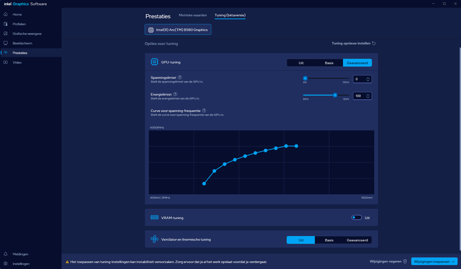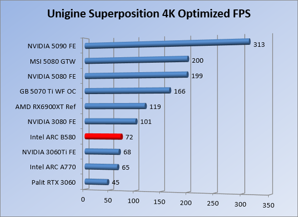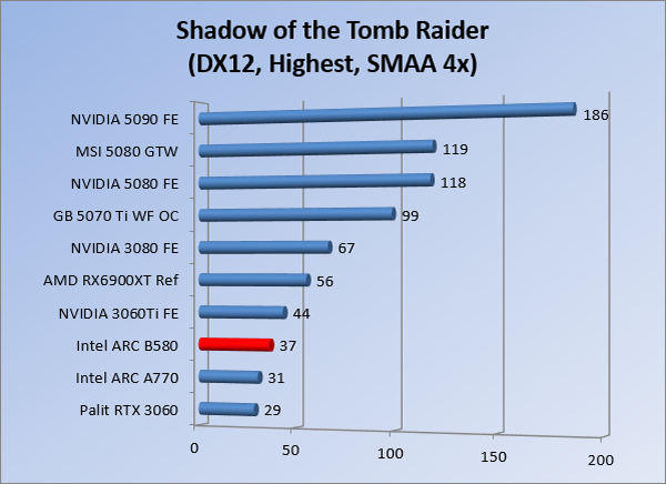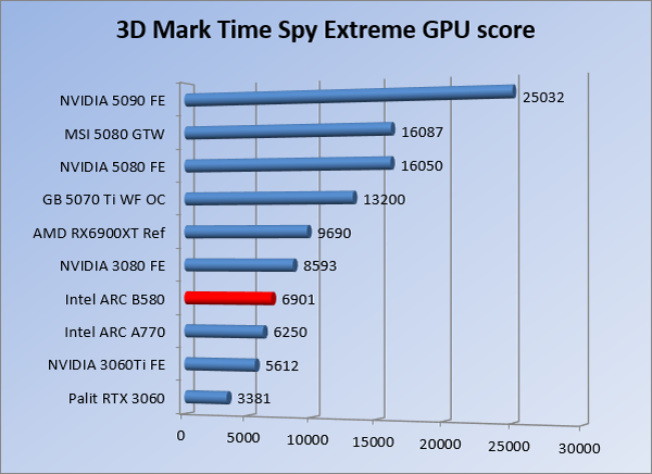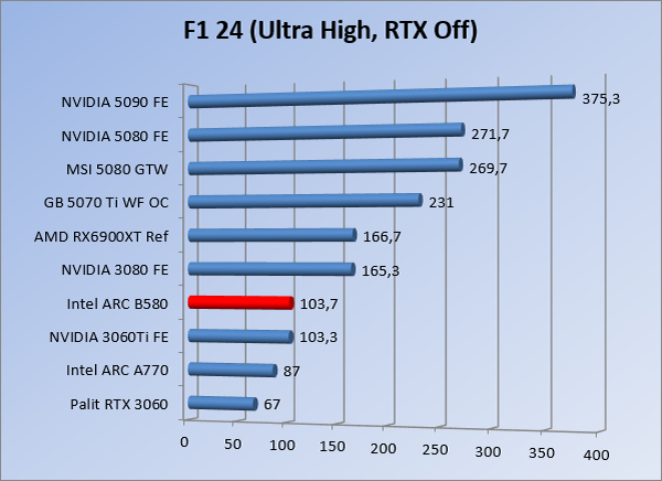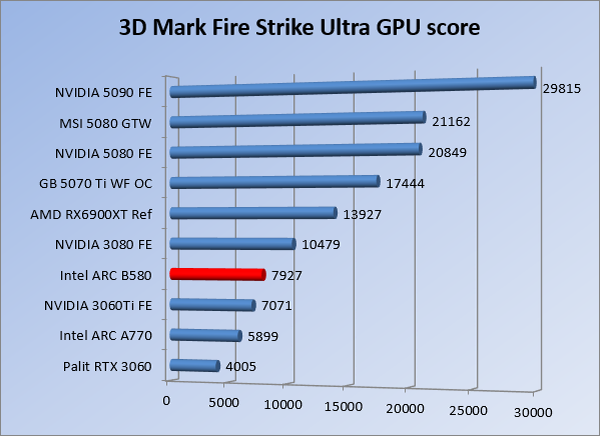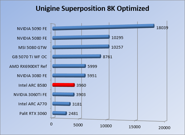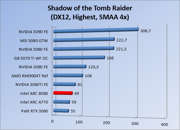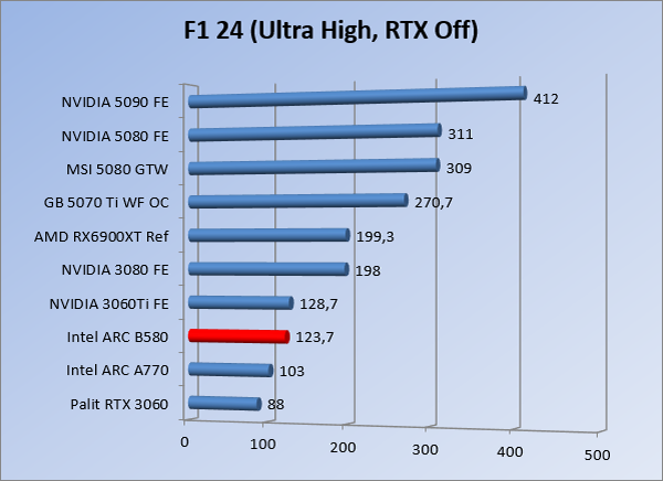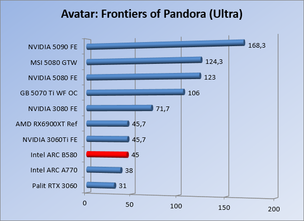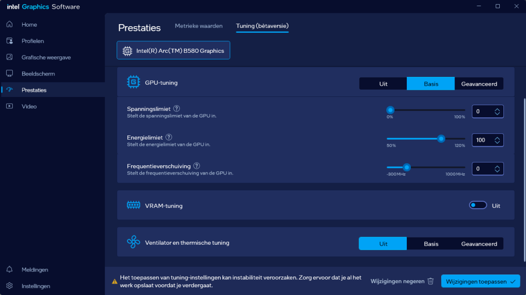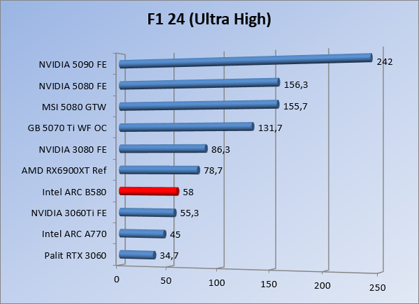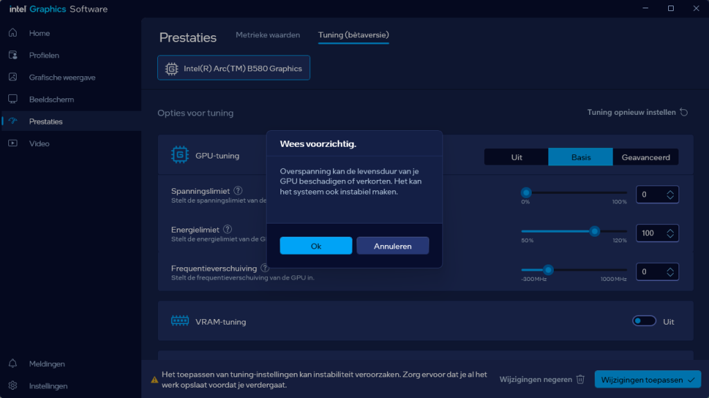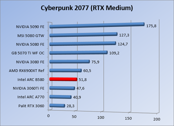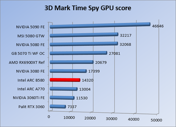 VideokaartenIntel Arc B580 Limited Edition review 17 november 20253 views0Share By Rooieduvel ShareIntel Arc B580 Limited Edition7.5De Intel Arc B580 is een waardige opvolger van de A770 kaart. De kaart is compact en oogt vrij simpel maar daarmee ook lekker strak, zonder enige vorm van verlichting. Omdat hij zo compact is kan hij makkelijk ingebouwd worden. Gamen op 1440p lukt over het algemeen prima maar 4K kun je niet verwachten van deze kaart. De kaart heeft maar één 8-pins PCIe connector nodig dus geen exotische aansluitingen. Dit werkt door op het verbruik van de kaart want hij is vrij zuinig, ten minste: tijdens het gebruiken van je machine. Het idle verbruik is namelijk vrij hoog. Overklokken heeft niet zoveel zin want veel winst valt er niet te behalen. Een leuke betaalbare kaart die wel concurrentie heeft van de tweedehands markt.TopStrak uiterlijkPrima prijs/kwaliteit1440p gamen is goed te doen op een uitzondering naLaag standaard verbruikSlechts 1 8-pins PCIe connector nodigVrij stilFlopFans draaien in IdleSoftware kan wel wat beterIdle verbruik ligt nog steeds hoog4K gamen is te hoog gegrepen voor deze kaartConcurrentie van een twee generaties oudere 3070 voor dezelfde prijsOverklokken lijkt nauwelijks effect te hebbenVoor ik deze review begin wil ik aangeven dat deze kaart door mijzelf is gekocht bij Caseking en dus compleet niet gesponsord is door Intel of welk bedrijf dan ook.De strijd in de wereld van de videokaarten gaat onverminderd door. Meestal als je aan videokaarten denkt dan heb je het over de strijd tussen NVIDIA en AMD. Natuurlijk zijn er wel bedrijven die soms proberen er tussen te komen maar dat gaat niet echt. En natuurlijk heb je ook GPU chips zitten op de processoren van AMD, Intel en ARM maar die zijn meestal niet goed genoeg om de nieuwste games op hogere resoluties te kunnen verwerken. Daar is gewoon de ruimte en de kracht niet voor aanwezig. Dit is wel handig om te hebben als je een machine moet troubleshooten of gewoon niet zoveel rekenkracht nodig hebt en niets meer wilt dan een beeld tonen.In 2022 heeft Intel echter besloten zelf losse videokaarten te gaan maken voor desktops en laptops. Voor laptops was er de Arc-A serie die gelanceerd werd op 30 maart 2022. De desktop kaarten moesten wat langer op zich laten wachten en deze kwamen uiteindelijk uit in het tweede en derde kwartaal van 2022. Deze lancering was wellicht niet de beste uit de geschiedenis maar de kaarten wisten zeker goede prestaties neer te zetten voor een eerste poging. Na deze release is het eind 2024 de beurt aan de opvolger van de Alchemist kaarten: de Battlemage reeks. Dit zit uiteraard ook in de naam aangezien de namen van de kaarten beginnen met een B. Deze kaarten maken gebruik van de 2e generatie Xe architectuur en zouden volgens Intel een 70% betere performance hebben en 50% meer performance per Watt dan de vorige generatie.In December 2024 kwam Intel met de Arc B570 en de B580 kaarten op de markt die ook gemaakt worden door een paar partners. In deze review gaan we het echter hebben over de B580 “Limited Edition” van Intel zelf. De kaart moet rond de €300,= kosten bij verschillende winkels en is daarmee een redelijke prijs voor een videokaart. Soms is hij echter ook te krijgen voor €250,-. Nu is uiteraard de vraag: wat krijgen we voor dit geld, zijn de prestaties in orde en is de kaart zuinig of niet? Daar gaan we achter komen in deze review.SpecificatiesUnboxingPrestatiesSynthetische benchmarksFull HD1440p4K resolutieSoftwareTemperaturen en verbruikOverclockingConclusieTerug naar bovenVoordat we de kaart gaan bekijken pakken we eerst de theorie er eens bij.We zien een hele lijst met allerlei informatie, afkomstig van de pagina van Intel. Laten we een paar dingen eruit pakken. De codenaam van de Arc B580 is Battlemage waar de vorige generatie nog Alchemist heette. De architectuur die Intel gebruikt heeft zal niemand verbazen: dit is de Xe2 versie wat een doorontwikkeling is van de Xe architectuur, gebruikt op de A kaarten. Hierbij is de chip efficiënter en worden de taken beter verdeeld. Het procedé is ook verkleind namelijk naar 5nm. De GPU bestaat voor de B580 kaart uit 20 Xe cores die in totaal 160 XMX engines bevatten, hetzelfde aantal Vector Engines en 20 Ray Tracing units. De kaart is geklokt op 2670 MHz en de snelheid van het geheugen zit op 19 Gbit/s wat sneller is dan het geheugen op een A770. Snelheid zegt echter niet alles. Uiteraard ondersteunt ook deze kaart de laatste technieken inclusief het Encoding/Decoing van H.264, H.265, AV1 en VP9. Qua aansluitingen hebben we één HDMI 2.1 poort en drie Displaypoort 2.1 poorten dus ook dit is bij de tijd. Het aparte is wel dat de kaart gebruikt maakt van een PCIe 4.0 x8 poort dus niet de nieuwste specificatie en niet de volledige bandbreedte. Ook apart om te zien is dat de kaart slechts één 8-pins PCIe connector nodig heeft om te kunnen werken. Het stroomverbruik zal dus niet al te hoog liggen, vooral omdat er een voeding van 600 Watt wordt aangeraden.Wil je meer informatie, kijk dan op de internetpagina van Intel.Terug naar bovenGenoeg theorie, tijd om de doos er eens bij te pakken en alles goed te gaan bekijken.In plaats van een blauwe doos zien we bij deze levering een bruine doos. Dit is anders dan we gewend zijn bij de producten van Intel. We zien wel een kleine opening met daar doorheen wat informatie over de kaart, de productcodes, barcodes en het serienummer. Deze laatste is om redenen uitgegumd. Gaan we de bruine doos openmaken dan zien we wel de bekende blauwe doos tevoorschijn komen. Net als bij de Alchemist kaarten staat hier duidelijk vermeld dat het om een Intel ARC kaart gaat. Ook staat het type vermeld. Aan de achterkant zien we een paar features terwijl op de onderkant van de doos de specificaties gedrukt staan. Bovenop zit een strip die je moet lostrekken om de doos open te maken.Is deze strip losgetrokken dan kan de binnenkant netjes uit de blauwe doos geschoven worden. Daar treffen we een
