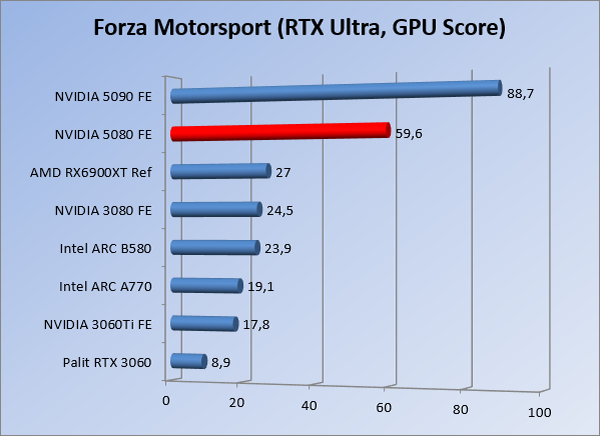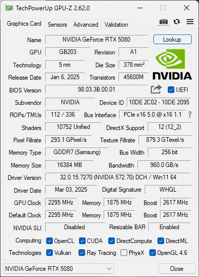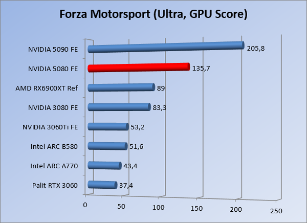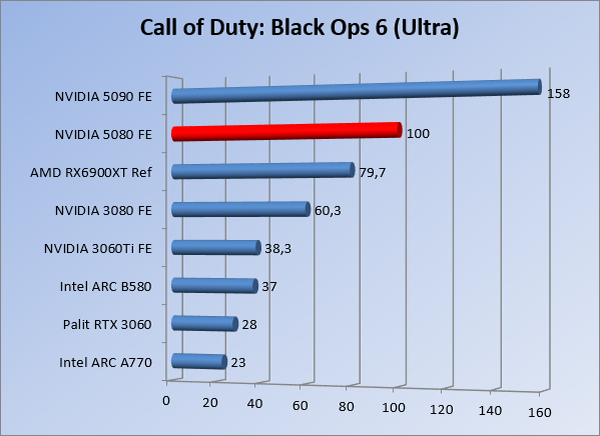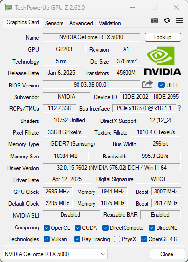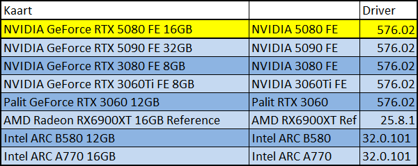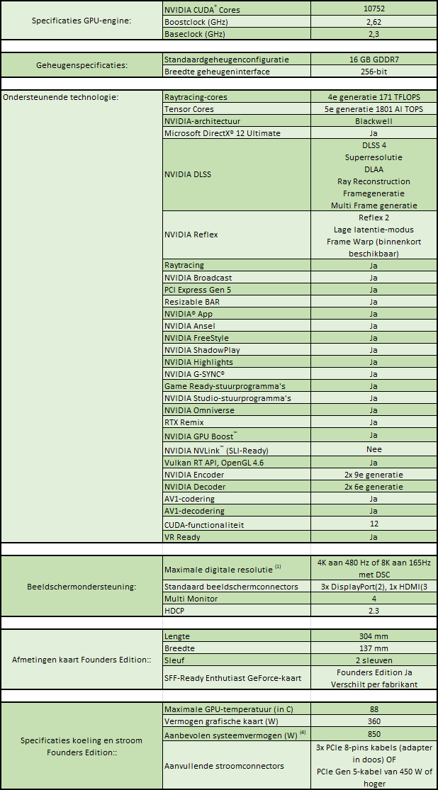 VideokaartenNvidia GeForce RTX 5080 Founders Edition review 3 september 2025243 views0Share By Rooieduvel ShareNvidia GeForce RTX 5080 Founders Edition9.1De Nvidia RTX 5080 is het kleine broertje van de RTX 5090 en dat merk je aan de specificaties. Deze laten zien dat de kaart de helft van de cores bevat en de helft van het geheugen maar dat betekent gelukkig niet de helft van de prestaties. Deze zijn aardig goed met minimaal 60 FPS op 4K gamen. Deze kaart ziet er behoorlijk strak uit en is maar 2 slots breed dus makkelijk in te bouwen. De temperaturen zitten tussen de 63 en 76 graden wat redelijk netjes te noemen is. Groot pluspunt is dat de kaart goed over te klokken is met een winst van 10%. Helaas is de kaart lastig te krijgen en moet je er toch > €1000,- voor neertellen. Wel een kaart die zeker het overwegen waard is.TopBeetje verlichting voor de sfeerHele goede overklokkerUiterlijk is lekker strakBlijft vrij stil tijdens het gamen2-slot kaartFlopVerlichting niet uit te zettenPrijs ligt boven de €1000,-VerkrijgbaarheidEr zijn goedkopere opties voor Full HD gaming (esports uitgezonderd)Voordat ik deze review begin: ik heb deze kaart zelf aangeschaft via de site van Nvidia en Proshop, de enige plek waar deze kaarten voor Nederland te koop zijn. Mocht er iemand aan twijfelen, dan is een kopie van de factuur beschikbaar. De kaart is inmiddels al naar een nieuwe eigenaar voor de aanschafprijs.We hebben er ondertussen meer dan 2.5 jaar op moeten wachten maar eindelijk was het zover: op CES 2025 werden de Blackwell kaarten getoond aan het publiek en dit zou een revolutie moeten betekenen in de wereld van de videokaarten. Ze zouden veel sneller moeten worden dan hun voorgangers (wat ook bij elke release wordt gezegd). De kaarten waren al iets uitgesteld maar de presentatie loog er niet om. Daar werd zelfs geclaimd dat de RTX 5070Ti dezelfde prestaties zou neerzetten als een 4090, iets wat resultaten uit het verleden tegenspreken maar goed: marketing praatjes horen nu eenmaal bij een lancering als deze.Na bekendmaking van de kaarten wisten we ook wanneer ze uit zouden komen: Donderdag 30 Januari 2025 om 15.00 zouden de kaarten de verkoop in gaan. Hoe dichter we bij de releasedatum kwamen, hoe meer berichten er naar buiten kwamen dat de kaart amper te krijgen zou zijn. Uiteindelijk bleken de berichten te kloppen en zijn de 5090 en 5080 kaarten amper te krijgen. Sterker nog: webwinkels hadden amper kaarten in de lijsten staan en de kaarten die te koop waren, waren binnen no-time uitverkocht tegen veel hogere prijzen dan ze officieel zouden moeten kosten. Wellicht dat er een paar kaarten waren die tegen MSRP verkocht zijn maar veel zijn dit er nooit geweest.Naast de kaarten die door de verschillende fabrikanten gemaakt worden heeft Nvidia ook een eigen variant van de RTX 5080. Het grootste probleem is dat deze kaart maar op één plek te koop is voor Nederland. Dit is via de marketplace pagina van Nvidia die je naar een Duitse webwinkel stuurt. Daar is een verborgen pagina waar de kaart af te rekenen is. De kaart had een introductieprijs van €1189,- wat een smak geld is. Dit is echter minder dan wat een 4080 bij lancering moest kosten. Ondertussen is de prijs al wat gedaald en is de kaart (met een beetje geluk) te koop voor €1099,-. Maar wat krijg je nu precies met de aanschaf van deze kaart? We gaan het zien in deze review.ArchitectuurSpecificatiesUnboxingPrestatiesSynthetische benchmarksFull HD1440p4K resolutieSoftwareTemperaturen en verbruikOverclockingConclusieLaten we eerst eens kijken wat Blackwell eigenlijk brengt.De Blackwell chip is eigenlijk een doorontwikkeling van de Ada Lovelace chip. Beiden zijn op het 4nm procedé gemaakt, al is Nvidia daar niet helemaal duidelijk over. De nieuwe chip heeft echter een oppervlak van 750mm2 terwijl de AD102 een oppervlak van 608,5mm2 had. Dit alles betekent dat er minder chips uit een wafer gehaald kunnen worden. Ook bevat de GB202 meer transistors waardoor er meer stroom nodig is om de chip aan de praat te krijgen. De chip is voorzien van de 5e generatie Tensor Cores en de 4e generatie RT cores, ieder met hun eigen verbeteringen. Ook is de indeling van een Streaming Multiprocessor weer anders en hebben we de beschikking over DLSS4. Tevens hebben we ondersteuning voor GDDR7. Als laatste werkt de kaart op PCIe Gen 5, al zal de videokaart niet de complete bandbreedte gebruiken.Hierboven zien we de opbouw van een complete GB202 chip, dezelfde chip waar de RTX 5090 gebruik van maakt. Er zijn maximaal 12 GPC’s (Graphics Processing Clusters) beschikbaar en één GPC beschikt weer over een Raster Engine, 8 TPCs, 16 SMs, en 16 ROPs. Als we alles bij elkaar optellen dan komen we uit op een totaal van 192 SM’s. Deze zorgen dat er maximaal 24576 Cuda Cores, 768 Tensor Cores en 192 RT cores beschikbaar zijn. De RTX 5090 maakt echter gebruik van maar 170 SM’s waardoor de aantallen zakken naar 21760, 680 en 170. Ook zijn er 176 ROPS aanwezig op de kaart, deze zijn dus niet geheel gekoppeld aan de SM clusters. Wie weet komt er ooit nog een kaart die alle registers open trekt.Één van de belangrijkste features van de Blackwel generatie is DLSS4 en dan met name de Frame Generation. Uiteraard zijn alle voorgaande technieken ook beschikbaar op de Blackwell kaarten maar dit laatste moet zorgen voor een veel hogere framerate. Veel mensen noemen dit ook wel het valsspelen van een videokaart of het voorspellen wat het volgende beeld gaat zijn in de reeks. Waar de vorige generatie maar één beeld kon voorspellen kan DLSS4 maar liefst drie beelden genereren. Hoe goed dit werkt en hoe nauwkeurig het eindresultaat is valt uiteraard te bezien. De mogelijkheid is echter aanwezig.Mocht je meer willen lezen over Blackwell dan verwijs ik je graag naar de pagina van NvidiaTerug naar bovenHoe leuk het ook zou zijn om nu de kaart te bewonderen hebben we eerst nog meer theorie. Tijd om te kijken naar de specificaties van de RTX 5080.De RTX 5080 is voorzien van de GB20