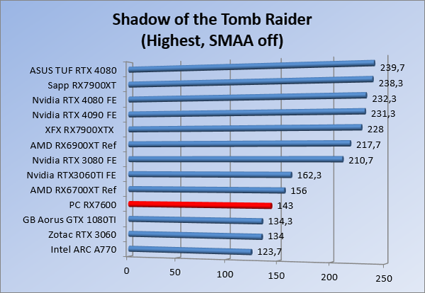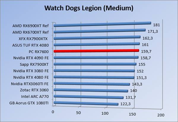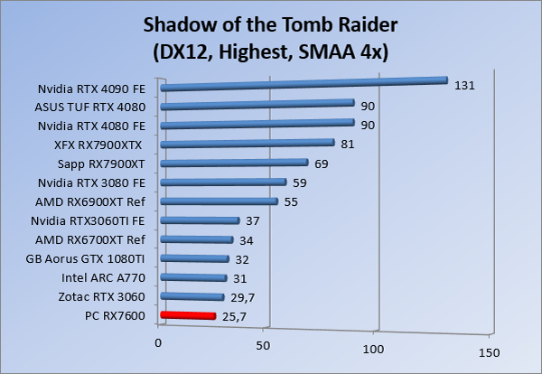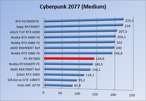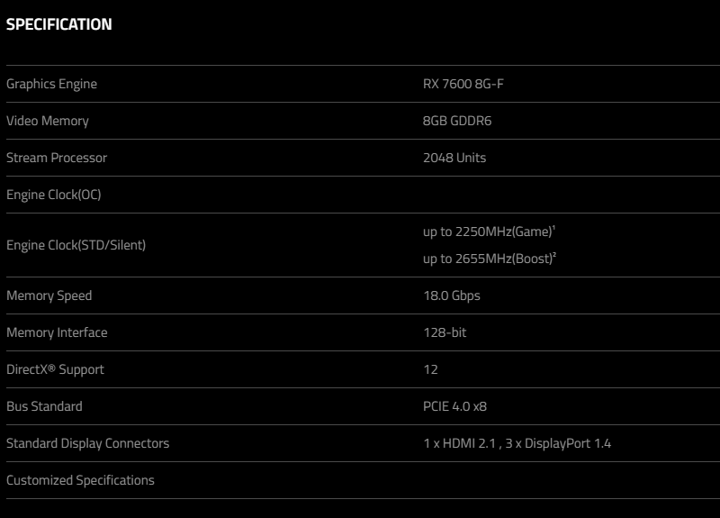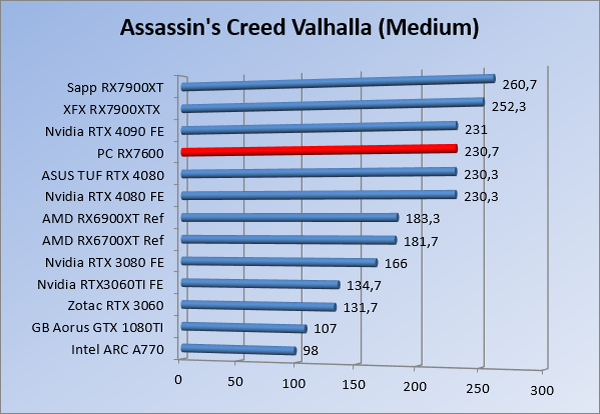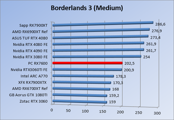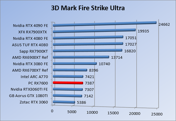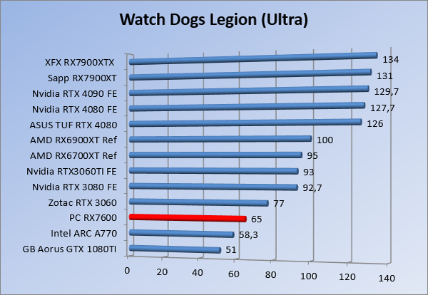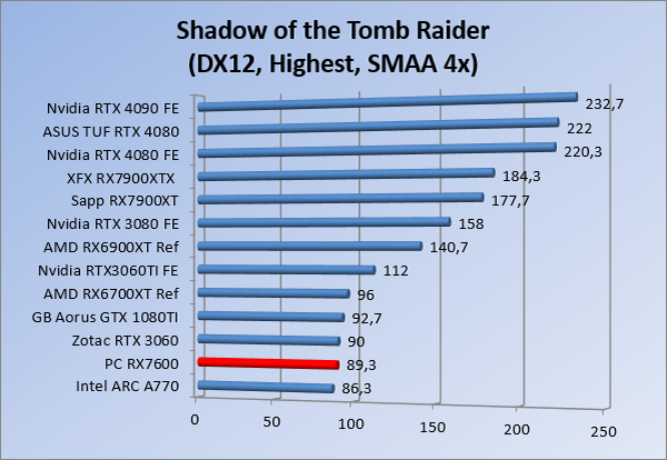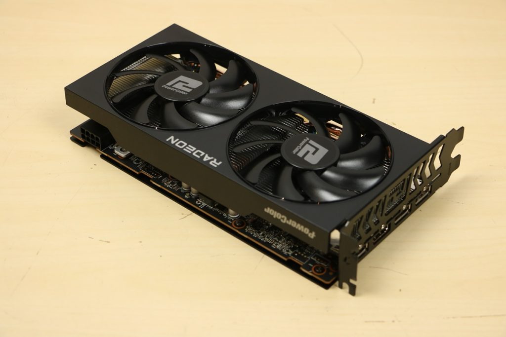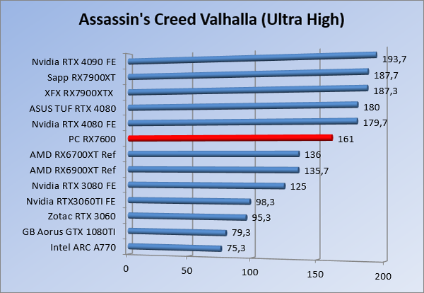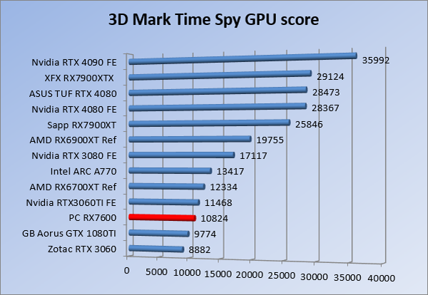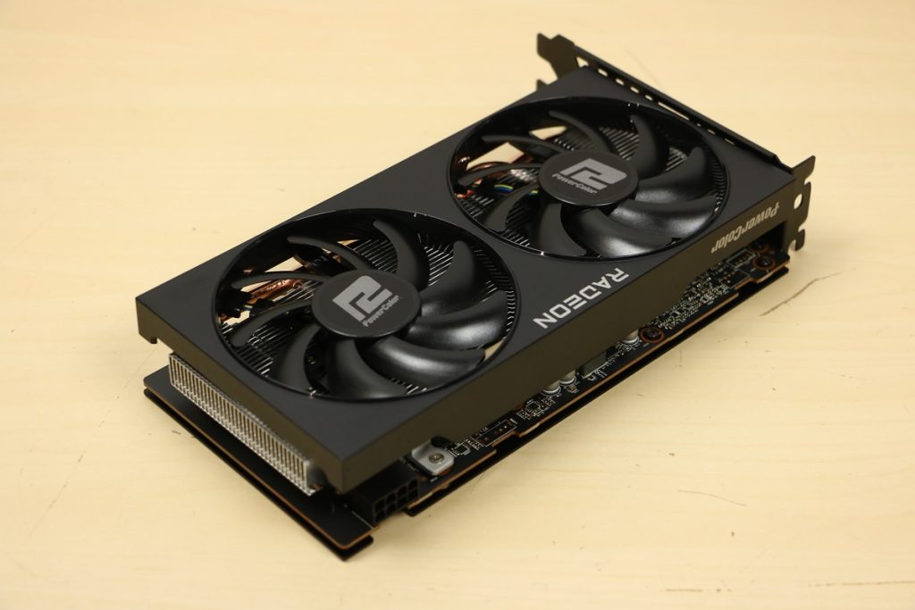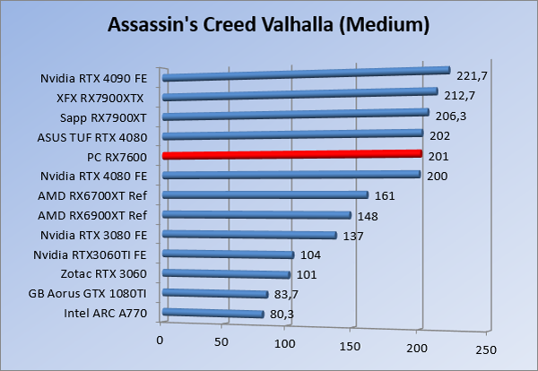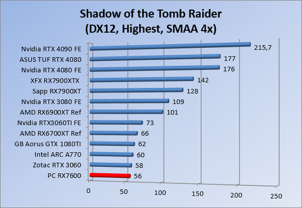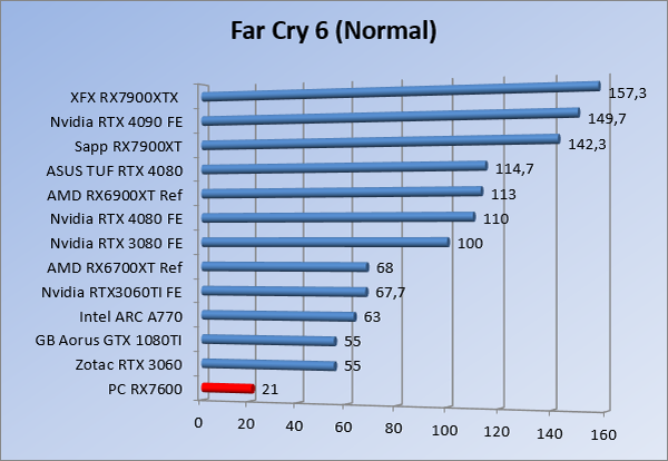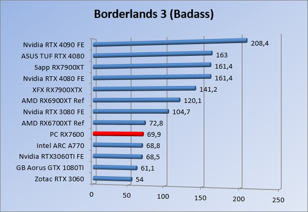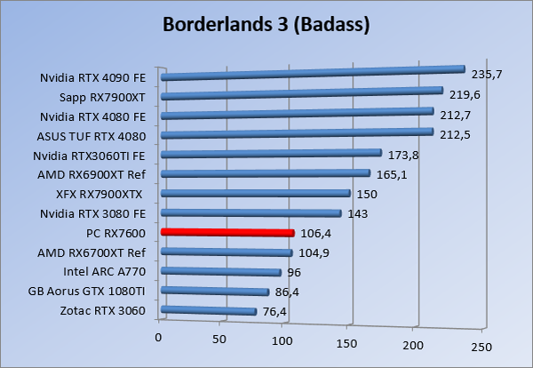 Videokaarten Powercolor Fighter AMD Radeon RX 7600 8GB review 27 maart 20241832 views0 Share By Rooieduvel Share Powercolor Fighter AMD Radeon RX 7600 8GB7.8De Powercolor AMD Radeon RX 7600 is een leuke compacte kaart om te gebruiken voor het gamen op 1080p. De geteste spellen lopen allemaal soepel en Raytracing is hier op zich ook mogelijk. 1440p komt ook nog aardig uit de verf al beginnen de prestaties iets in te storten. 4K is niet het domein van deze kaart. De kaart zelf ziet er basic uit zonder RGB maar dit hoeft geen minpunt te zijn. De kaart is vrij zuinig en vereist geen aparte connectoren dan de gewone 8-pins PCIe variant. De kaart kan overgeklokt worden maar dit gaat wel ten koste van de geluidsproductie. De temperatuur van de kaart is vrij hoog maar kan met een undervolt verholpen worden. Wel kan 8GB videogeheugen in de toekomst een probleem zijn. Al met al een leuke kaart voor een basic gaming systeem.TopVrij kleine kaart1080p prima speelbaar, 1440p vaak ook nogZuinigOverklokbaarEnkele 8-pins PCIe connector nodigFlop4K is een vaak een no-goGeen RGBIdle temperatuur is behoorlijk hoog8GB videogeheugen kan problemen geven in de toekomst Voordat ik begin met deze review: de kaart is gekocht voor een pc project van een klant. Die wilde dat de kaart getest werd voor deze ingebouwd zou worden. Besloten is er meteen een review van te maken. De klant is inmiddels blij met zijn complete pc. Half December 2022 was het dan eindelijk zo ver. Na het geweld van NVIDIA met de release van de 4000 reeks kwam AMD dan met de langverwachte opvolger van de 6000 serie namelijk de 7000 series videokaarten. Ook deze kaarten zijn gebaseerd op de RDNA architectuur die niet geheel verrassend RDNA3 heet. De opbouw van deze chips was echter anders dan wat men gewend was. Dit is namelijk het eerste ontwerp gebaseerd op chiplets, daar later meer over. De GPU’s hebben, ook zoals vorige keer, de Navi naam meegekregen. Hoe lager het nummer, hoe beter de chip. De release van de kaarten was niet zo verwarrend als de lancering van de kaarten van het groene kamp, echter worden er wel verschillende versies gebruikt onder hetzelfde nummer. Zo is er op het moment van schrijven een 7600 en 7600XT, maar hetzelfde geldt voor de 7900 reeks: daar hebben we de 7900XT en 7900XTX. Laatstgenoemde is de grotere broer van de XT kaart wat ook wel te zien is aan de opbouw van de GPU, het verbruik en de snelheden. Nu ligt over het algemeen de focus in gaming land op de high-end kaarten maar niet iedereen hoeft perse de beste kaart te hebben in zijn of haar gaming pc. Gelukkig zijn er tegenwoordig meerdere opties te krijgen die wat vriendelijker zijn voor je portemonnee. Zo ook de kaart die we hier vandaag bespreken, de Powercolor Fighter AMD Radeon RX 7600 8GB. Dit is een behoorlijke titel als je het mij vraagt. Het kaartje is niet al te groot maar de grootte hoeft niet alles te zeggen. De kaart kost op het moment van schrijven ongeveer €290,-. Maar wat ga je krijgen voor deze kaart, doet de kaart het beter dan de 6700XT van de vorige generatie en waar staat deze kaart ten opzichte van NVIDIA? Dat gaan we lezen in deze review. Architectuur Specificaties Unboxing Prestaties Synthetische benchmarks Full HD 1440P 4K resolutie Software Temperaturen en verbruik Overclocking Conclusie Voor we gaan kijken wat we voor kaart in huis hebben gaan we eerst even praten over de architectuur en de opbouw van de GPU. De GPU is gebaseerd op de RDNA architectuur wat aangekomen is bij versie 3. Dit is niets meer dan de Radeon DNA naam. De afgelopen generaties hebben we al de nodige verbeteringen gezien maar met de nieuwste versie is de GPU helemaal opnieuw opgebouwd. Zo wordt er in deze generatie gebruik gemaakt van chiplets. In plaats van één chip worden er meerdere kleinere chips geplaatst, ieder met een eigen functie. Deze zijn onderling verbonden via een hele snelle verbinding zodat er van vertraging geen sprake is. De workloads worden door de verschillende chips zeer snel afgehandeld en data snel over en weer verzonden tussen de GCD en het geheugen. Het grote voordeel hiervan is dat het goedkoper is om meerdere kleine chips te maken dan weinig grote chips. Mocht er een grote chip defect gaan dan schrijf je meer af dan wanneer er 2 kleinere chips kapot gaan. Daardoor kunnen de productiekosten wat lager blijven en dit is weer gunstig voor alle partijen. De GPU is weer opgebouwd uit verschillende CU’s oftewel Compute Units. Dit is een cluster van componenten die met elkaar samen werken. Het resultaat wordt vervolgens weer gebruikt om het beeld weer te geven. AMD laat niet echt zien hoe een CU opgebouwd is terwijl we dit wel kunnen zien bij het groene kamp. Men claimt met de nieuwe generatie in ieder geval forse winsten in AI en Raytracing, iets waar AMD toch wat op achter loopt dan NVIDIA. Met RDNA3 introduceert AMD een nieuwe Display Engine genaamd Radiance Display Engine. Men heeft een Displaypoort 2.1 aansluiting op de kaart gemonteerd die maar liefst 54Gb/s aan bandbreedte kan leveren. Dit moet zorgen voor refresh rates van 165 Hz op 8K of 480 Hz op 4K zodat de kaart klaar is voor de toekomst. Ook is er ondersteuning voor 12-bit HDR content, wat moet zorgen voor een spetterend beeld. Voor content creators brengt de nieuwste generatie RDNA AV1 encoding en decoding. Een videokaart kan gebruikt worden voor het maken en verwerken van content zoals video’s en internet streams. AMD heeft met RDNA3 een gigantische sprong gemaakt om op een goedkope manier content te presenteren. Andere kaarten konden dit al maar AMD heeft hier hele grote sprongen mee gemaakt en doet nu mee met de rest van het speelveld. Meer info is terug te vinden op de pagina van AMD. Terug naar boven Voor we de kaart zelf gaan bekijken pakken we eerst de theorie er eens bij. Zoals we net al zagen is de RX 7600 geen grote kaart maar dat is ook niet altijd nodig. De kaart is maar 20 centimeter lang, 11 centimeter breed en 4 centimeter hoog. Met het bracket is de kaart ietsj