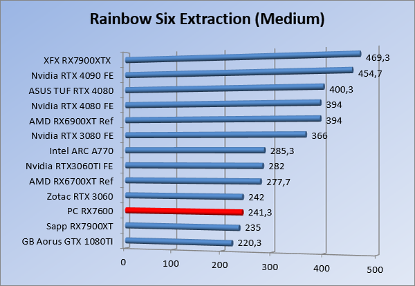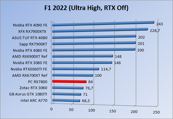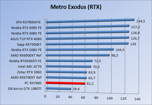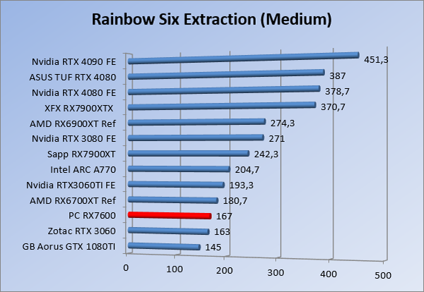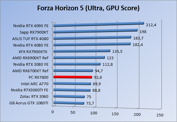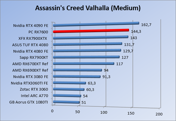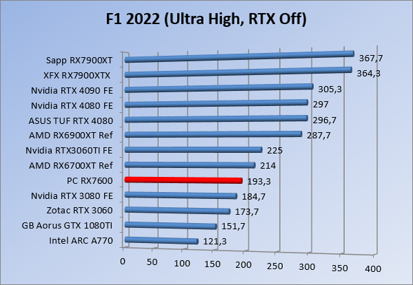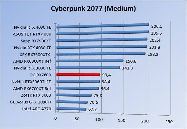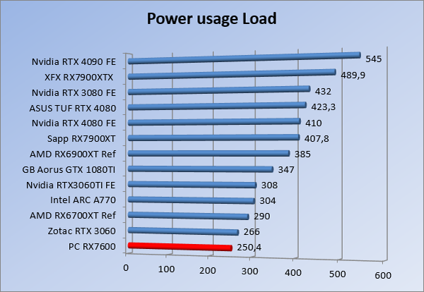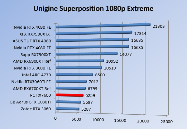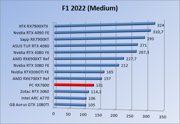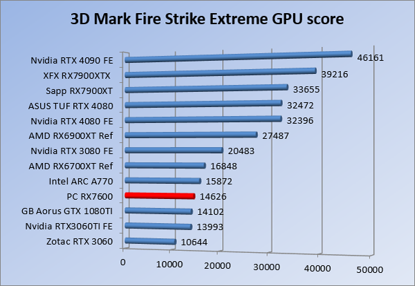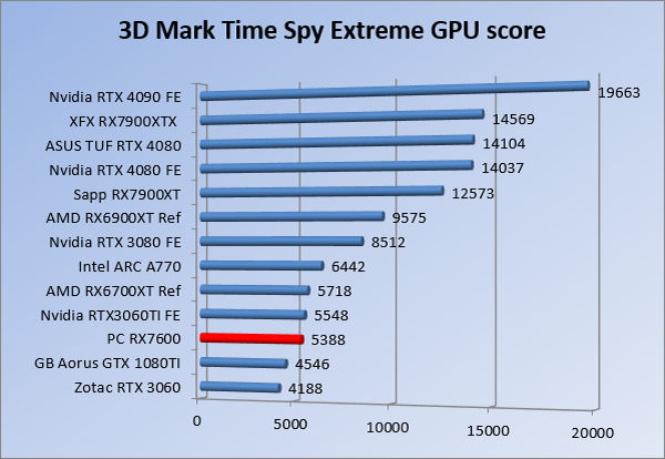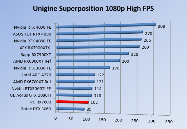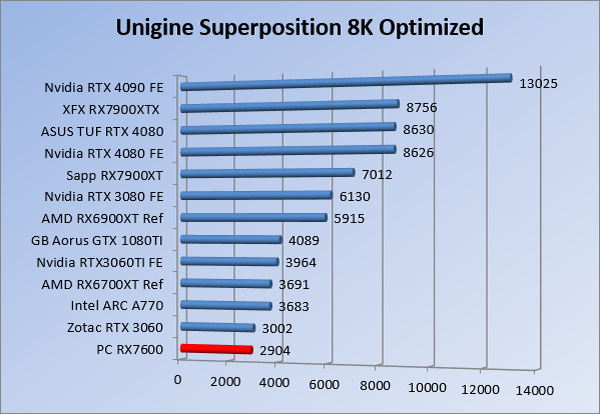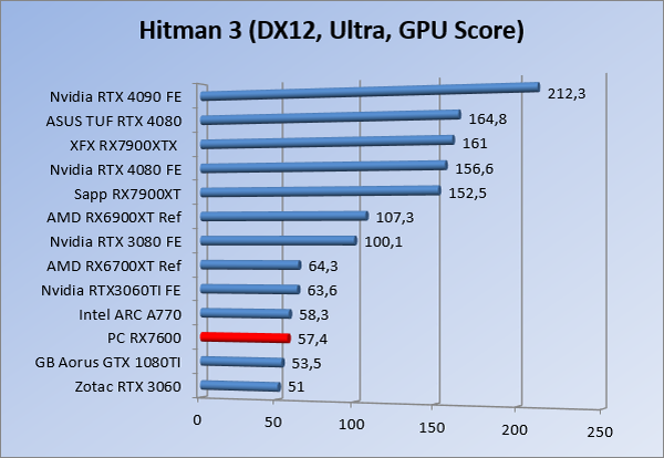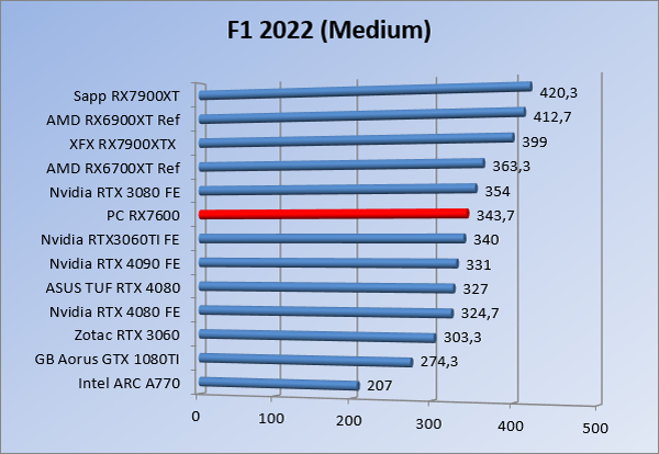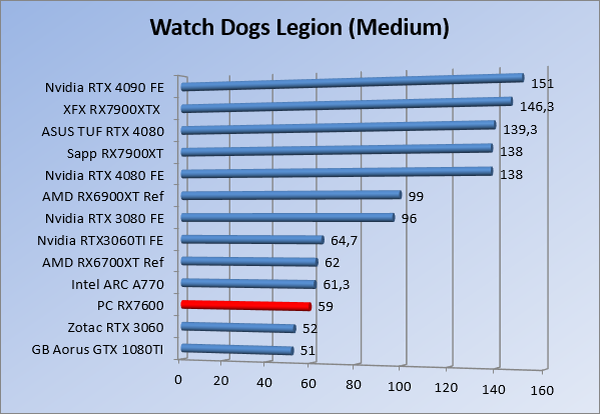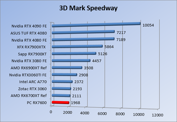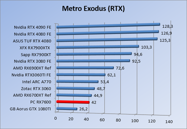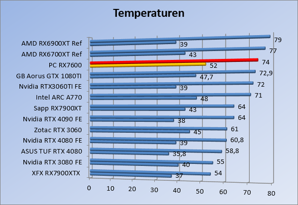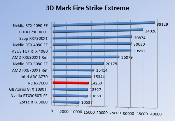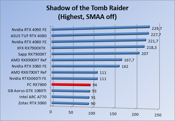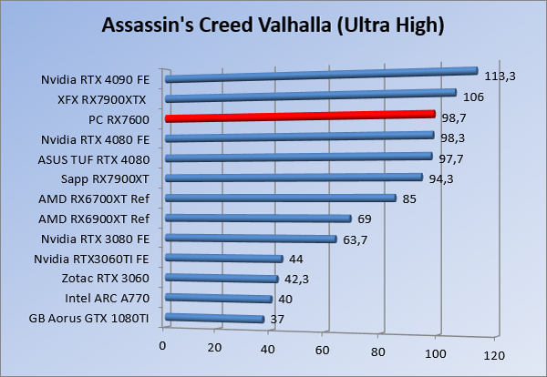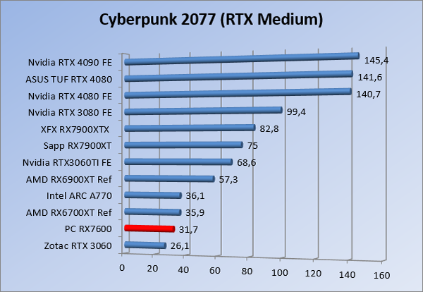 Videokaarten Powercolor Fighter AMD Radeon RX 7600 8GB review 27 maart 20241832 views0 Share By Rooieduvel Share Powercolor Fighter AMD Radeon RX 7600 8GB7.8De Powercolor AMD Radeon RX 7600 is een leuke compacte kaart om te gebruiken voor het gamen op 1080p. De geteste spellen lopen allemaal soepel en Raytracing is hier op zich ook mogelijk. 1440p komt ook nog aardig uit de verf al beginnen de prestaties iets in te storten. 4K is niet het domein van deze kaart. De kaart zelf ziet er basic uit zonder RGB maar dit hoeft geen minpunt te zijn. De kaart is vrij zuinig en vereist geen aparte connectoren dan de gewone 8-pins PCIe variant. De kaart kan overgeklokt worden maar dit gaat wel ten koste van de geluidsproductie. De temperatuur van de kaart is vrij hoog maar kan met een undervolt verholpen worden. Wel kan 8GB videogeheugen in de toekomst een probleem zijn. Al met al een leuke kaart voor een basic gaming systeem.TopVrij kleine kaart1080p prima speelbaar, 1440p vaak ook nogZuinigOverklokbaarEnkele 8-pins PCIe connector nodigFlop4K is een vaak een no-goGeen RGBIdle temperatuur is behoorlijk hoog8GB videogeheugen kan problemen geven in de toekomst Voordat ik begin met deze review: de kaart is gekocht voor een pc project van een klant. Die wilde dat de kaart getest werd voor deze ingebouwd zou worden. Besloten is er meteen een review van te maken. De klant is inmiddels blij met zijn complete pc. Half December 2022 was het dan eindelijk zo ver. Na het geweld van NVIDIA met de release van de 4000 reeks kwam AMD dan met de langverwachte opvolger van de 6000 serie namelijk de 7000 series videokaarten. Ook deze kaarten zijn gebaseerd op de RDNA architectuur die niet geheel verrassend RDNA3 heet. De opbouw van deze chips was echter anders dan wat men gewend was. Dit is namelijk het eerste ontwerp gebaseerd op chiplets, daar later meer over. De GPU’s hebben, ook zoals vorige keer, de Navi naam meegekregen. Hoe lager het nummer, hoe beter de chip. De release van de kaarten was niet zo verwarrend als de lancering van de kaarten van het groene kamp, echter worden er wel verschillende versies gebruikt onder hetzelfde nummer. Zo is er op het moment van schrijven een 7600 en 7600XT, maar hetzelfde geldt voor de 7900 reeks: daar hebben we de 7900XT en 7900XTX. Laatstgenoemde is de grotere broer van de XT kaart wat ook wel te zien is aan de opbouw van de GPU, het verbruik en de snelheden. Nu ligt over het algemeen de focus in gaming land op de high-end kaarten maar niet iedereen hoeft perse de beste kaart te hebben in zijn of haar gaming pc. Gelukkig zijn er tegenwoordig meerdere opties te krijgen die wat vriendelijker zijn voor je portemonnee. Zo ook de kaart die we hier vandaag bespreken, de Powercolor Fighter AMD Radeon RX 7600 8GB. Dit is een behoorlijke titel als je het mij vraagt. Het kaartje is niet al te groot maar de grootte hoeft niet alles te zeggen. De kaart kost op het moment van schrijven ongeveer €290,-. Maar wat ga je krijgen voor deze kaart, doet de kaart het beter dan de 6700XT van de vorige generatie en waar staat deze kaart ten opzichte van NVIDIA? Dat gaan we lezen in deze review. Architectuur Specificaties Unboxing Prestaties Synthetische benchmarks Full HD 1440P 4K resolutie Software Temperaturen en verbruik Overclocking Conclusie Voor we gaan kijken wat we voor kaart in huis hebben gaan we eerst even praten over de architectuur en de opbouw van de GPU. De GPU is gebaseerd op de RDNA architectuur wat aangekomen is bij versie 3. Dit is niets meer dan de Radeon DNA naam. De afgelopen generaties hebben we al de nodige verbeteringen gezien maar met de nieuwste versie is de GPU helemaal opnieuw opgebouwd. Zo wordt er in deze generatie gebruik gemaakt van chiplets. In plaats van één chip worden er meerdere kleinere chips geplaatst, ieder met een eigen functie. Deze zijn onderling verbonden via een hele snelle verbinding zodat er van vertraging geen sprake is. De workloads worden door de verschillende chips zeer snel afgehandeld en data snel over en weer verzonden tussen de GCD en het geheugen. Het grote voordeel hiervan is dat het goedkoper is om meerdere kleine chips te maken dan weinig grote chips. Mocht er een grote chip defect gaan dan schrijf je meer af dan wanneer er 2 kleinere chips kapot gaan. Daardoor kunnen de productiekosten wat lager blijven en dit is weer gunstig voor alle partijen. De GPU is weer opgebouwd uit verschillende CU’s oftewel Compute Units. Dit is een cluster van componenten die met elkaar samen werken. Het resultaat wordt vervolgens weer gebruikt om het beeld weer te geven. AMD laat niet echt zien hoe een CU opgebouwd is terwijl we dit wel kunnen zien bij het groene kamp. Men claimt met de nieuwe generatie in ieder geval forse winsten in AI en Raytracing, iets waar AMD toch wat op achter loopt dan NVIDIA. Met RDNA3 introduceert AMD een nieuwe Display Engine genaamd Radiance Display Engine. Men heeft een Displaypoort 2.1 aansluiting op de kaart gemonteerd die maar liefst 54Gb/s aan bandbreedte kan leveren. Dit moet zorgen voor refresh rates van 165 Hz op 8K of 480 Hz op 4K zodat de kaart klaar is voor de toekomst. Ook is er ondersteuning voor 12-bit HDR content, wat moet zorgen voor een spetterend beeld. Voor content creators brengt de nieuwste generatie RDNA AV1 encoding en decoding. Een videokaart kan gebruikt worden voor het maken en verwerken van content zoals video’s en internet streams. AMD heeft met RDNA3 een gigantische sprong gemaakt om op een goedkope manier content te presenteren. Andere kaarten konden dit al maar AMD heeft hier hele grote sprongen mee gemaakt en doet nu mee met de rest van het speelveld. Meer info is terug te vinden op de pagina van AMD. Terug naar boven Voor we de kaart zelf gaan bekijken pakken we eerst de theorie er eens bij. Zoals we net al zagen is de RX 7600 geen grote kaart maar dat is ook niet altijd nodig. De kaart is maar 20 centimeter lang, 11 centimeter breed en 4 centimeter hoog. Met het bracket is de kaart ietsj