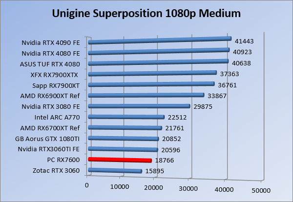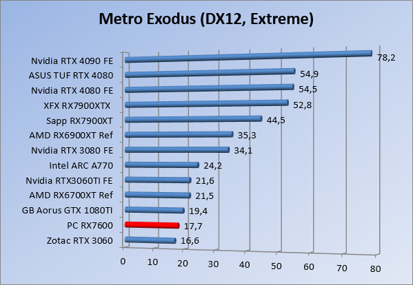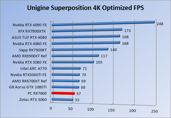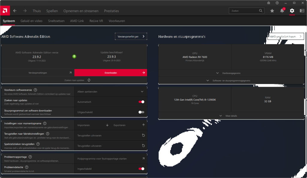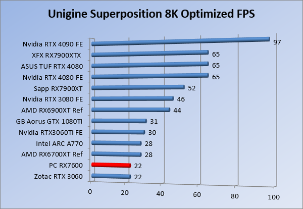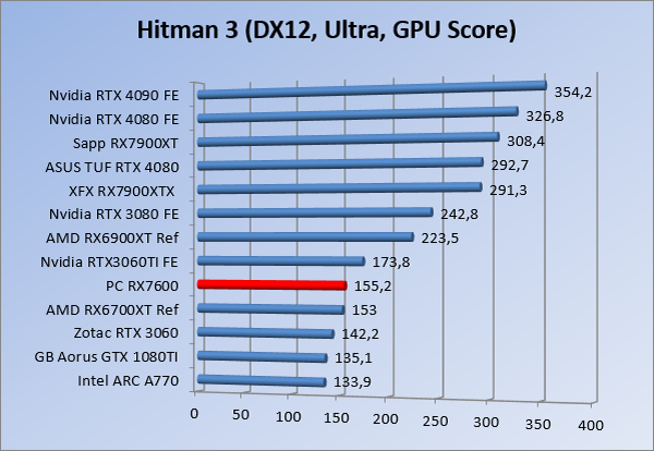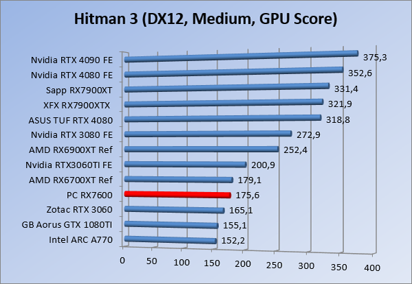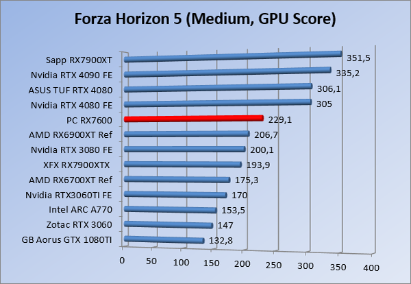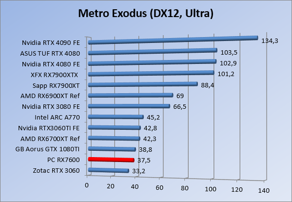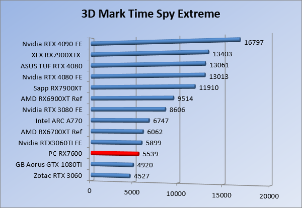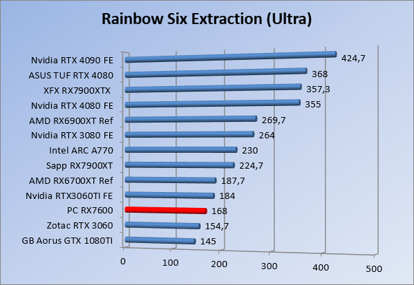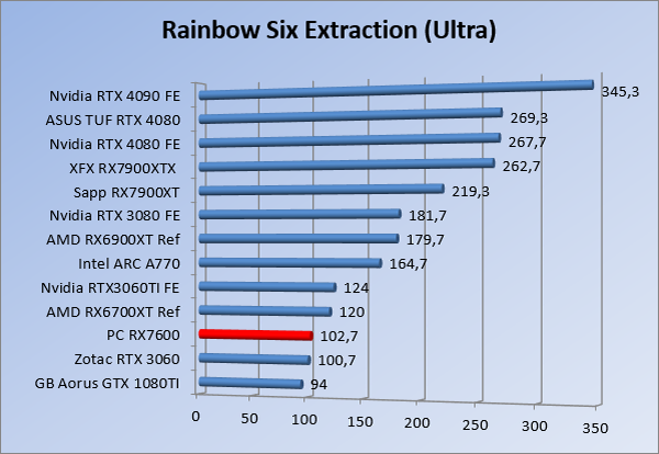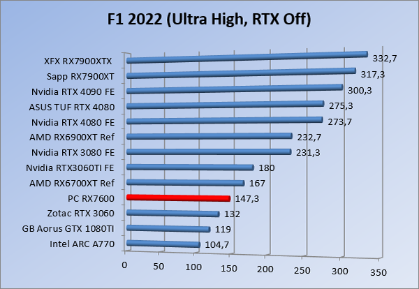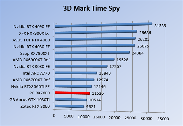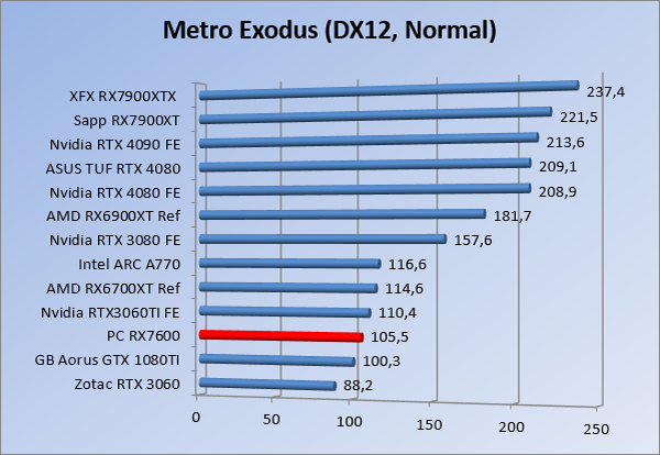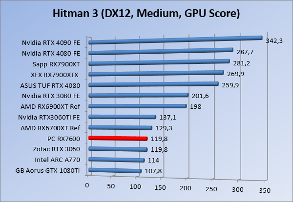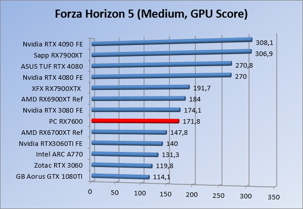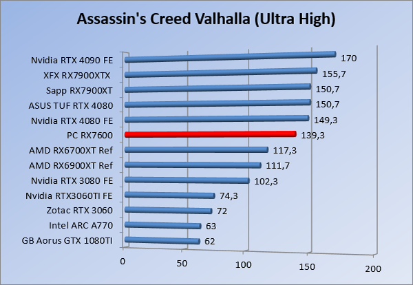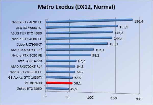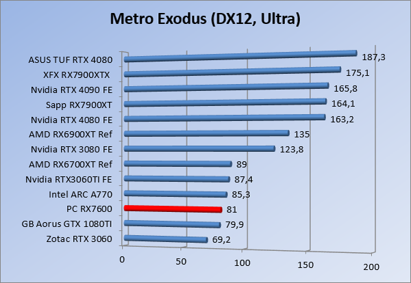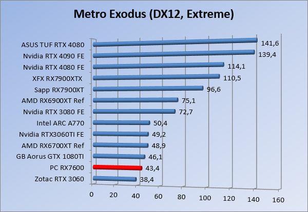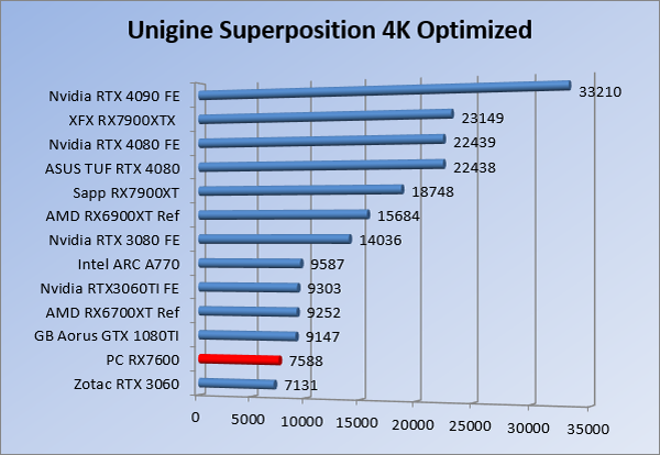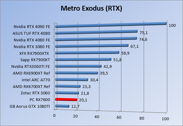 Videokaarten Powercolor Fighter AMD Radeon RX 7600 8GB review 27 maart 20241832 views0 Share By Rooieduvel Share Powercolor Fighter AMD Radeon RX 7600 8GB7.8De Powercolor AMD Radeon RX 7600 is een leuke compacte kaart om te gebruiken voor het gamen op 1080p. De geteste spellen lopen allemaal soepel en Raytracing is hier op zich ook mogelijk. 1440p komt ook nog aardig uit de verf al beginnen de prestaties iets in te storten. 4K is niet het domein van deze kaart. De kaart zelf ziet er basic uit zonder RGB maar dit hoeft geen minpunt te zijn. De kaart is vrij zuinig en vereist geen aparte connectoren dan de gewone 8-pins PCIe variant. De kaart kan overgeklokt worden maar dit gaat wel ten koste van de geluidsproductie. De temperatuur van de kaart is vrij hoog maar kan met een undervolt verholpen worden. Wel kan 8GB videogeheugen in de toekomst een probleem zijn. Al met al een leuke kaart voor een basic gaming systeem.TopVrij kleine kaart1080p prima speelbaar, 1440p vaak ook nogZuinigOverklokbaarEnkele 8-pins PCIe connector nodigFlop4K is een vaak een no-goGeen RGBIdle temperatuur is behoorlijk hoog8GB videogeheugen kan problemen geven in de toekomst Voordat ik begin met deze review: de kaart is gekocht voor een pc project van een klant. Die wilde dat de kaart getest werd voor deze ingebouwd zou worden. Besloten is er meteen een review van te maken. De klant is inmiddels blij met zijn complete pc. Half December 2022 was het dan eindelijk zo ver. Na het geweld van NVIDIA met de release van de 4000 reeks kwam AMD dan met de langverwachte opvolger van de 6000 serie namelijk de 7000 series videokaarten. Ook deze kaarten zijn gebaseerd op de RDNA architectuur die niet geheel verrassend RDNA3 heet. De opbouw van deze chips was echter anders dan wat men gewend was. Dit is namelijk het eerste ontwerp gebaseerd op chiplets, daar later meer over. De GPU’s hebben, ook zoals vorige keer, de Navi naam meegekregen. Hoe lager het nummer, hoe beter de chip. De release van de kaarten was niet zo verwarrend als de lancering van de kaarten van het groene kamp, echter worden er wel verschillende versies gebruikt onder hetzelfde nummer. Zo is er op het moment van schrijven een 7600 en 7600XT, maar hetzelfde geldt voor de 7900 reeks: daar hebben we de 7900XT en 7900XTX. Laatstgenoemde is de grotere broer van de XT kaart wat ook wel te zien is aan de opbouw van de GPU, het verbruik en de snelheden. Nu ligt over het algemeen de focus in gaming land op de high-end kaarten maar niet iedereen hoeft perse de beste kaart te hebben in zijn of haar gaming pc. Gelukkig zijn er tegenwoordig meerdere opties te krijgen die wat vriendelijker zijn voor je portemonnee. Zo ook de kaart die we hier vandaag bespreken, de Powercolor Fighter AMD Radeon RX 7600 8GB. Dit is een behoorlijke titel als je het mij vraagt. Het kaartje is niet al te groot maar de grootte hoeft niet alles te zeggen. De kaart kost op het moment van schrijven ongeveer €290,-. Maar wat ga je krijgen voor deze kaart, doet de kaart het beter dan de 6700XT van de vorige generatie en waar staat deze kaart ten opzichte van NVIDIA? Dat gaan we lezen in deze review. Architectuur Specificaties Unboxing Prestaties Synthetische benchmarks Full HD 1440P 4K resolutie Software Temperaturen en verbruik Overclocking Conclusie Voor we gaan kijken wat we voor kaart in huis hebben gaan we eerst even praten over de architectuur en de opbouw van de GPU. De GPU is gebaseerd op de RDNA architectuur wat aangekomen is bij versie 3. Dit is niets meer dan de Radeon DNA naam. De afgelopen generaties hebben we al de nodige verbeteringen gezien maar met de nieuwste versie is de GPU helemaal opnieuw opgebouwd. Zo wordt er in deze generatie gebruik gemaakt van chiplets. In plaats van één chip worden er meerdere kleinere chips geplaatst, ieder met een eigen functie. Deze zijn onderling verbonden via een hele snelle verbinding zodat er van vertraging geen sprake is. De workloads worden door de verschillende chips zeer snel afgehandeld en data snel over en weer verzonden tussen de GCD en het geheugen. Het grote voordeel hiervan is dat het goedkoper is om meerdere kleine chips te maken dan weinig grote chips. Mocht er een grote chip defect gaan dan schrijf je meer af dan wanneer er 2 kleinere chips kapot gaan. Daardoor kunnen de productiekosten wat lager blijven en dit is weer gunstig voor alle partijen. De GPU is weer opgebouwd uit verschillende CU’s oftewel Compute Units. Dit is een cluster van componenten die met elkaar samen werken. Het resultaat wordt vervolgens weer gebruikt om het beeld weer te geven. AMD laat niet echt zien hoe een CU opgebouwd is terwijl we dit wel kunnen zien bij het groene kamp. Men claimt met de nieuwe generatie in ieder geval forse winsten in AI en Raytracing, iets waar AMD toch wat op achter loopt dan NVIDIA. Met RDNA3 introduceert AMD een nieuwe Display Engine genaamd Radiance Display Engine. Men heeft een Displaypoort 2.1 aansluiting op de kaart gemonteerd die maar liefst 54Gb/s aan bandbreedte kan leveren. Dit moet zorgen voor refresh rates van 165 Hz op 8K of 480 Hz op 4K zodat de kaart klaar is voor de toekomst. Ook is er ondersteuning voor 12-bit HDR content, wat moet zorgen voor een spetterend beeld. Voor content creators brengt de nieuwste generatie RDNA AV1 encoding en decoding. Een videokaart kan gebruikt worden voor het maken en verwerken van content zoals video’s en internet streams. AMD heeft met RDNA3 een gigantische sprong gemaakt om op een goedkope manier content te presenteren. Andere kaarten konden dit al maar AMD heeft hier hele grote sprongen mee gemaakt en doet nu mee met de rest van het speelveld. Meer info is terug te vinden op de pagina van AMD. Terug naar boven Voor we de kaart zelf gaan bekijken pakken we eerst de theorie er eens bij. Zoals we net al zagen is de RX 7600 geen grote kaart maar dat is ook niet altijd nodig. De kaart is maar 20 centimeter lang, 11 centimeter breed en 4 centimeter hoog. Met het bracket is de kaart ietsj