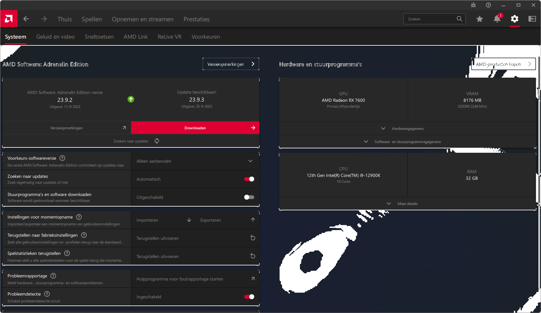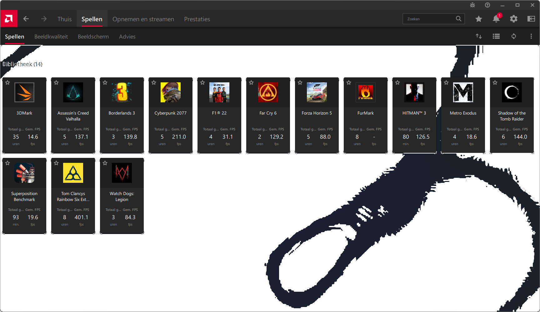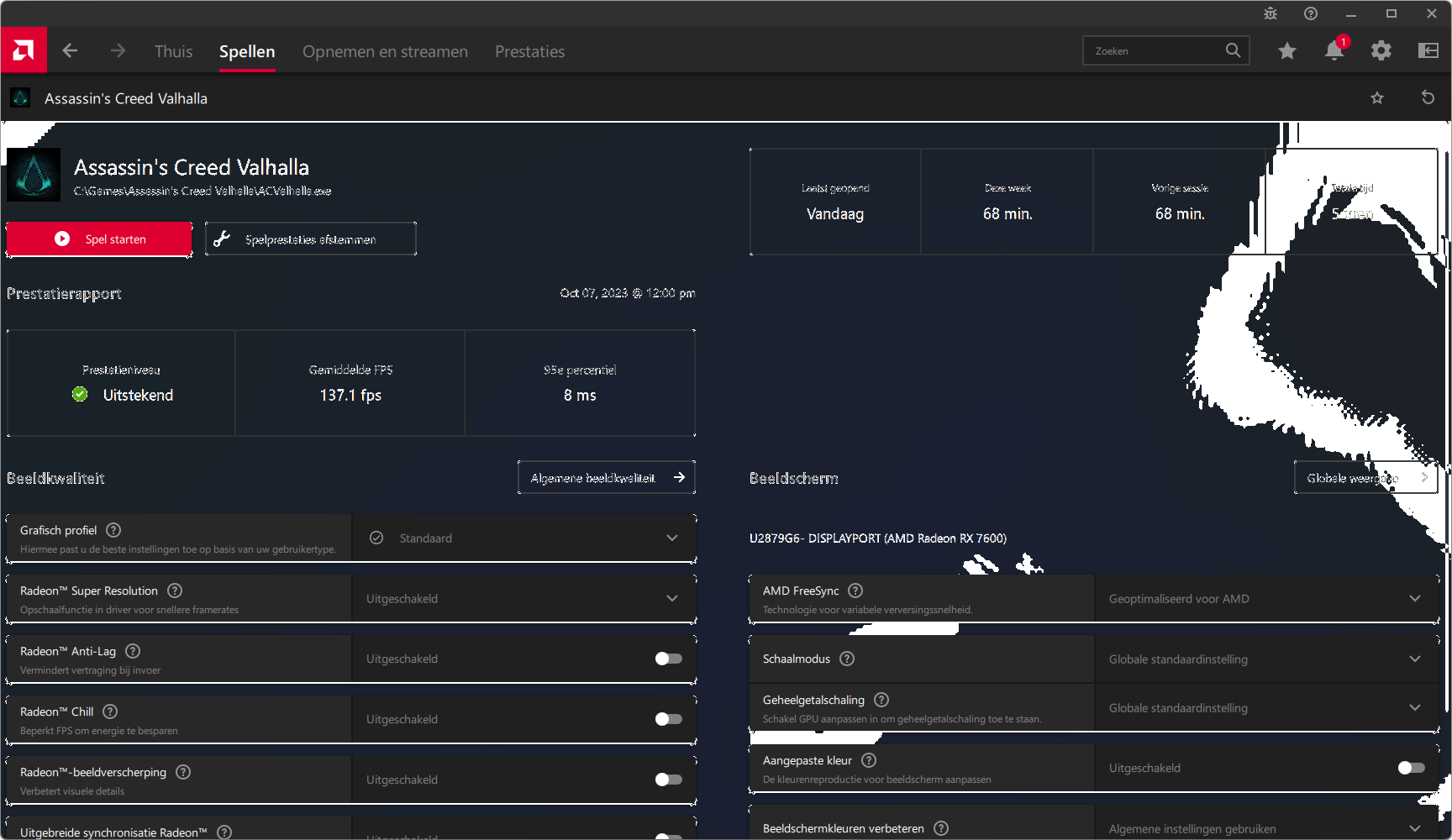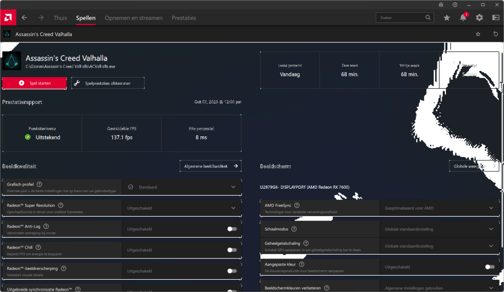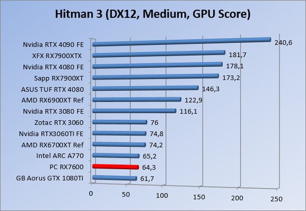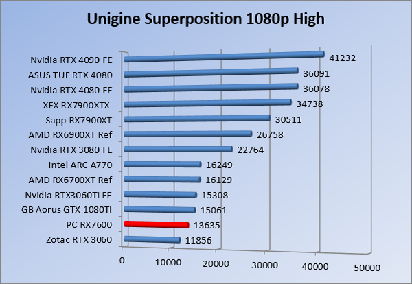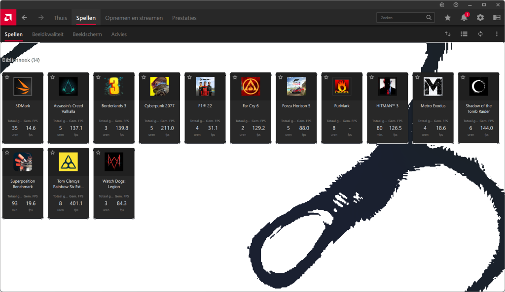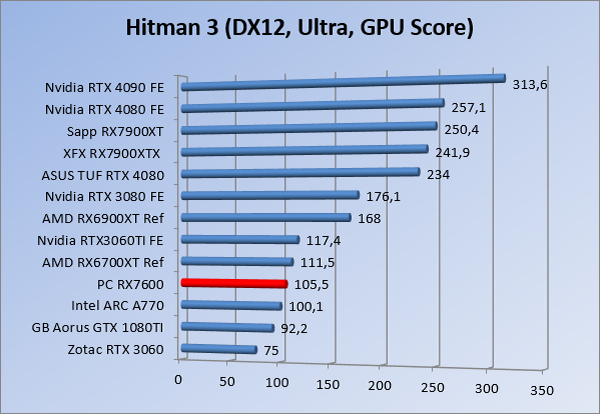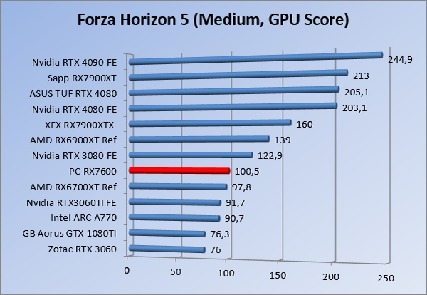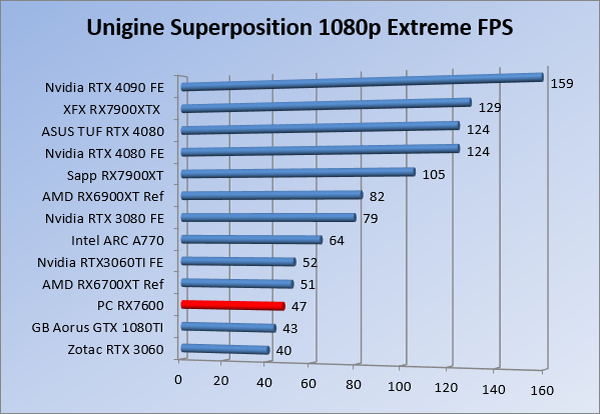 Videokaarten Powercolor Fighter AMD Radeon RX 7600 8GB review 27 maart 20241832 views0 Share By Rooieduvel Share Powercolor Fighter AMD Radeon RX 7600 8GB7.8De Powercolor AMD Radeon RX 7600 is een leuke compacte kaart om te gebruiken voor het gamen op 1080p. De geteste spellen lopen allemaal soepel en Raytracing is hier op zich ook mogelijk. 1440p komt ook nog aardig uit de verf al beginnen de prestaties iets in te storten. 4K is niet het domein van deze kaart. De kaart zelf ziet er basic uit zonder RGB maar dit hoeft geen minpunt te zijn. De kaart is vrij zuinig en vereist geen aparte connectoren dan de gewone 8-pins PCIe variant. De kaart kan overgeklokt worden maar dit gaat wel ten koste van de geluidsproductie. De temperatuur van de kaart is vrij hoog maar kan met een undervolt verholpen worden. Wel kan 8GB videogeheugen in de toekomst een probleem zijn. Al met al een leuke kaart voor een basic gaming systeem.TopVrij kleine kaart1080p prima speelbaar, 1440p vaak ook nogZuinigOverklokbaarEnkele 8-pins PCIe connector nodigFlop4K is een vaak een no-goGeen RGBIdle temperatuur is behoorlijk hoog8GB videogeheugen kan problemen geven in de toekomst Voordat ik begin met deze review: de kaart is gekocht voor een pc project van een klant. Die wilde dat de kaart getest werd voor deze ingebouwd zou worden. Besloten is er meteen een review van te maken. De klant is inmiddels blij met zijn complete pc. Half December 2022 was het dan eindelijk zo ver. Na het geweld van NVIDIA met de release van de 4000 reeks kwam AMD dan met de langverwachte opvolger van de 6000 serie namelijk de 7000 series videokaarten. Ook deze kaarten zijn gebaseerd op de RDNA architectuur die niet geheel verrassend RDNA3 heet. De opbouw van deze chips was echter anders dan wat men gewend was. Dit is namelijk het eerste ontwerp gebaseerd op chiplets, daar later meer over. De GPU’s hebben, ook zoals vorige keer, de Navi naam meegekregen. Hoe lager het nummer, hoe beter de chip. De release van de kaarten was niet zo verwarrend als de lancering van de kaarten van het groene kamp, echter worden er wel verschillende versies gebruikt onder hetzelfde nummer. Zo is er op het moment van schrijven een 7600 en 7600XT, maar hetzelfde geldt voor de 7900 reeks: daar hebben we de 7900XT en 7900XTX. Laatstgenoemde is de grotere broer van de XT kaart wat ook wel te zien is aan de opbouw van de GPU, het verbruik en de snelheden. Nu ligt over het algemeen de focus in gaming land op de high-end kaarten maar niet iedereen hoeft perse de beste kaart te hebben in zijn of haar gaming pc. Gelukkig zijn er tegenwoordig meerdere opties te krijgen die wat vriendelijker zijn voor je portemonnee. Zo ook de kaart die we hier vandaag bespreken, de Powercolor Fighter AMD Radeon RX 7600 8GB. Dit is een behoorlijke titel als je het mij vraagt. Het kaartje is niet al te groot maar de grootte hoeft niet alles te zeggen. De kaart kost op het moment van schrijven ongeveer €290,-. Maar wat ga je krijgen voor deze kaart, doet de kaart het beter dan de 6700XT van de vorige generatie en waar staat deze kaart ten opzichte van NVIDIA? Dat gaan we lezen in deze review. Architectuur Specificaties Unboxing Prestaties Synthetische benchmarks Full HD 1440P 4K resolutie Software Temperaturen en verbruik Overclocking Conclusie Voor we gaan kijken wat we voor kaart in huis hebben gaan we eerst even praten over de architectuur en de opbouw van de GPU. De GPU is gebaseerd op de RDNA architectuur wat aangekomen is bij versie 3. Dit is niets meer dan de Radeon DNA naam. De afgelopen generaties hebben we al de nodige verbeteringen gezien maar met de nieuwste versie is de GPU helemaal opnieuw opgebouwd. Zo wordt er in deze generatie gebruik gemaakt van chiplets. In plaats van één chip worden er meerdere kleinere chips geplaatst, ieder met een eigen functie. Deze zijn onderling verbonden via een hele snelle verbinding zodat er van vertraging geen sprake is. De workloads worden door de verschillende chips zeer snel afgehandeld en data snel over en weer verzonden tussen de GCD en het geheugen. Het grote voordeel hiervan is dat het goedkoper is om meerdere kleine chips te maken dan weinig grote chips. Mocht er een grote chip defect gaan dan schrijf je meer af dan wanneer er 2 kleinere chips kapot gaan. Daardoor kunnen de productiekosten wat lager blijven en dit is weer gunstig voor alle partijen. De GPU is weer opgebouwd uit verschillende CU’s oftewel Compute Units. Dit is een cluster van componenten die met elkaar samen werken. Het resultaat wordt vervolgens weer gebruikt om het beeld weer te geven. AMD laat niet echt zien hoe een CU opgebouwd is terwijl we dit wel kunnen zien bij het groene kamp. Men claimt met de nieuwe generatie in ieder geval forse winsten in AI en Raytracing, iets waar AMD toch wat op achter loopt dan NVIDIA. Met RDNA3 introduceert AMD een nieuwe Display Engine genaamd Radiance Display Engine. Men heeft een Displaypoort 2.1 aansluiting op de kaart gemonteerd die maar liefst 54Gb/s aan bandbreedte kan leveren. Dit moet zorgen voor refresh rates van 165 Hz op 8K of 480 Hz op 4K zodat de kaart klaar is voor de toekomst. Ook is er ondersteuning voor 12-bit HDR content, wat moet zorgen voor een spetterend beeld. Voor content creators brengt de nieuwste generatie RDNA AV1 encoding en decoding. Een videokaart kan gebruikt worden voor het maken en verwerken van content zoals video’s en internet streams. AMD heeft met RDNA3 een gigantische sprong gemaakt om op een goedkope manier content te presenteren. Andere kaarten konden dit al maar AMD heeft hier hele grote sprongen mee gemaakt en doet nu mee met de rest van het speelveld. Meer info is terug te vinden op de pagina van AMD. Terug naar boven Voor we de kaart zelf gaan bekijken pakken we eerst de theorie er eens bij. Zoals we net al zagen is de RX 7600 geen grote kaart maar dat is ook niet altijd nodig. De kaart is maar 20 centimeter lang, 11 centimeter breed en 4 centimeter hoog. Met het bracket is de kaart ietsj