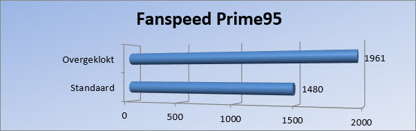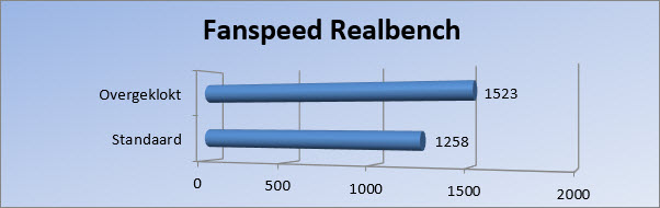 En hoe hard moet de koeler daarvoor aan het werk? Onder Idle valt dit reuze mee. De ventilator draait tussen de 790 en 835 toeren per minuut en maakt amper geluid. Dit verandert bij Prime95. Daar moet de ventilator toch aan de bak en is de koeler goed te horen. Dat is niet zo gek bij deze test. Bij de andere drie tests draait de ventilator rond de 1250 toeren per minuut en is hij niet echt hoorbaar. Bij de tests met een overklok is de ventilator wel een stukje beter te horen. Op een testbank is dat hoorbaar maar in een kast is het minder merkbaar.