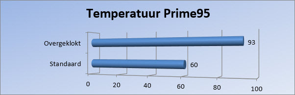 Wanneer de processor niets staat te doen dan blijft de temperatuur keurig hangen op 23 graden. Dit is erg netjes te noemene. Wanneer we Prime95 aanslingeren komen we normaliter uit op 60 graden. Doen we dezelfde meting als de processor overgeklokt dan komen we uit op maar liefst 93 graden. Dit is vrij hoog te noemen. Nu is Prime95 wel één van de zwaarste tests voor een processor. Gaan we kijken naar Realbench, Aida en OCCT dan komt de temperatuur rond de 50 graden uit. Overgeklokt stijgen deze waardes naar 65, 69 en 73 graden. Deze temperaturen zijn prima in orde, vooral als je bedenkt dat de koeler op een midrange processor geïnstalleerd is. Om de temperaturen nog wat lager te krijgen kan er gekozen worden om een tweede ventilator te plaatsen.