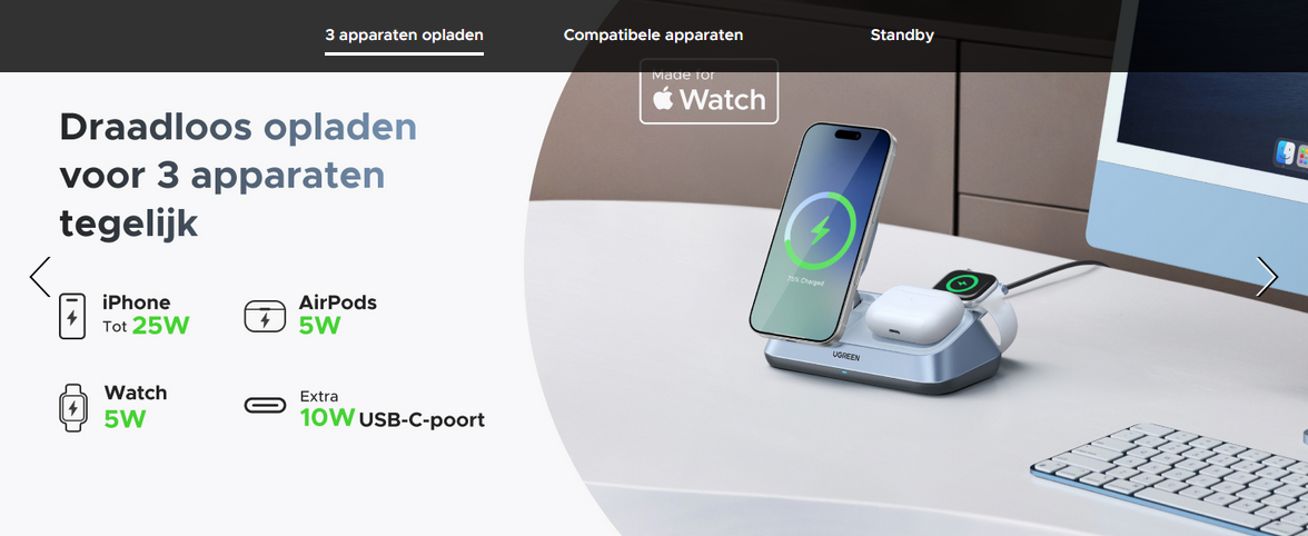 Voordat ik begin aan deze review wil ik UGREEN bedanken voor het beschikbaar stellen van deze 3-in-1 Qi2 desktop lader. Deze zal voornamelijk gebruikt gaan worden op het thuiskantoor.