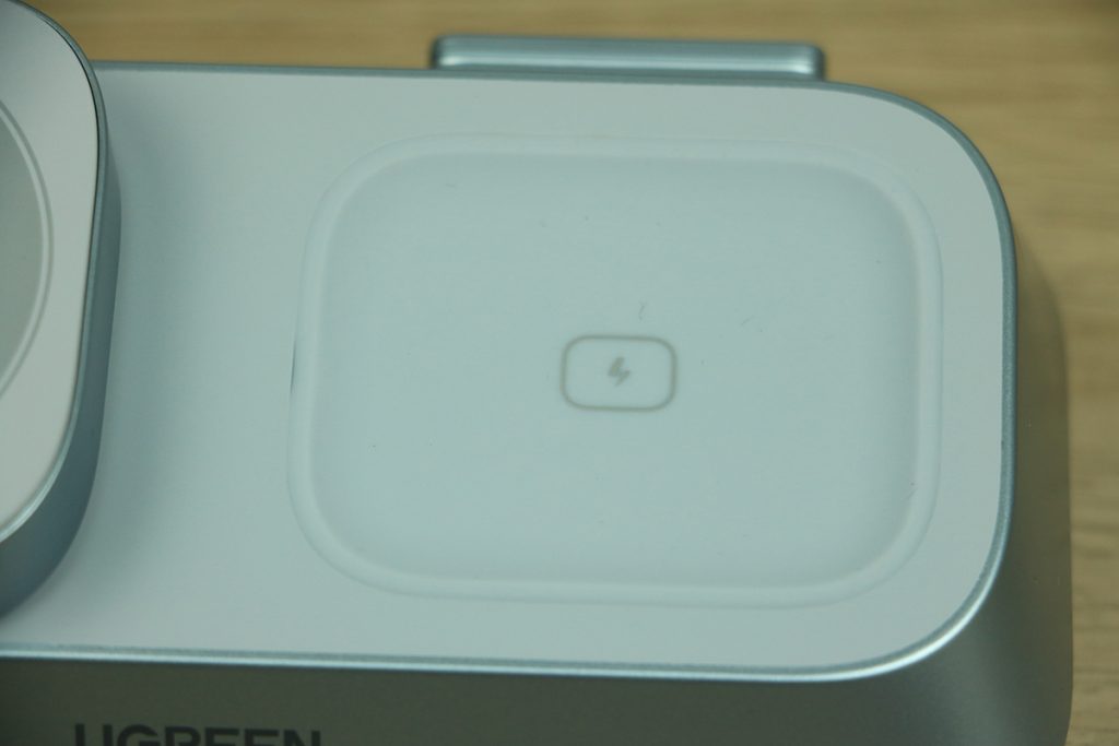 De UGREEN 3-in-1 lader is een prima toevoeging op kantoor of op je nachtkastje aangezien er drie apparaten tegelijk opgeladen kunnen worden. Zo kun je in de nacht je telefoon, horloge en oortjes allemaal opladen zodat ze de volgende dag weer te gebruiken zijn. Maar ook op een kantoor zal deze lader niet misstaan want ook daar kun je alles tegelijk opladen. Voorzie je oortjes van stroom tussen vergaderingen door bijvoorbeeld. De telefoon blijft goed zitten maar als je een dikker hoesje gebruikt dan zal hij iets makkelijker wegglijden. De standaard van de telefoonlader blijft stevig op zijn plek zitten en zakt niet in tijdens het gebruik, wel zo fijn. De laadplek van de oortjes zit rechts van de telefoonlader in plaats van erachter waardoor deze makkelijker te bereiken is. Het horloge ligt daar weer achter zodat de apparaten elkaar niet in de weg zitten. Groot pluspunt is de toevoeging van een adapter bij de lader. Je hoeft hier zelf niet meer voor te zorgen en weet dat er voldoende stroom geleverd wordt om alle apparaten tegelijk op te laden. Dit is niet het geval als je ook nog de USB poort gebruikt aangezien er maar maximaal 35 Watt geleverd kan worden. Bovendien levert die USB poort maar maximaal 10 Watt dus een extra telefoon opladen kan wel maar duurt een stuk langer.