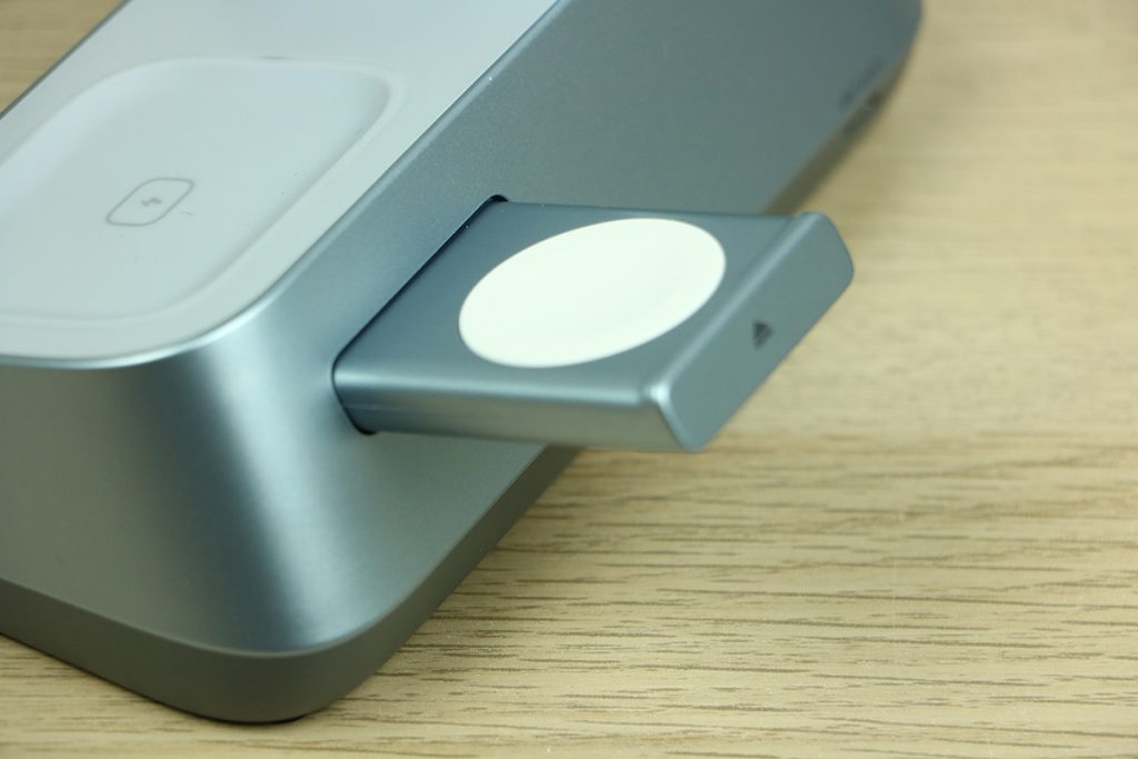 Deze lader kan uiteraard je telefoon opladen maar er is meer dan dat. Net als de 2-in-1 lader kan deze lader ook je AirPods draadloos opladen. Deze liggen alleen niet achter de telefoon maar naast de telefoon. Zo zijn ze makkelijker neer te leggen en ook weer op te pakken. Achter de oortjes vinden we een plateau waar je ook je Apple Watch mee op kunt laden. Zo heb je al je Apple producten in één keer opgeladen. En alsof dat nog niet genoeg is zit er een extra USB poort op de lader om nog een apparaat op te laden. Wel dien je in de gaten te houden dat je maximaal met 35 Watt in totaal kunt laden. Wil je alles tegelijk gaan gebruiken dan zullen bepaalde apparaten minder snel laden.