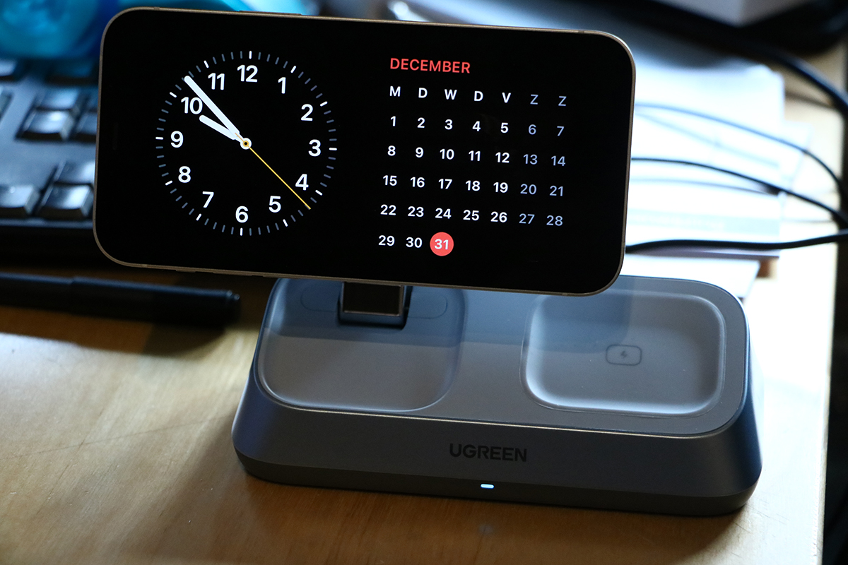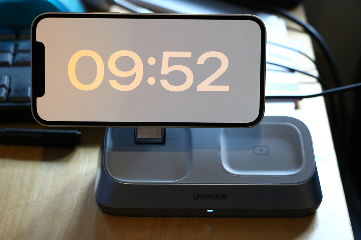 De UGREEN MagFlow 3-in-1 magnetische lader is een prima lader voor op je kantoor of gewoon op je nachtkastje. Hij is lekker compact en makkelijk op te bergen. Je telefoon wordt goed vastgehouden door de magneten maar let wel op dat je apparaat geschikt is voor MagSafe, iets dat mijn Pixel 7 Pro dus niet was. De lader blijft lekker stevig staan en zakt niet in. Het laden gaat prima, zowel met 15 als met 25 Watt. Voor het laatste moet je wel een iPhone 16 of 17 hebben. Het is mogelijk om tegelijk je AirPods te laden wat wel zo fijn is. Stand-by mode werkt prima in combinatie met deze lader want je kunt het scherm van je telefoon makkelijk aflezen. Minpuntje is wel dat je zelf voor een adapter moet zorgen.