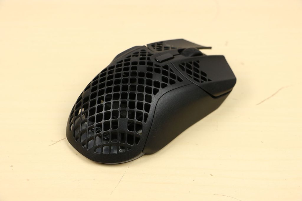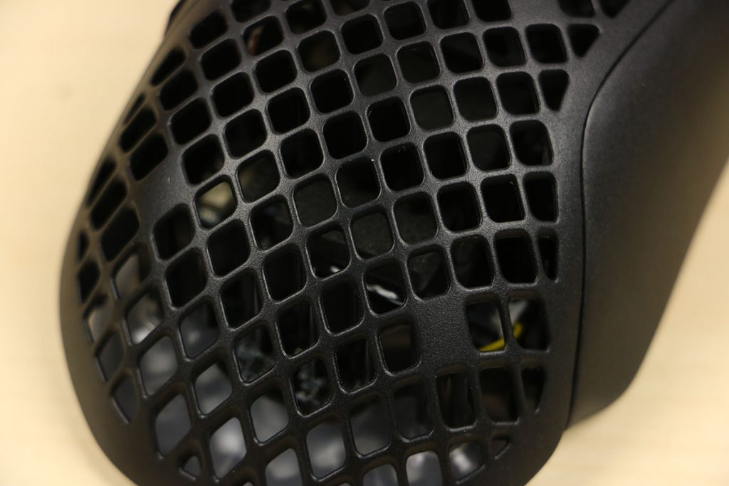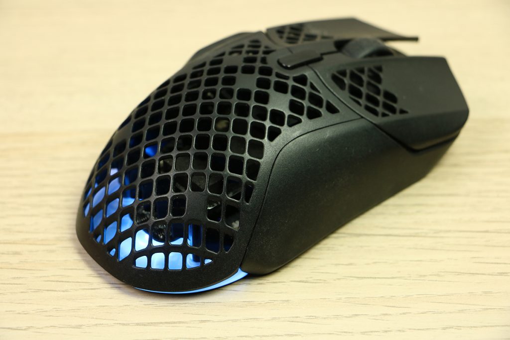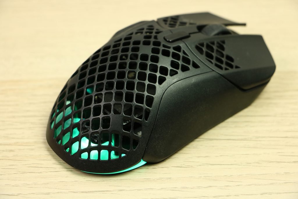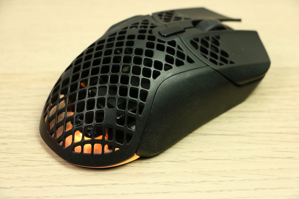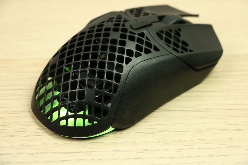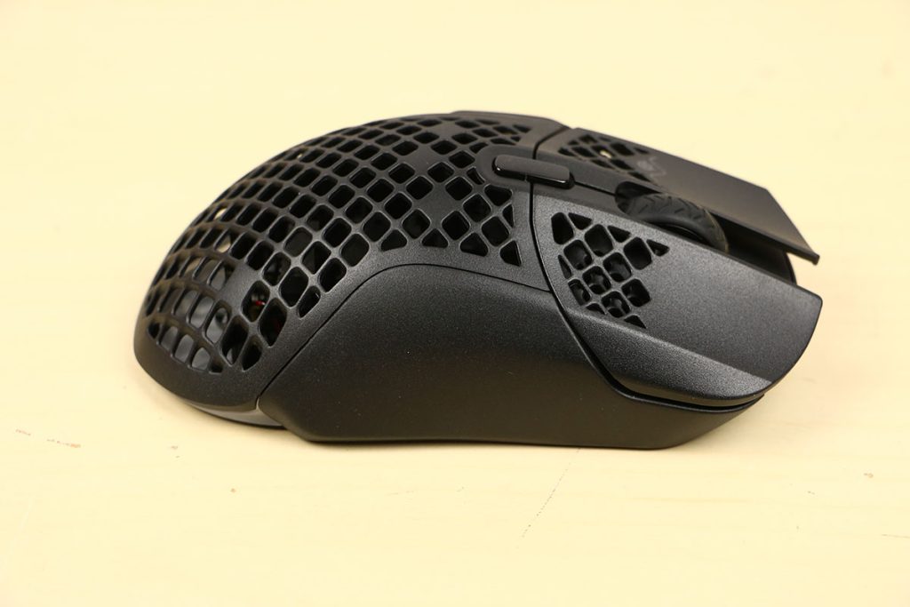 MuizenSteelseries Aerox 5 Wireless review Muis met gaten 16 april 2025695 views2Share By Rooieduvel ShareSteelseries Aerox 5 Wireless7.5De Steelseries Aerox 5 Wireless is een echte gamersmuis met een ribcage ontwerp. Het gebruik is even wennen maar dit zorgt er wel voor dat de muis erg licht is. De muis is prettig in het gebruik en kan zowel met dongel als via Bluetooth gebruikt worden. De dongel zorgt er wel voor dat de accu sneller leeg is maar de muis laadt erg snel op. De Truemove sensor doet prima zijn werk en is erg nauwkeurig. De knoppen voelen prima aan en zijn naar wens in te stellen. Uiteraard mag RGB niet ontbreken al is dit beter aan de onderkant te zien dan door de muis heen. Een prima muis als je op zoek bent naar een lichtgewicht exemplaar, al moet je er best wat voor neertellen.TopLichtgewichtRGB ziet er goed uitAccu gaat lang meeZowel bedraad als draadloos te gebruikenSymmetrisch dus ook linkshandig te gebruikenSnel opgeladenFlopKan wat prijzig zijn voor sommige mensen Had wellicht iets meer verlichting door de muis heen mogen schijnen Extra knop boven overige knoppen is fijn maar erg wennen De gekozen DPI instelling is niet duidelijk te zienBij deze wil ik Steelseries bedanken voor het beschikbaar stellen van deze Aerox 5 Wireless muis.Steelseries is alweer een tijdje actief op de markt van gaming apparatuur. Het Deense bedrijf timmert flink aan de weg met verschillende soorten hardware die over het algemeen kwalitatief goed in elkaar steken. Qua muizen zijn er al meerdere series op de markt uitgebracht zoals de Sensei, Kinzu en Rival muizen. De laatste serie muizen heeft de naam Aerox meegekregen. Tevens brengt het bedrijf verschillende toetsenborden uit in de Apex serie in verschillende prijsklassen en formaten zodat er voor ieder wat wils is. Voor muismatten geldt hetzelfde: er zijn kleine muismatten van €10, maar ook matten die meer dan €50 moeten kosten.Het bedrijf heeft ook meerdere headsets in het assortiment. Zo heb ik zelf nog een SteelSeries Siberia V2 Headset – MSI Gaming Edition gehad die ik ooit gewonnen heb. De laatste generatie headsets komen uit de Arctis serie die zowel bedraad als draadloos te krijgen zijn. Daarnaast zijn ze aardig aan de weg aan het timmeren met onder andere speakers, controllers en zelfs microfoons, allemaal met een eigen prijskaartje zodat er voor ieder wat wils te krijgen is.Het artikel van vandaag is de Steelseries Aerox 5 Wireless, een lichtgewicht draadloze muis die waterdicht is, megasnel zou moeten zijn en voorzien is van RGB verlichting (wat niemand zal verbazen). De muis is te krijgen voor ongeveer €100,- op het moment van schrijven. Wat je ervoor krijgt? Lees vooral verder!SpecificatiesUnboxingSoftwareErvaringConclusieWe kijken eerst naar de specificaties van dit apparaat.We zien dat Steelseries zijn eigen sensor gebruikt namelijk de TrueMove Air sensor. Dit llijkt een aangepaste versie te zijn van de Pixart 3335 sensor. Deze sensor wordt breed gebruikt in de gaming wereld dus het is niet zo gek dat Steelseries de keuze heeft gemaakt om deze sensor aan te passen en in deze muis te monteren. Het gaat hier wel om een optische sensor dus geen laser. Het maximale CPI is maar liefst 18.000 maar dat is een waarde die je zelf nooit zult gebruiken. De muis wordt daarbij heel onnauwkeurig en gaat veel te snel over je scherm heen. De muis weegt maar 74 gram en heeft een maximale afmeting van 68.2 bij 42.1 millimeter, een beetje een standaard grootte. Er kan gebruikt gemaakt worden van een Bluetooth verbinding of de dongel die Steelseries bij de muis levert. Bekabeld is ook mogelijk maar daarvoor neem je geen draadloze muis. De accuduur is maximaal 180 uur als je gebruik maakt van Bluetooth maar dit zakt naar 80 uur als je gebruik maakt van de dongel.Het meest aparte van de muis is dat het voorzien is van een honingraat structuur. Dit zorgt ervoor dat het gewicht van de muis afneemt waardoor het prettiger in gebruik zou moeten zijn. Door de constructie blijft de behuizing toch heel bij al het gaming geweld. Het gewicht wordt nog minder omdat men de accu aangepast heeft. Deze is nu maar 6 gram wat volgens Steelseries een stuk lichter zou moeten zijn dan van de concurrenten. Dit doet men wel zonder in te leveren op prestaties aangezien de accuduur nog steeds maximaal 180 uur is. Ook is het PCB een stuk dunner wat ook weer bespaart op het gewicht.De muis heeft ook een IP rating meegekregen. Wel zo handig aangezien de muis een open structuur heeft. Het lijkt best eng om een muis te gebruiken die zo open is maar er is een coating aangebracht die moet beschermen tegen vuil en stof. Je hoeft je dus geen zorgen te maken als je loopt te knoeien over je muis of dat er allemaal stof binnen in de muis komt. De printplaat is hier tegen beschermd en jij kunt je gewoon bezig houden met jouw activiteit.Uiteraard heeft Steelseries zijn eigen software pakket en dit is de Steelseries Engine. Men maakt hier al langer gebruik van en ook deze muis wordt ondersteunt. Met dit pakket zijn knoppen en kleuren aan te passen. Ook is het mogelijk hiermee updates te downloaden en te installeren die eventuele problemen kunnen verhelpen. Tevens is het mogelijk de gevoeligheid van de muis aan te passen. Een leuke bijkomstigheid is dat sommige spellen kunnen samenwerken met de software van Steelseries waardoor in spellen een bepaald kleureneffect gestart wordt. Denk aan bijvoorbeeld het planten van de bom in Counter Strike. De muis begint dan te knipperen op het tikken van de bom. Een grappige toevoeging. Tevens worden instellingen automatisch toegepast op dat spel.Wil je meer lezen over deze muis op de pagina van Steelseries dan is dat terug te vinden op de productpagina.Terug naar bovenWe pakken de doos er bij en gaan eens kijken wat er allemaal in zit.De doos ziet er redelijk bekend uit. Dit komt omdat Steelseries al een tijd hetzelfde kleurschema en opmaak gebruikt. We zien over de hele doos de muis staan. Bovenin staat het merk genoemd en onderin staat de 