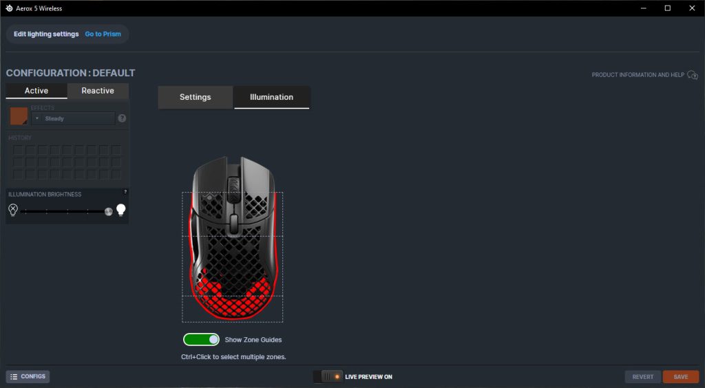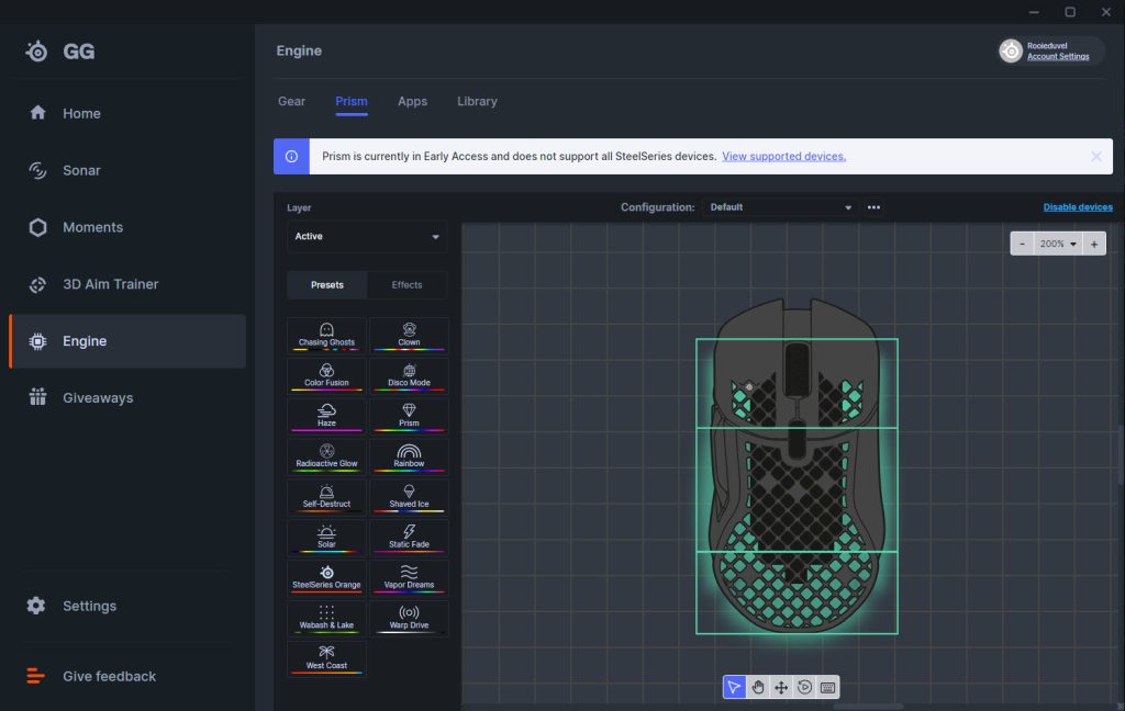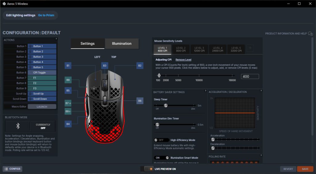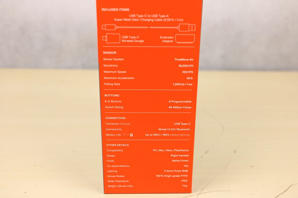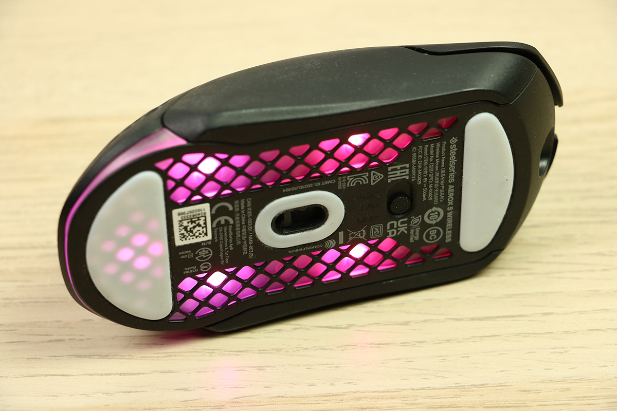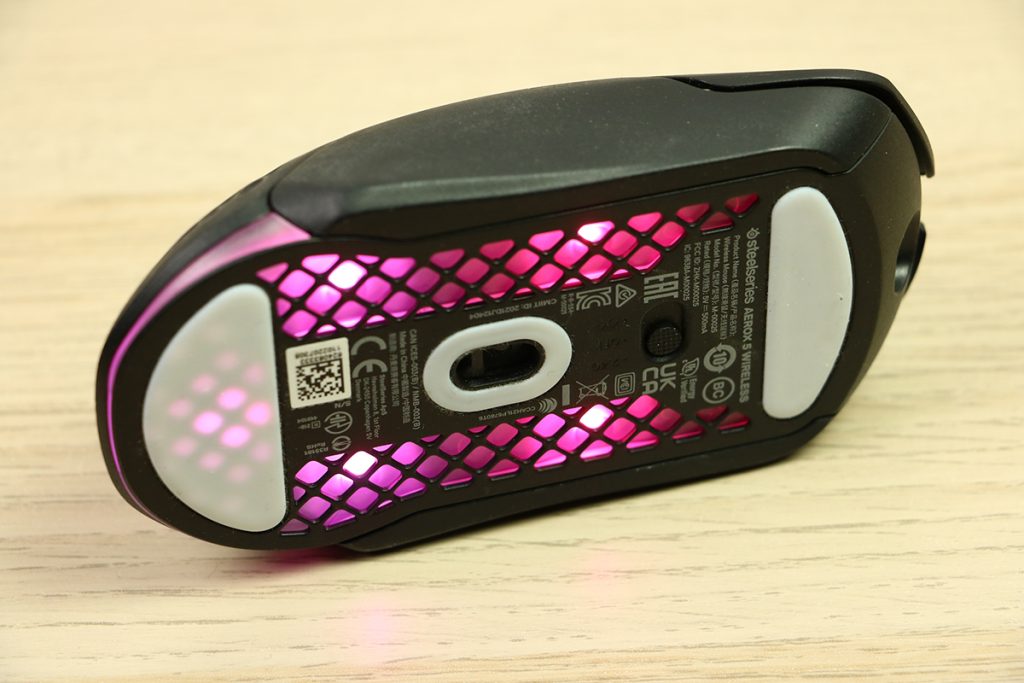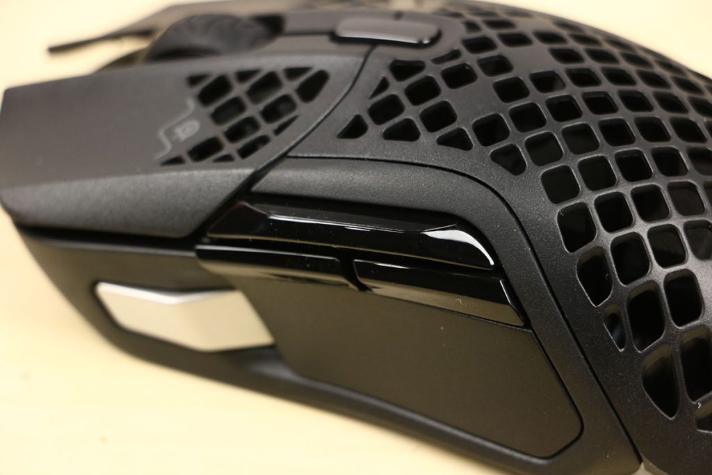 MuizenSteelseries Aerox 5 Wireless review Muis met gaten 16 april 2025695 views2Share By Rooieduvel ShareSteelseries Aerox 5 Wireless7.5De Steelseries Aerox 5 Wireless is een echte gamersmuis met een ribcage ontwerp. Het gebruik is even wennen maar dit zorgt er wel voor dat de muis erg licht is. De muis is prettig in het gebruik en kan zowel met dongel als via Bluetooth gebruikt worden. De dongel zorgt er wel voor dat de accu sneller leeg is maar de muis laadt erg snel op. De Truemove sensor doet prima zijn werk en is erg nauwkeurig. De knoppen voelen prima aan en zijn naar wens in te stellen. Uiteraard mag RGB niet ontbreken al is dit beter aan de onderkant te zien dan door de muis heen. Een prima muis als je op zoek bent naar een lichtgewicht exemplaar, al moet je er best wat voor neertellen.TopLichtgewichtRGB ziet er goed uitAccu gaat lang meeZowel bedraad als draadloos te gebruikenSymmetrisch dus ook linkshandig te gebruikenSnel opgeladenFlopKan wat prijzig zijn voor sommige mensen Had wellicht iets meer verlichting door de muis heen mogen schijnen Extra knop boven overige knoppen is fijn maar erg wennen De gekozen DPI instelling is niet duidelijk te zienBij deze wil ik Steelseries bedanken voor het beschikbaar stellen van deze Aerox 5 Wireless muis.Steelseries is alweer een tijdje actief op de markt van gaming apparatuur. Het Deense bedrijf timmert flink aan de weg met verschillende soorten hardware die over het algemeen kwalitatief goed in elkaar steken. Qua muizen zijn er al meerdere series op de markt uitgebracht zoals de Sensei, Kinzu en Rival muizen. De laatste serie muizen heeft de naam Aerox meegekregen. Tevens brengt het bedrijf verschillende toetsenborden uit in de Apex serie in verschillende prijsklassen en formaten zodat er voor ieder wat wils is. Voor muismatten geldt hetzelfde: er zijn kleine muismatten van €10, maar ook matten die meer dan €50 moeten kosten.Het bedrijf heeft ook meerdere headsets in het assortiment. Zo heb ik zelf nog een SteelSeries Siberia V2 Headset – MSI Gaming Edition gehad die ik ooit gewonnen heb. De laatste generatie headsets komen uit de Arctis serie die zowel bedraad als draadloos te krijgen zijn. Daarnaast zijn ze aardig aan de weg aan het timmeren met onder andere speakers, controllers en zelfs microfoons, allemaal met een eigen prijskaartje zodat er voor ieder wat wils te krijgen is.Het artikel van vandaag is de Steelseries Aerox 5 Wireless, een lichtgewicht draadloze muis die waterdicht is, megasnel zou moeten zijn en voorzien is van RGB verlichting (wat niemand zal verbazen). De muis is te krijgen voor ongeveer €100,- op het moment van schrijven. Wat je ervoor krijgt? Lees vooral verder!SpecificatiesUnboxingSoftwareErvaringConclusieWe kijken eerst naar de specificaties van dit apparaat.We zien dat Steelseries zijn eigen sensor gebruikt namelijk de TrueMove Air sensor. Dit llijkt een aangepaste versie te zijn van de Pixart 3335 sensor. Deze sensor wordt breed gebruikt in de gaming wereld dus het is niet zo gek dat Steelseries de keuze heeft gemaakt om deze sensor aan te passen en in deze muis te monteren. Het gaat hier wel om een optische sensor dus geen laser. Het maximale CPI is maar liefst 18.000 maar dat is een waarde die je zelf nooit zult gebruiken. De muis wordt daarbij heel onnauwkeurig en gaat veel te snel over je scherm heen. De muis weegt maar 74 gram en heeft een maximale afmeting van 68.2 bij 42.1 millimeter, een beetje een standaard grootte. Er kan gebruikt gemaakt worden van een Bluetooth verbinding of de dongel die Steelseries bij de muis levert. Bekabeld is ook mogelijk maar daarvoor neem je geen draadloze muis. De accuduur is maximaal 180 uur als je gebruik maakt van Bluetooth maar dit zakt naar 80 uur als je gebruik maakt van de dongel.Het meest aparte van de muis is dat het voorzien is van een honingraat structuur. Dit zorgt ervoor dat het gewicht van de muis afneemt waardoor het prettiger in gebruik zou moeten zijn. Door de constructie blijft de behuizing toch heel bij al het gaming geweld. Het gewicht wordt nog minder omdat men de accu aangepast heeft. Deze is nu maar 6 gram wat volgens Steelseries een stuk lichter zou moeten zijn dan van de concurrenten. Dit doet men wel zonder in te leveren op prestaties aangezien de accuduur nog steeds maximaal 180 uur is. Ook is het PCB een stuk dunner wat ook weer bespaart op het gewicht.De muis heeft ook een IP rating meegekregen. Wel zo handig aangezien de muis een open structuur heeft. Het lijkt best eng om een muis te gebruiken die zo open is maar er is een coating aangebracht die moet beschermen tegen vuil en stof. Je hoeft je dus geen zorgen te maken als je loopt te knoeien over je muis of dat er allemaal stof binnen in de muis komt. De printplaat is hier tegen beschermd en jij kunt je gewoon bezig houden met jouw activiteit.Uiteraard heeft Steelseries zijn eigen software pakket en dit is de Steelseries Engine. Men maakt hier al langer gebruik van en ook deze muis wordt ondersteunt. Met dit pakket zijn knoppen en kleuren aan te passen. Ook is het mogelijk hiermee updates te downloaden en te installeren die eventuele problemen kunnen verhelpen. Tevens is het mogelijk de gevoeligheid van de muis aan te passen. Een leuke bijkomstigheid is dat sommige spellen kunnen samenwerken met de software van Steelseries waardoor in spellen een bepaald kleureneffect gestart wordt. Denk aan bijvoorbeeld het planten van de bom in Counter Strike. De muis begint dan te knipperen op het tikken van de bom. Een grappige toevoeging. Tevens worden instellingen automatisch toegepast op dat spel.Wil je meer lezen over deze muis op de pagina van Steelseries dan is dat terug te vinden op de productpagina.Terug naar bovenWe pakken de doos er bij en gaan eens kijken wat er allemaal in zit.De doos ziet er redelijk bekend uit. Dit komt omdat Steelseries al een tijd hetzelfde kleurschema en opmaak gebruikt. We zien over de hele doos de muis staan. Bovenin staat het merk genoemd en onderin staat de 