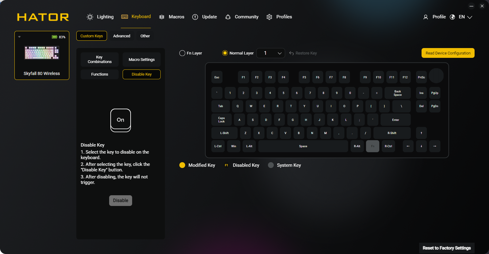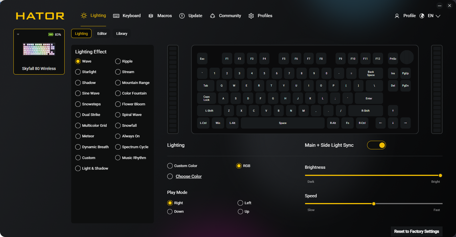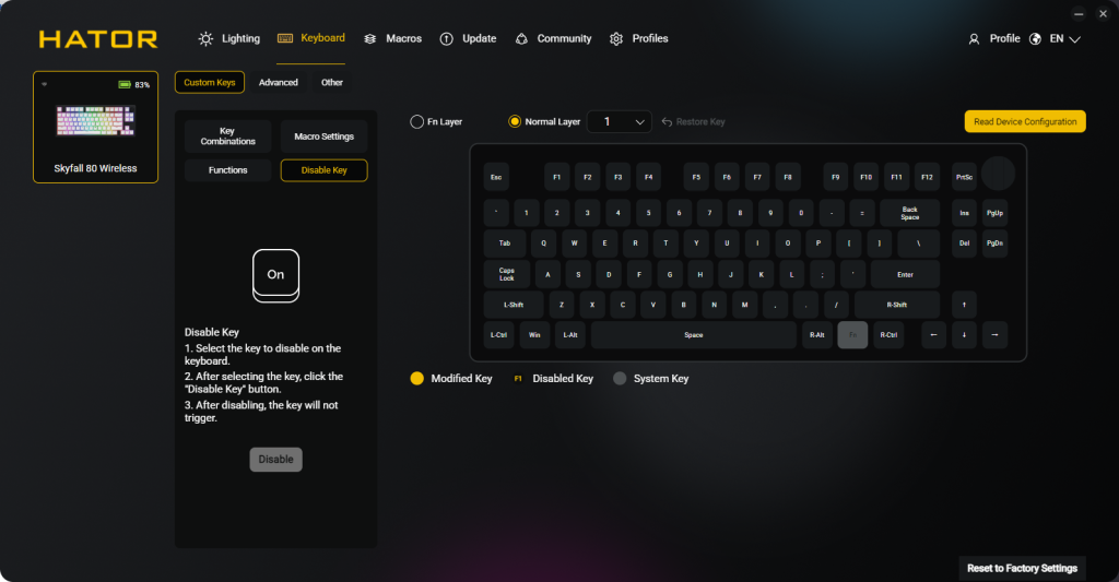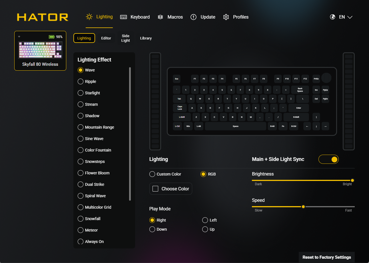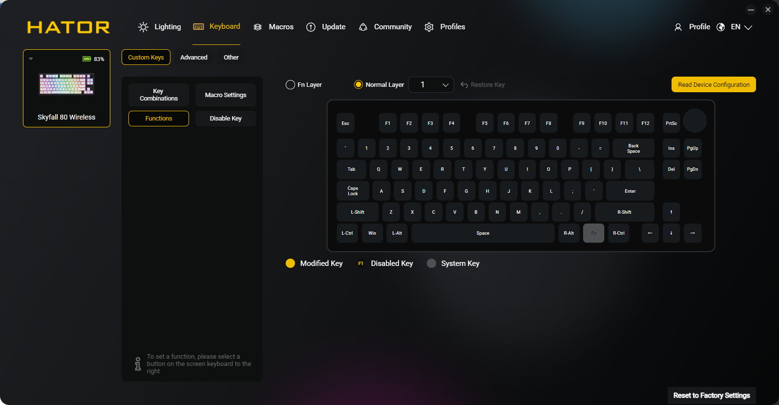 ToetsenbordenHATOR Skyfall 80 Wireless review 29 december 20252 views0Share By Rooieduvel ShareHATOR Skyfall 80 Wireless9.2De HATOR Skyfall 80 Wireless is een betaalbaar mechanisch toetsenbord die het numerieke gedeelte moet missen. Het missende gedeelte wordt keurig opgevangen door sneltoetsen toe te voegen. Het bord typt lekker en is redelijk stil voor zijn doen. De verlichting komt mooi door de toetsen heen en geeft een soort gloed rondom de toetsen en aan de zijkanten van het bord. Bovendien zijn de switches te wisselen voor een andere variant mocht je dit willen. Het bord is op drie verschillende manieren aan te sluiten en is ook te gebruiken op een Mac machine. Het wit kan wellicht snel vuil worden en de behuizing is van plastic maar de prijs moet ergens vandaan komen. De software werkt eenvoudig maar heeft nog een beetje werk nodig. Een prima mechanisch toetsenbord voor €65,-TopVerhouding Prijs/kwaliteit is primaTypt soepelRGB ziet er prima uitVeel sneltoetsen waardoor software niet echt nodig isOp drie verschillende manieren te verbindenMultimedia knopSwitches zijn te wisselenSoftware is duidelijk en helderFlopWitte toetsen kunnen snel vuil wordenBehuizing van plasticSoftware heeft soms nog wat tweaks nodigOm het bprd bedraad te kunnen gebruiken moet je wel de schakelaar omzettenVoordat we met deze review starten wil ik HATOR bedanken voor het beschikbaar stellen van dit toetsenbord. Dit is het eerste product wat ik ontvang van dit (voor nu nog) redelijk onbekende merk.HATOR… vermoedelijk heb je nog nooit van dit merk gehoord. Ik kwam het merk tegen op de lijst van fabrikanten die op de IFA 2025 zouden staan en zag dat het een Nederlands bedrijf was. Uiteraard is er dan de interesse om een afspraak te maken en even te gaan praten. Het blijkt dat het merk al enige tijd bestaat en van origine niet Nederlands is. Het merk is in 2015 ontstaan in Oekraïne en is in een aantal jaar tijd gegroeid als merk zijnde. Het merk maakt producten zoals toetsenborden, headsets, muizen en gaming stoelen, iets wat veel bedrijven tegenwoordig in het assortiment hebben. In 2024 is het merk zich uit gaan breiden naar de rest van Europa en heeft tegenwoordig het kantoor in Nederland gevestigd.Het merk moet het voornamelijk hebben van het modden (aanpassen) van producten en dat is iets wat bij toetsenborden vrij makkelijk kan. Zo is het mogelijk om de switches en de keycaps te vervangen maar ook de verlichting te veranderen. Het laatste is bij vrijwel elk toetsenbord mogelijk en het wisselen van switches kan tegenwoordig ook steeds vaker. Maar wat wel interessant is is het bedrag wat je voor een bord moet neertellen. Meestal kosten borden die aan te passen zijn best veel geld en dat is iets waar HATOR een verandering in wilt brengen. Het moet namelijk mogelijk zijn voor iedereen om goede randapparatuur te hebben voor een schappelijke prijs, waarbij uiteraard wel gekeken moet worden naar de kosten van de hardware.In deze review gaan we het hebben over een 80% toetsenbord, te weten de Skyfall 80 Wireless. Een draadloos toetsenbord met verlichting, aan te passen switches en een draaiknop. De prijs zal je wellicht nog het meest verbazen: deze ligt namelijk op slechts €64,99. Wat je daarvoor terug krijgt en of het bord zijn prijs kan rechtvaardigen gaan we zien in deze review.SpecificatiesUnboxingSoftwareErvaringConclusieVoordat we het bord uitpakken gaan we eerst kijken naar de specificaties en de features.Het overzicht laat niet alles zien van de specificaties. Dit is slechts een deel wat HATOR laat zien in hun folder. Meer informatie is te vinden op hun website. We zien in dit gedeelte in ieder geval al dat we te maken hebben met een 80% toetsenbord wat betekent dat je een deel van de standaard toetsen zult missen. In ieder geval is het hele numerieke gedeelte weggehaald en ook een paar van de toetsen boven de pijltjes zijn weg. Dat is echter een keuze die je zelf maakt en het maakt het toetsenbord wel een stukje kleiner. Uiteraard is er de ANSI layout voor Europa te krijgen. De keycaps zijn gemaakt van ABS en dat is een keuze die gemaakt is om het bord toch betaalbaar te maken. PBT is duurzamer maar ook meteen duurder. Het bord is voorzien van meerdere lagen geluiddempend materiaal om ervoor te zorgen dat het typen zo min mogelijk geluid maakt. Hoe dat klinkt komen we later op terug. Het bord kan verbinden via Bluetooth maar ook met de meegeleverde dongel en uiteraard via een kabel als het nodig is. Verder zien we dat het bord voorzien is van een draaiknop voor het bedienen van het volume. Uiteraard is er ook software aanwezig voor het bord, zowel voor op de computer als online.De switches die gebruikt zijn zijn door HATOR zelf ontwikkeld. We hebben het hier over de Aurum Lemon mechanische switches die van tevoren geolied zijn. De operating force van deze switches zijn 50 gramforce, iets zwaarder dan standaard linear red switches. Dit typt lekker licht en elke aanraking is trefzeker. Dankzij een geïntegreerde lens wordt de verlichting nog een versterkt en dus nog beter te zien door de keycaps heen. Dit geeft ook een mooie gloed onder de toetsen zelf. Tevens is het mogelijk om je eigen switches op het bord te gebruiken als je zou willen aangezien de switches te vervangen zijn. Natuurlijk mag N-key rollover niet ontbreken en de eerder genoemde ronde knop maakt het mogelijk om audio te bedienen.Anno 2025 mag verlichting niet ontbreken op een toetsenbord. Het is tegenwoordig zeldzaam als een toetsenbord geen verlichting heeft. De verlichting is netjes over het hele bord afgewerkt en zelfs aan de zijkant van het bord is verlichting te vinden. Deze verlichting is deels aan te passen via het toetsenbord zelf door middel van toetscombinaties maar anderzijds kan de verlichting aangepast worden via de software.Een wat duurder toetsenbord kan uiteraard helemaal naar wens aangepast worden en dat is ook het geval bij de Skyfall 80 Wireless (al zou je het wellicht niet helemaal verwachten bij deze prijs). Zo is